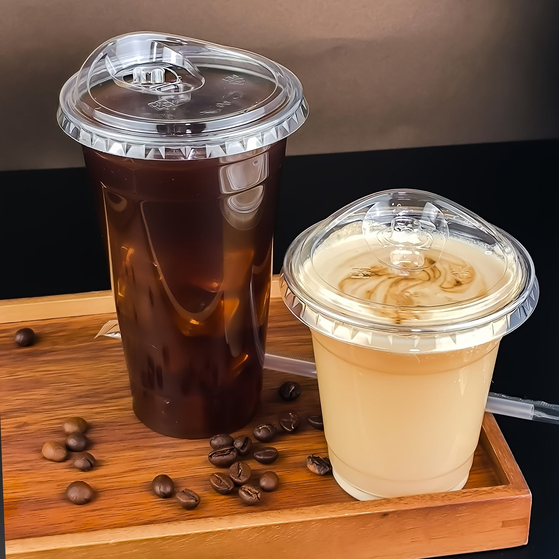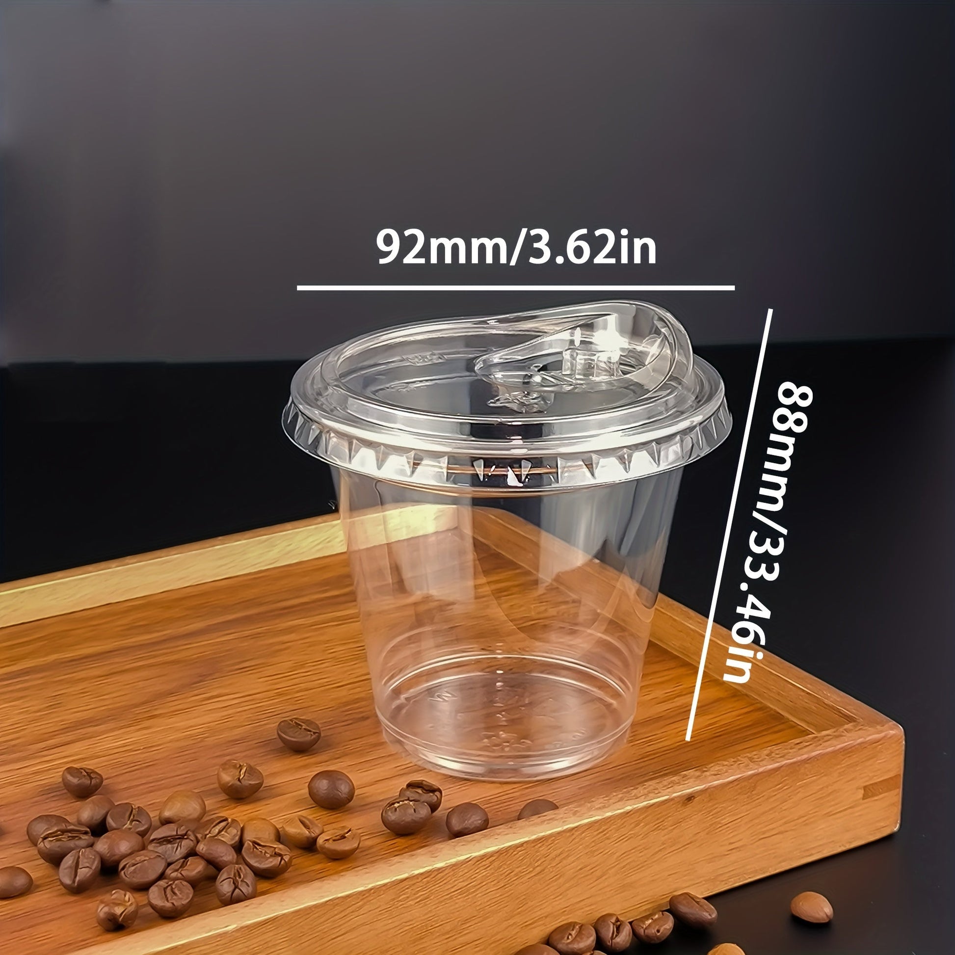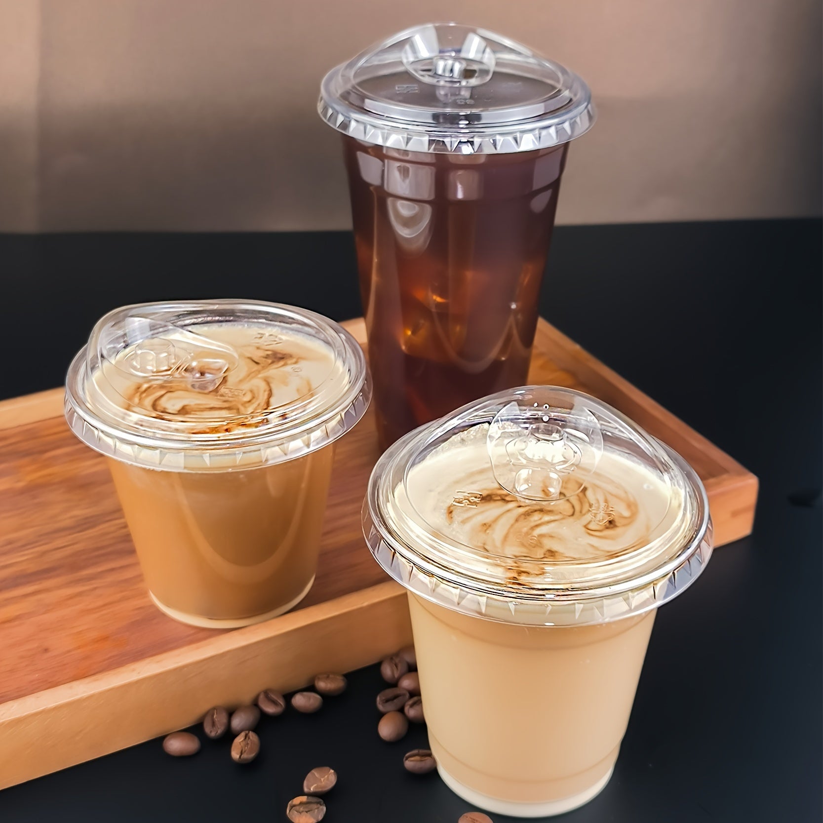 Набор из 50 одноразовых кофейных чашек с крышками, изготовленных из прозрачного пластика без BPA - Отлично подходит для вечеринок, праздников и свадеб - Доступны в различных размерах (9oz/10oz/14oz/16oz) - Идеально для холодных напитков