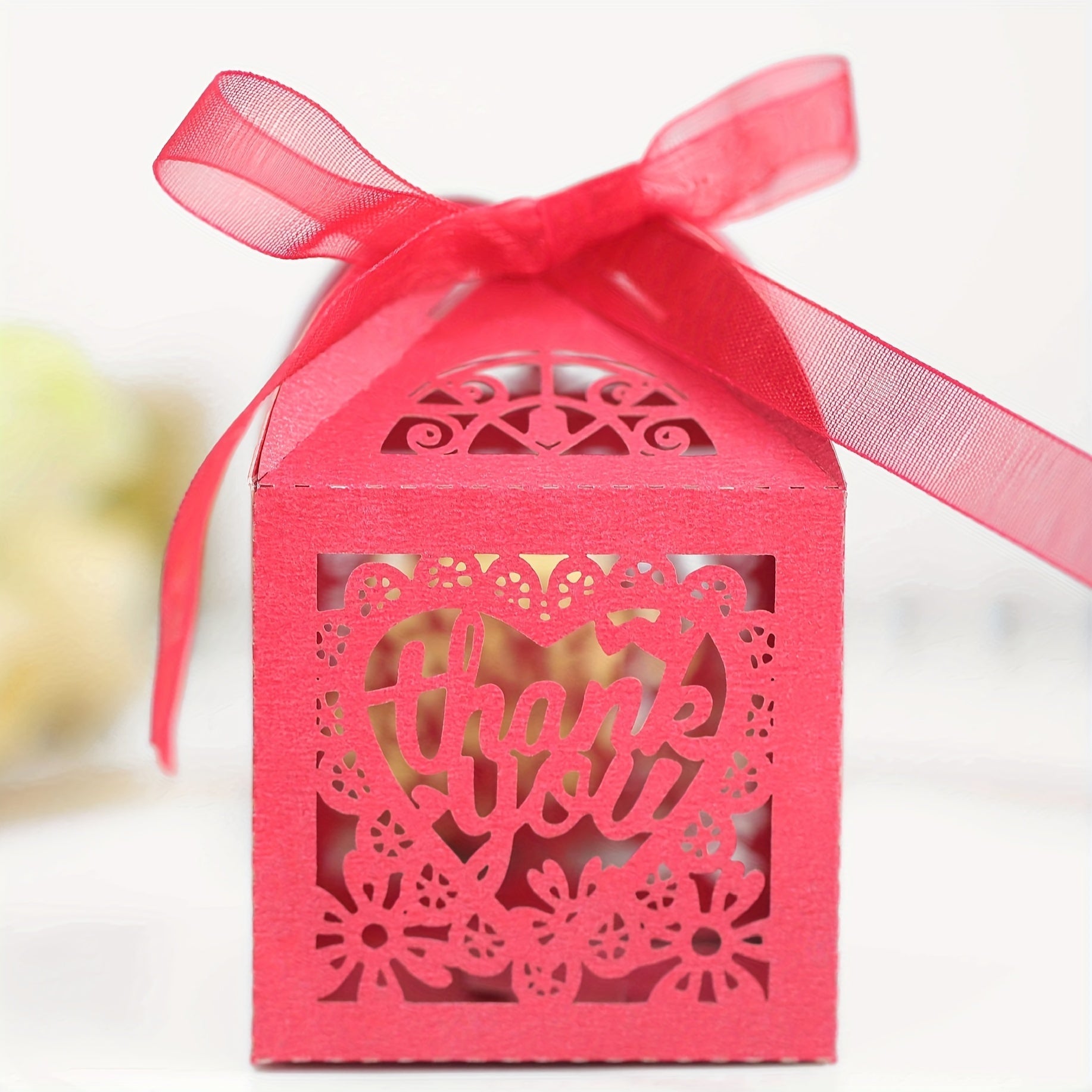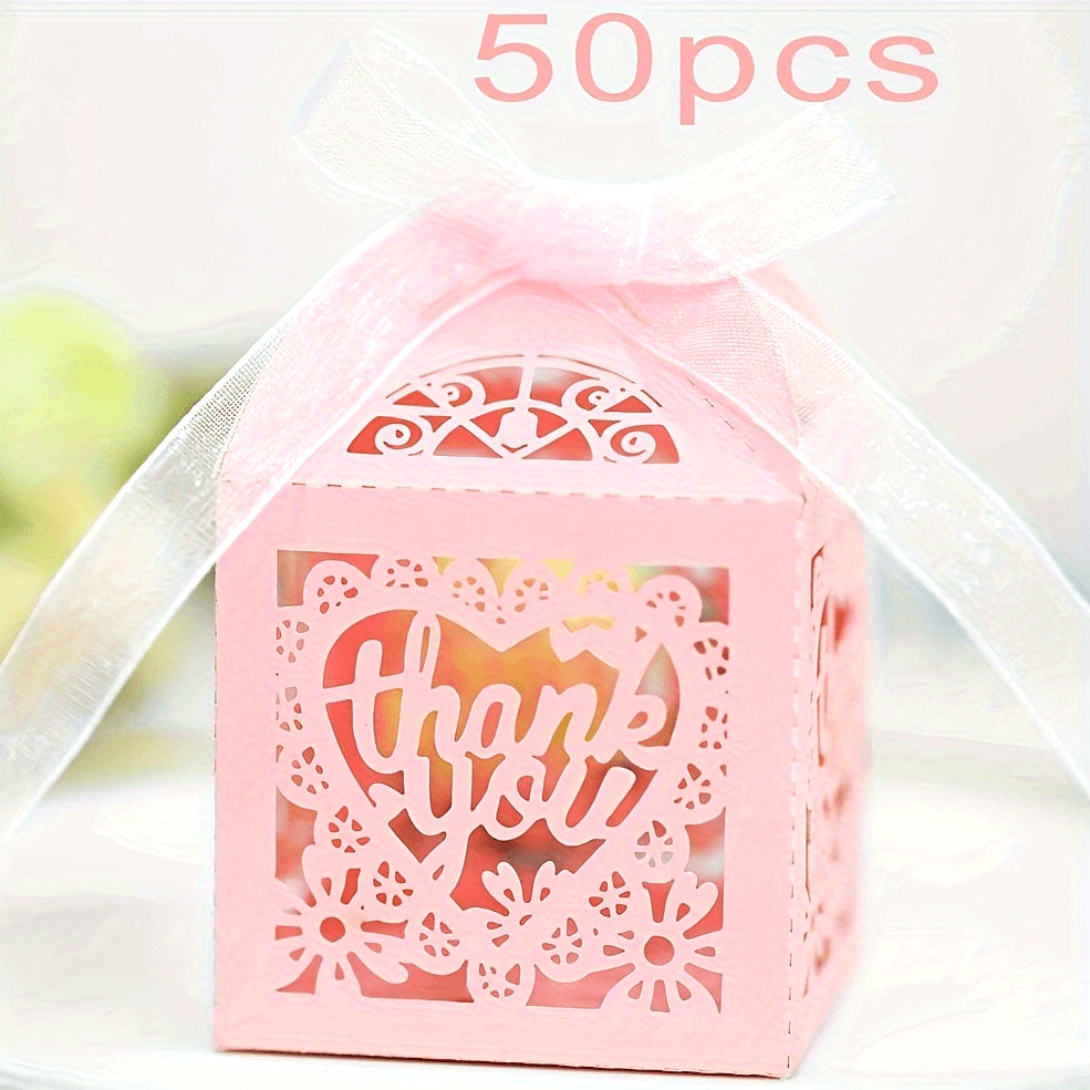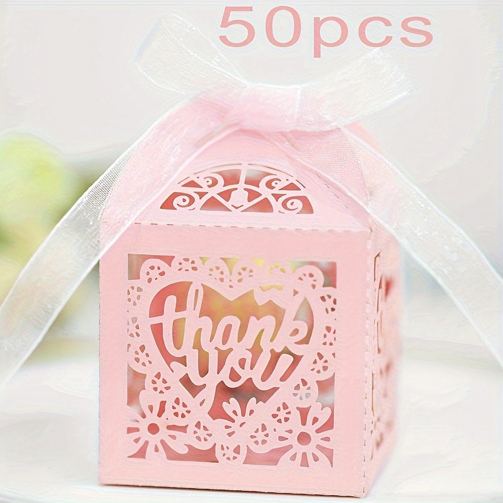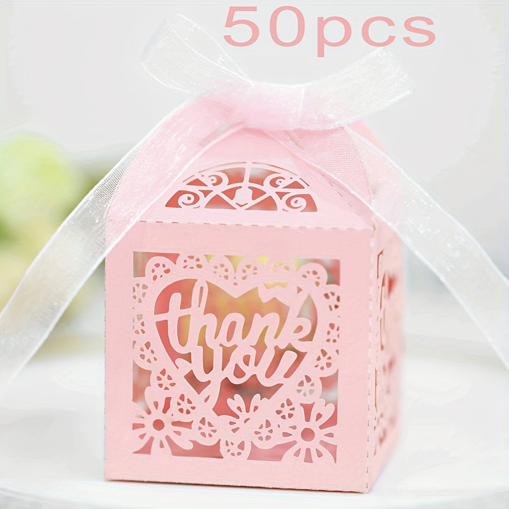 Набор из 50 розовых цветочных коробок для конфет с лентами для свадеб и дней рождения