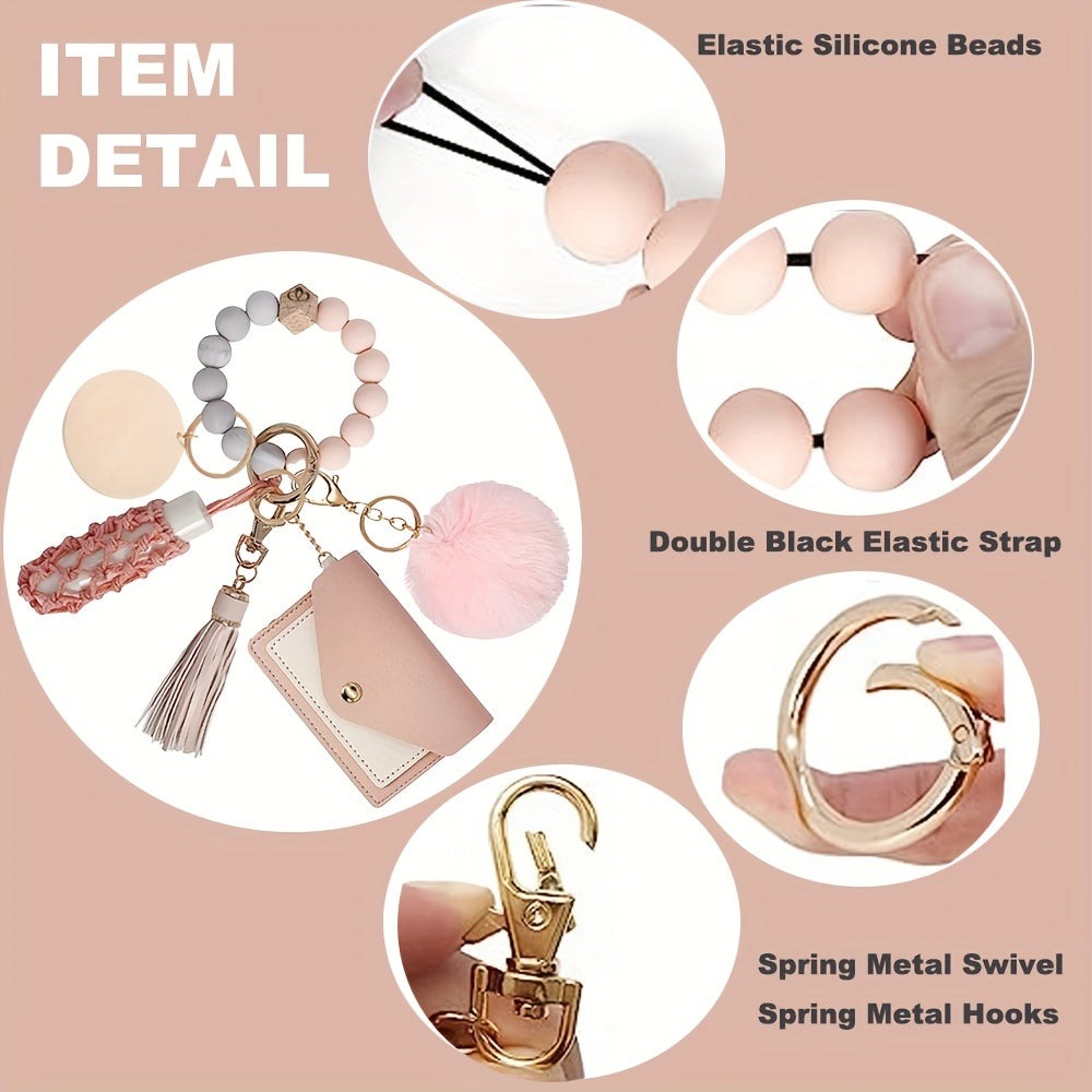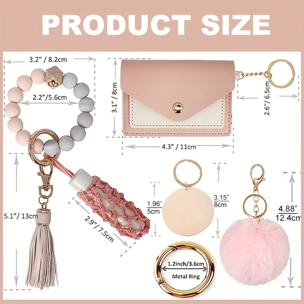 Набор из 7 силиконовых браслетов-ключниц с кошельком и держателем для губной помады - идеальный подарок для женщин, включая подруг и маму, в качестве брелков для автомобильных ключей