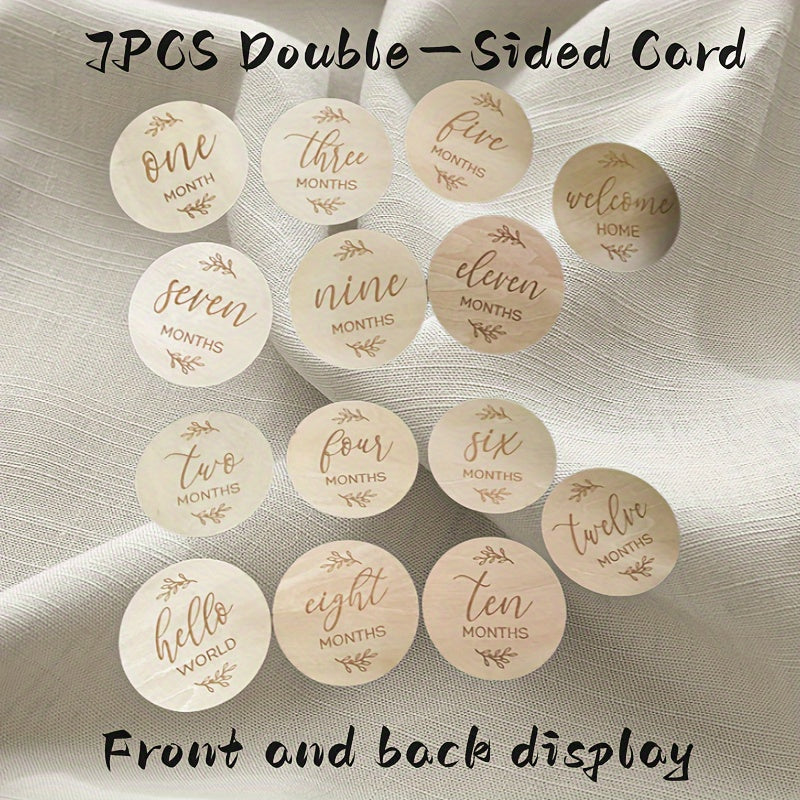Набор из 7 деревянных двусторонних карточек для месячных вех для малыша, знаки для объявлений, фотопропсы, знаки вех для рождения, карточки роста за первый год, карточки вех для беременности.