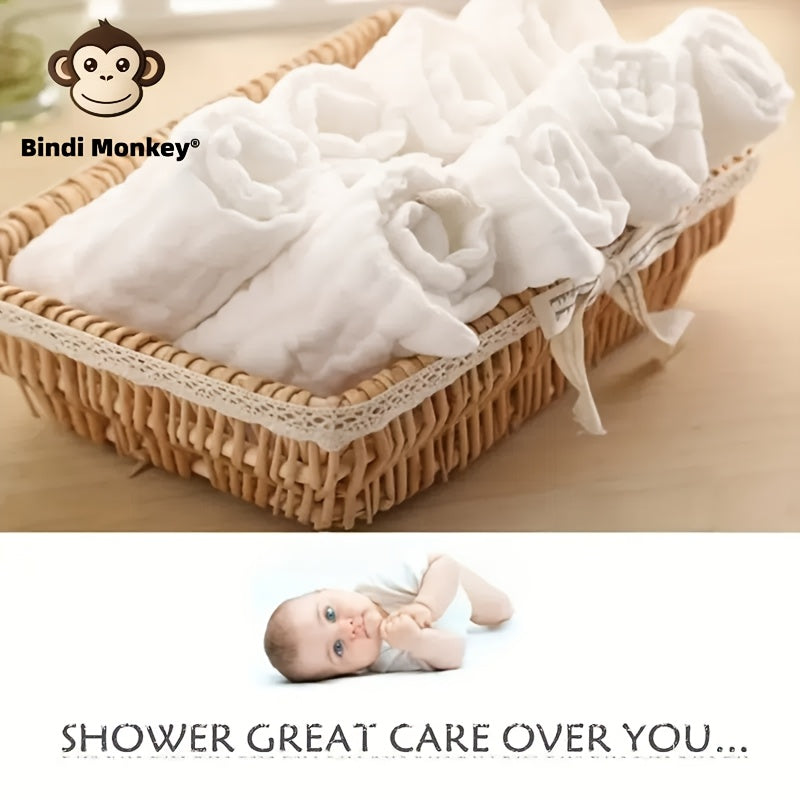 Набор из 8 полотенец для лица "Bindi Monkey" из 100% хлопка, высокоабсорбирующие умывальные полотенца, размер 29,21x29,21 см, мягкая и дышащая белая ткань, с дизайном в племенном стиле, подходящим для всех возрастов, идеальный подарок на душ.