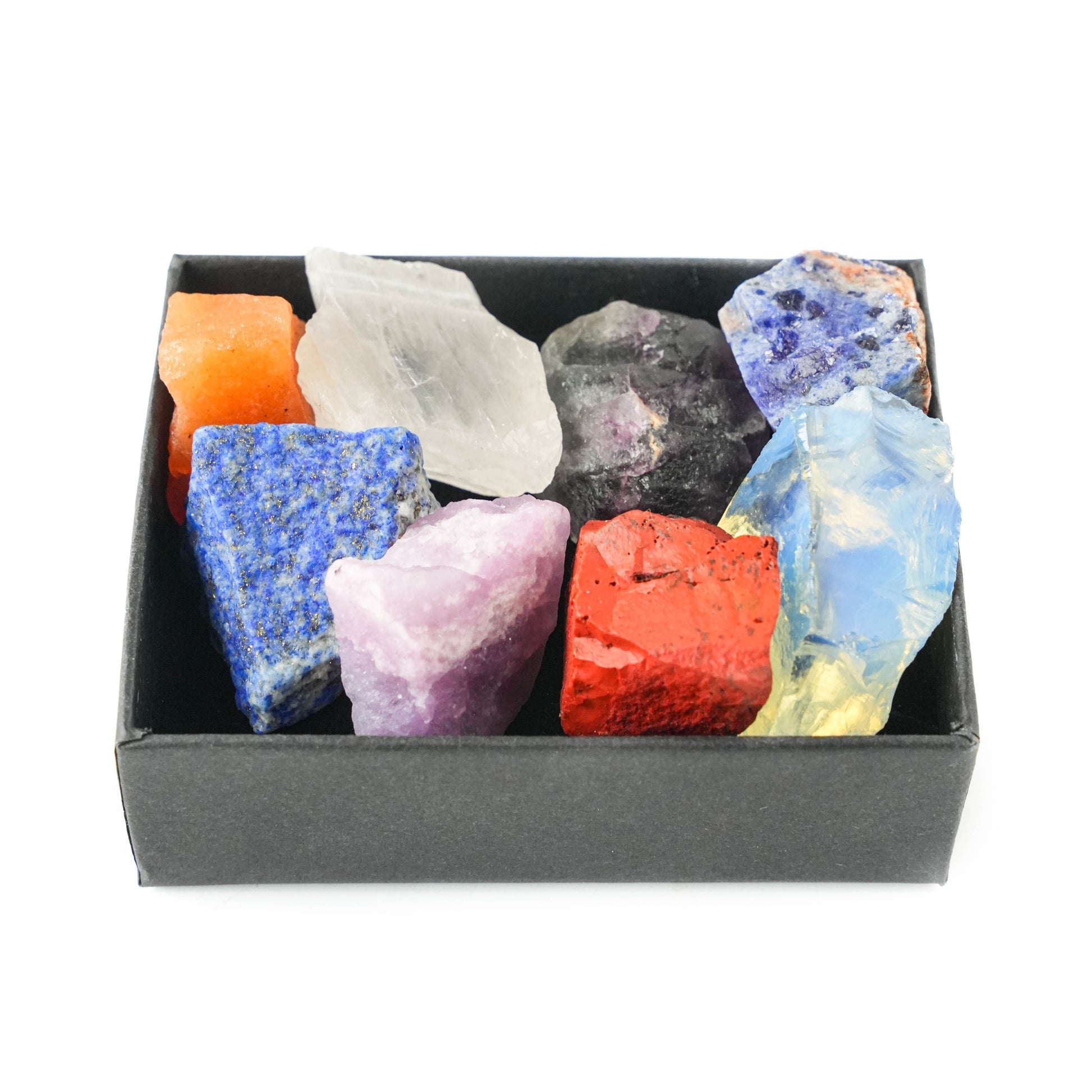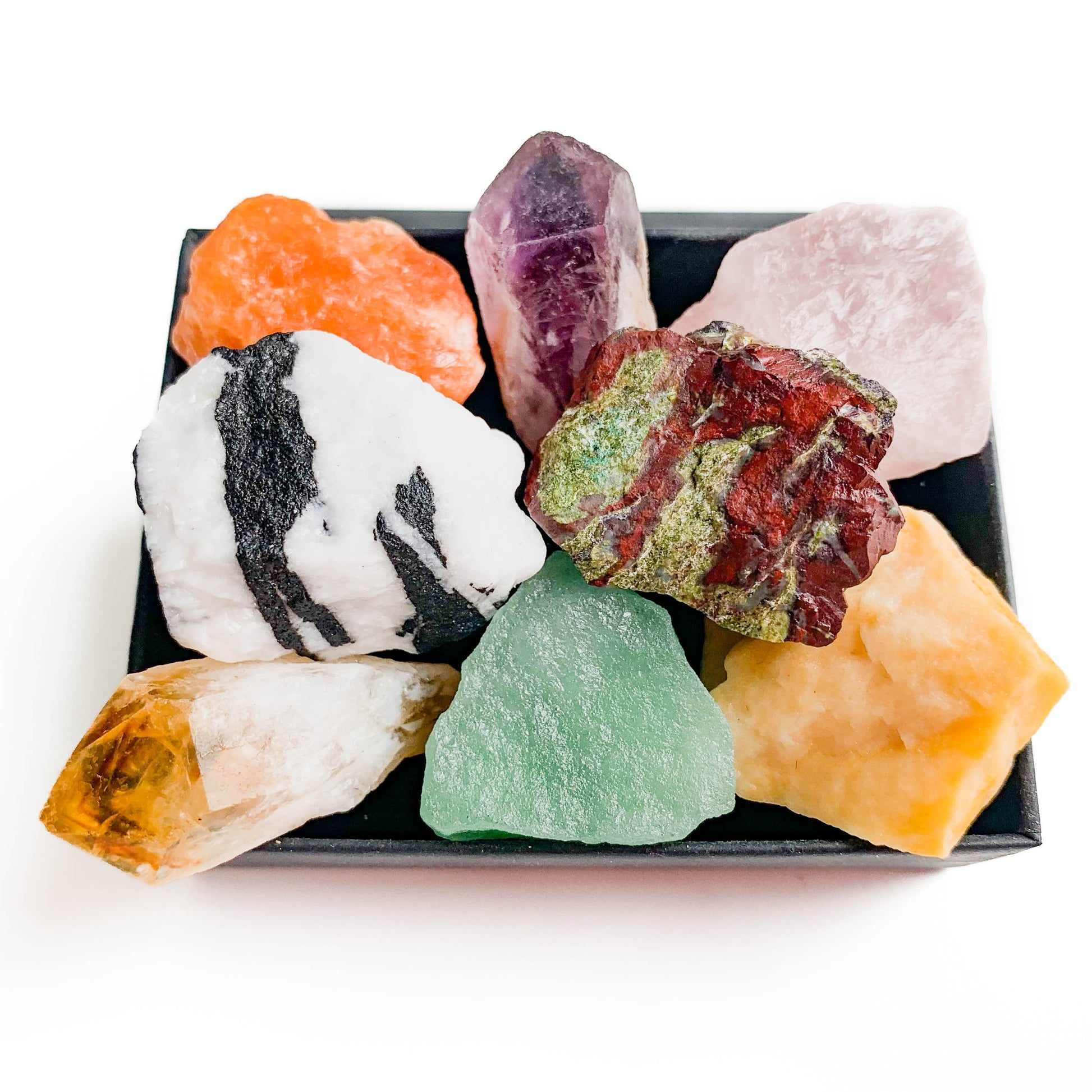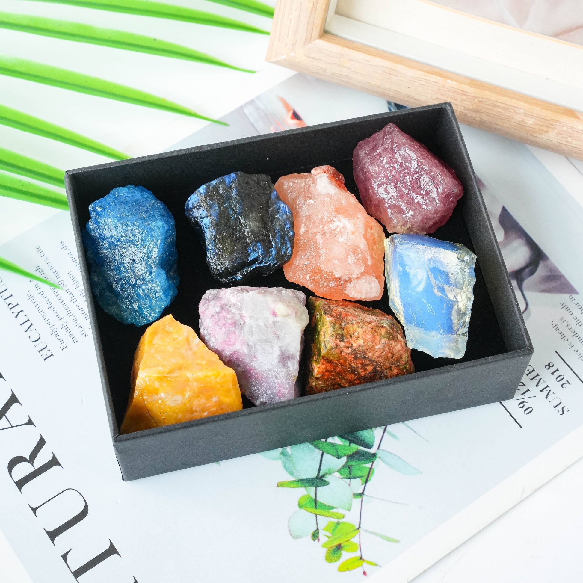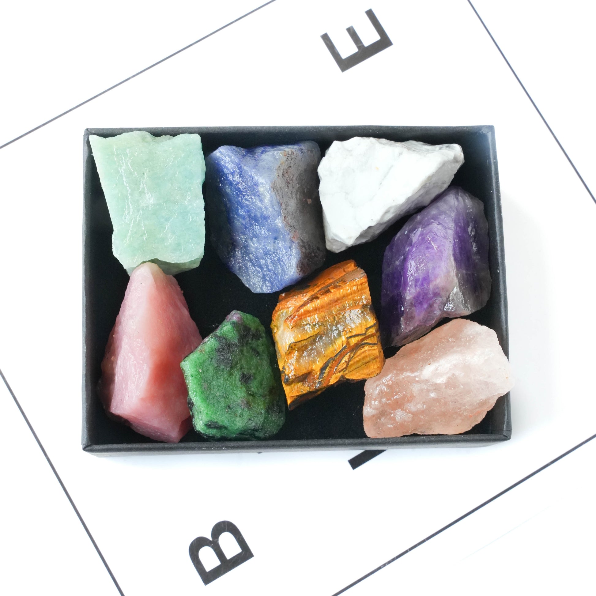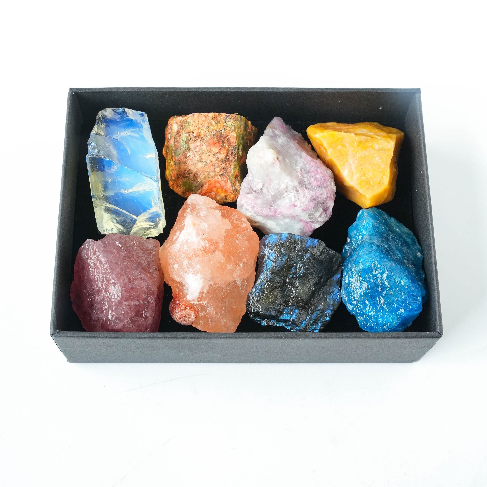 Набор из 8 крупных натуральных кристаллов и камней в коллекционной коробке из кристаллического гема