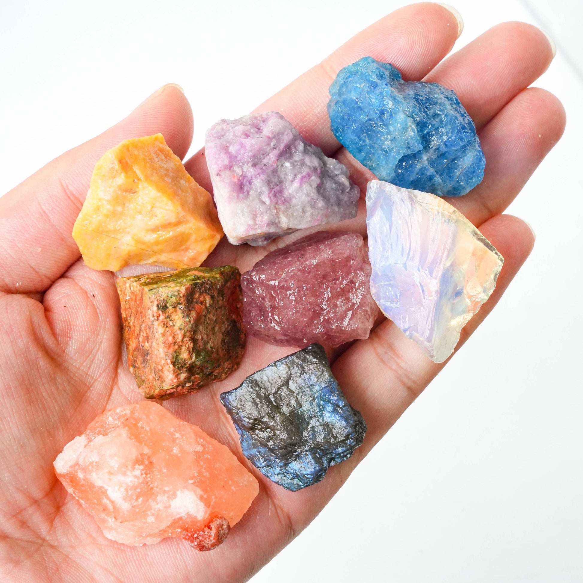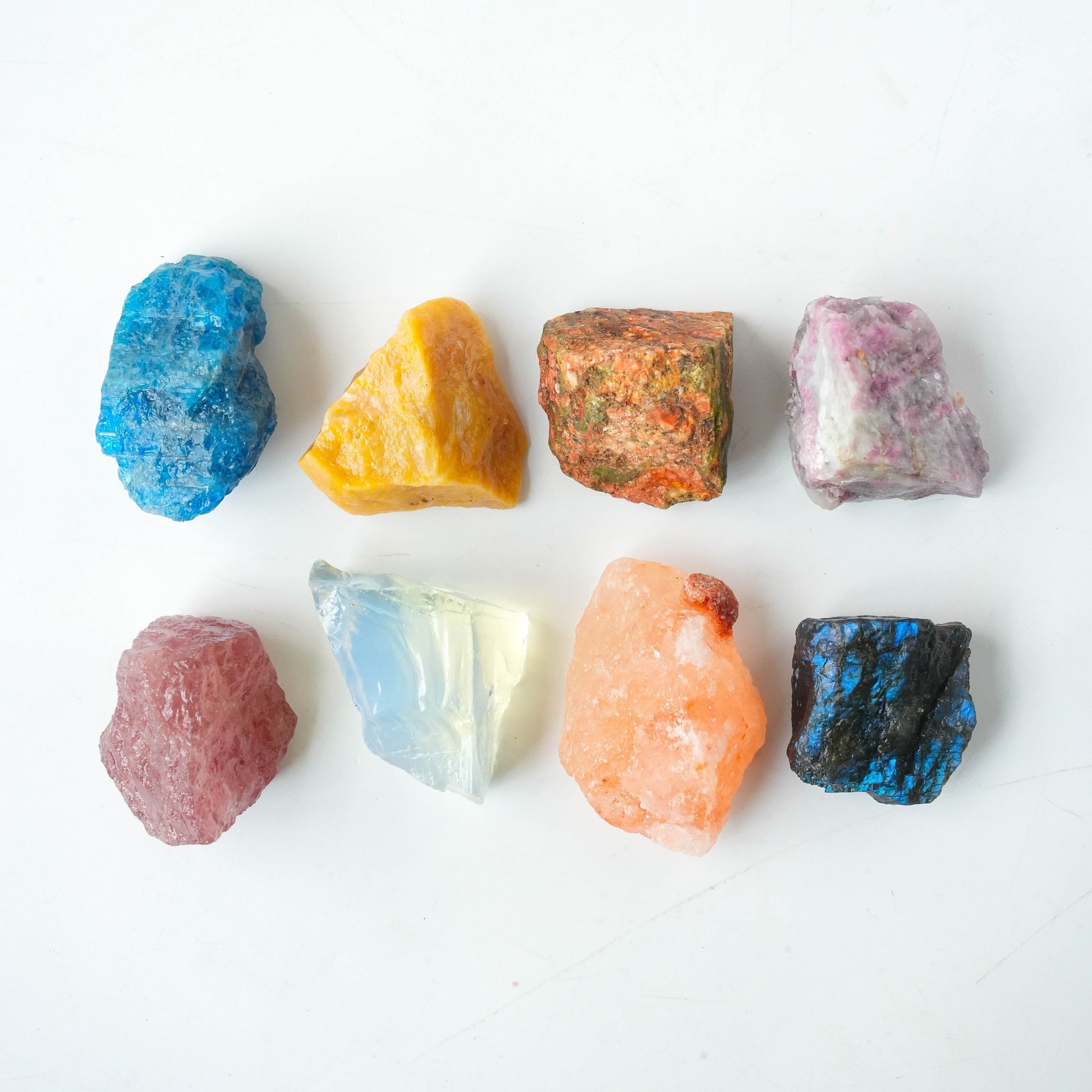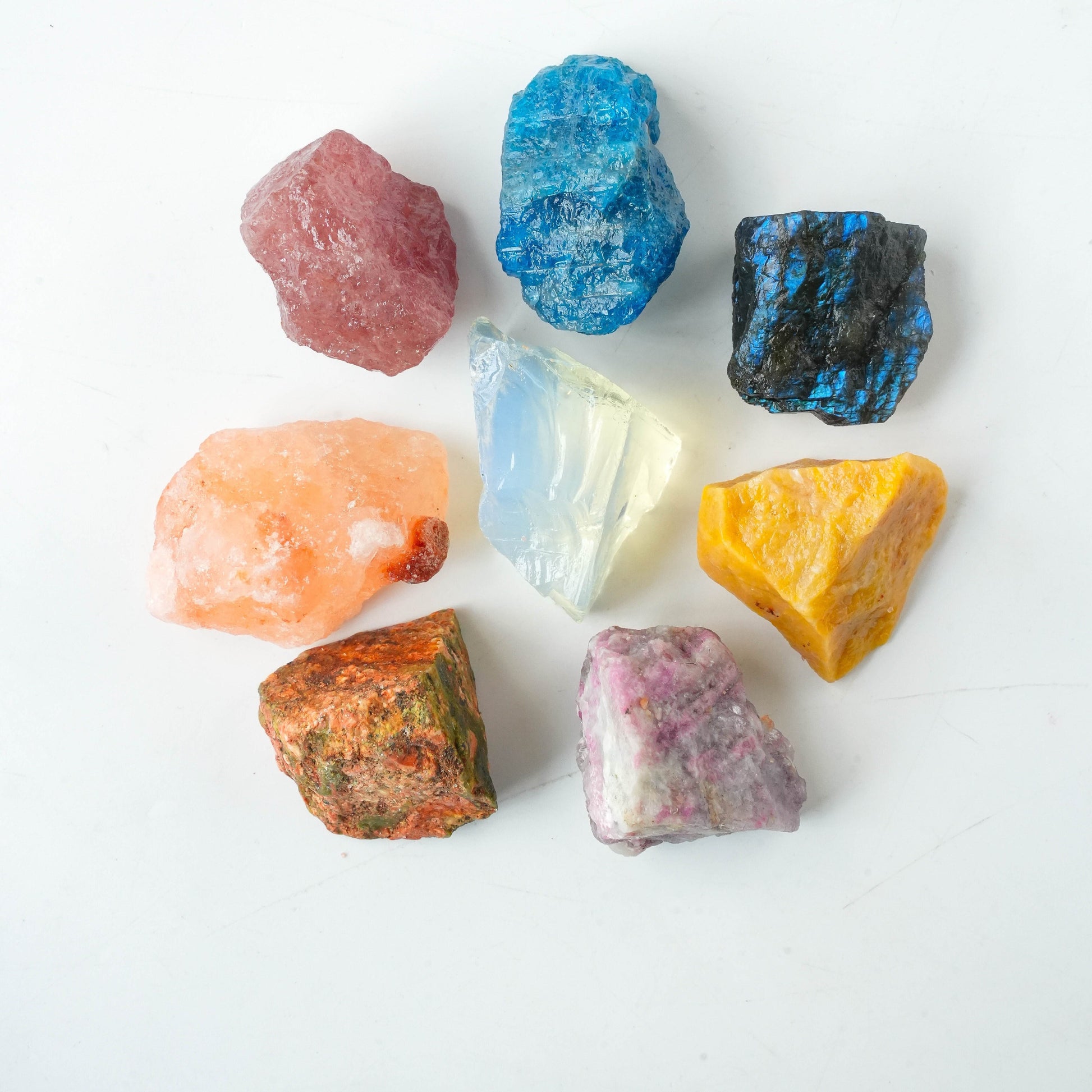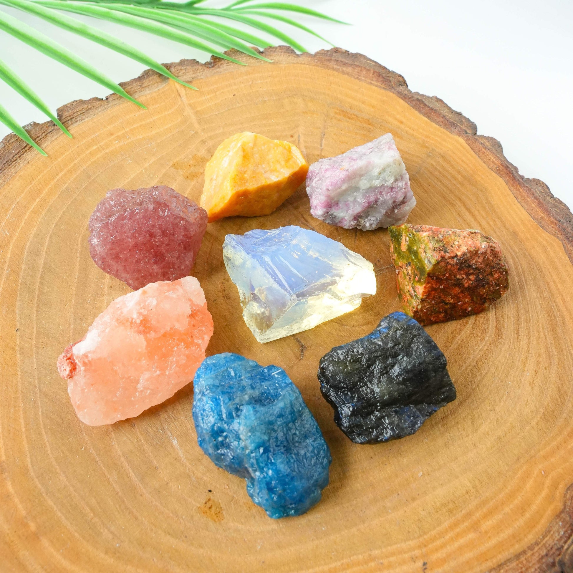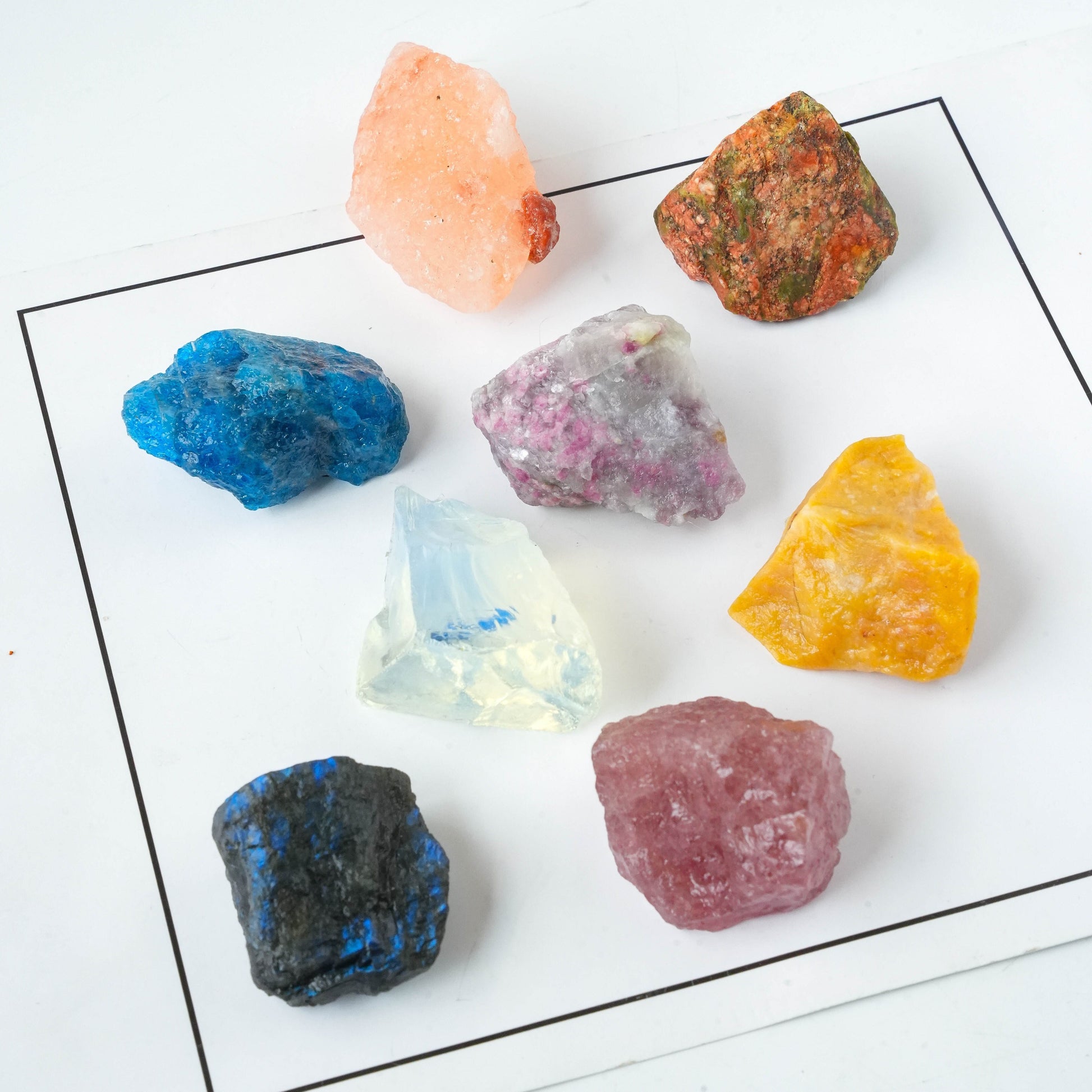 Набор из 8 крупных натуральных кристаллов и камней в коллекционной коробке из кристаллического гема