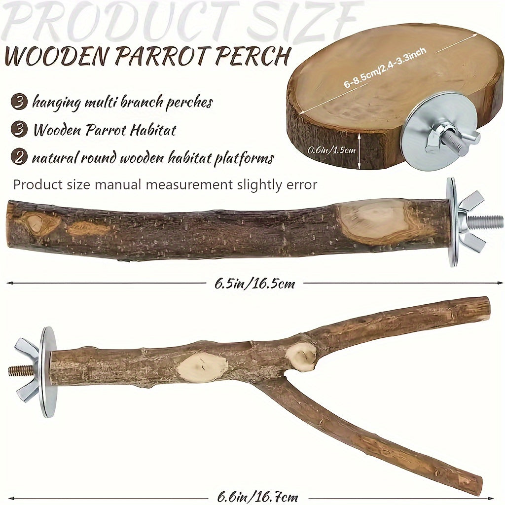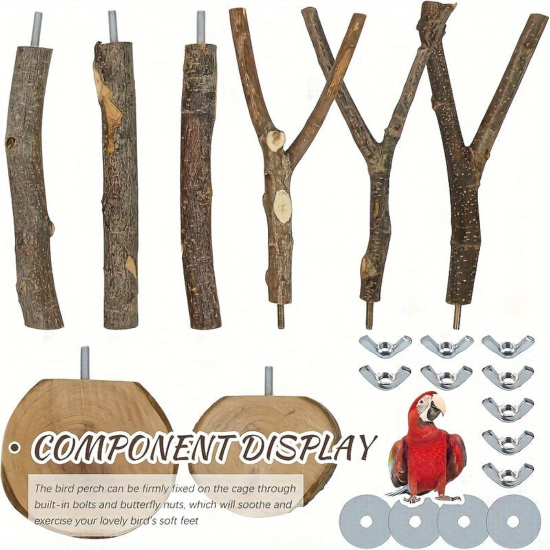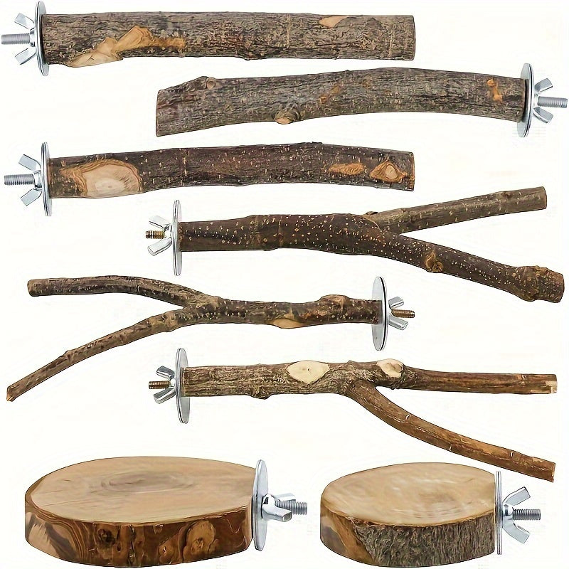 Набор из 8 игрушек для птиц из натурального дерева для различных видов птиц.