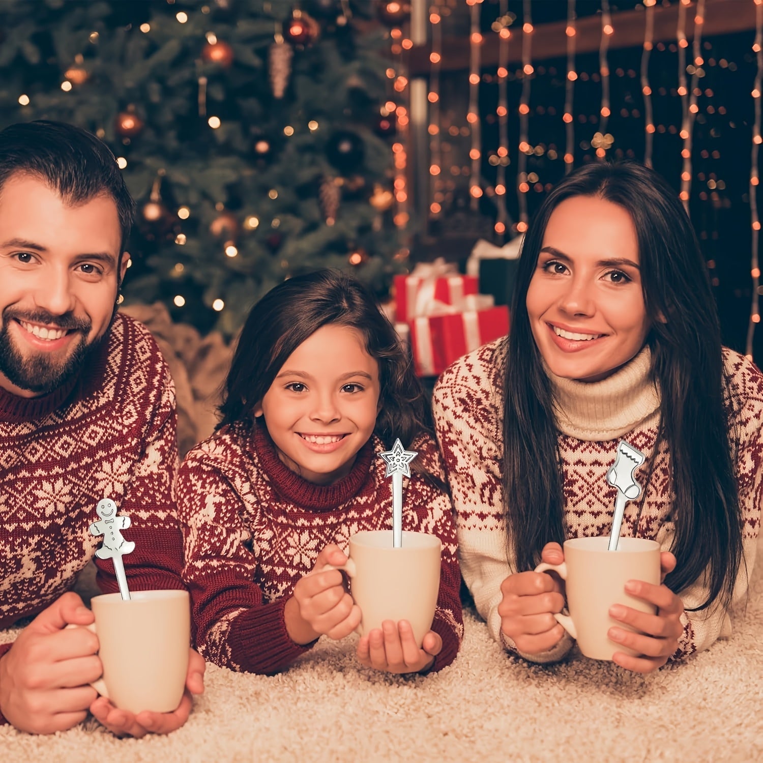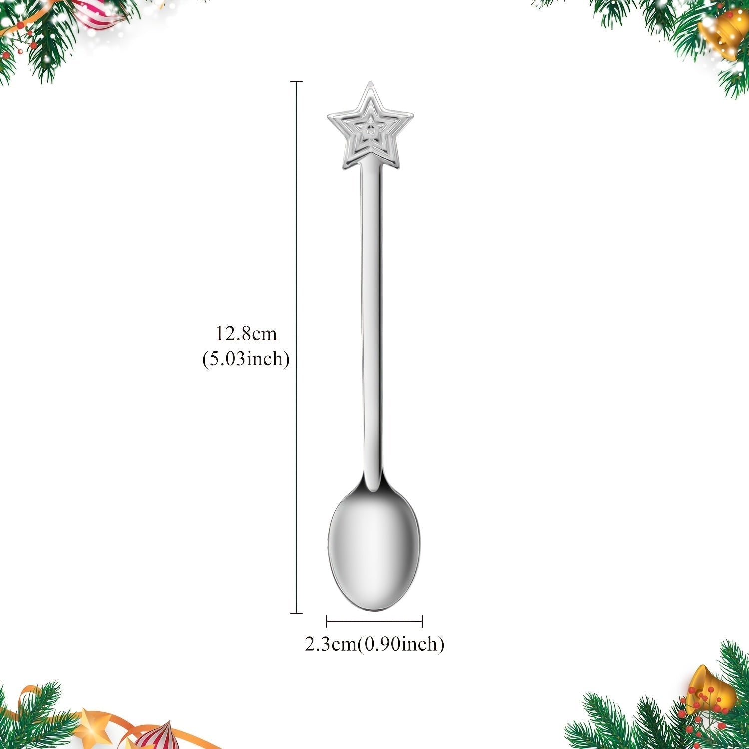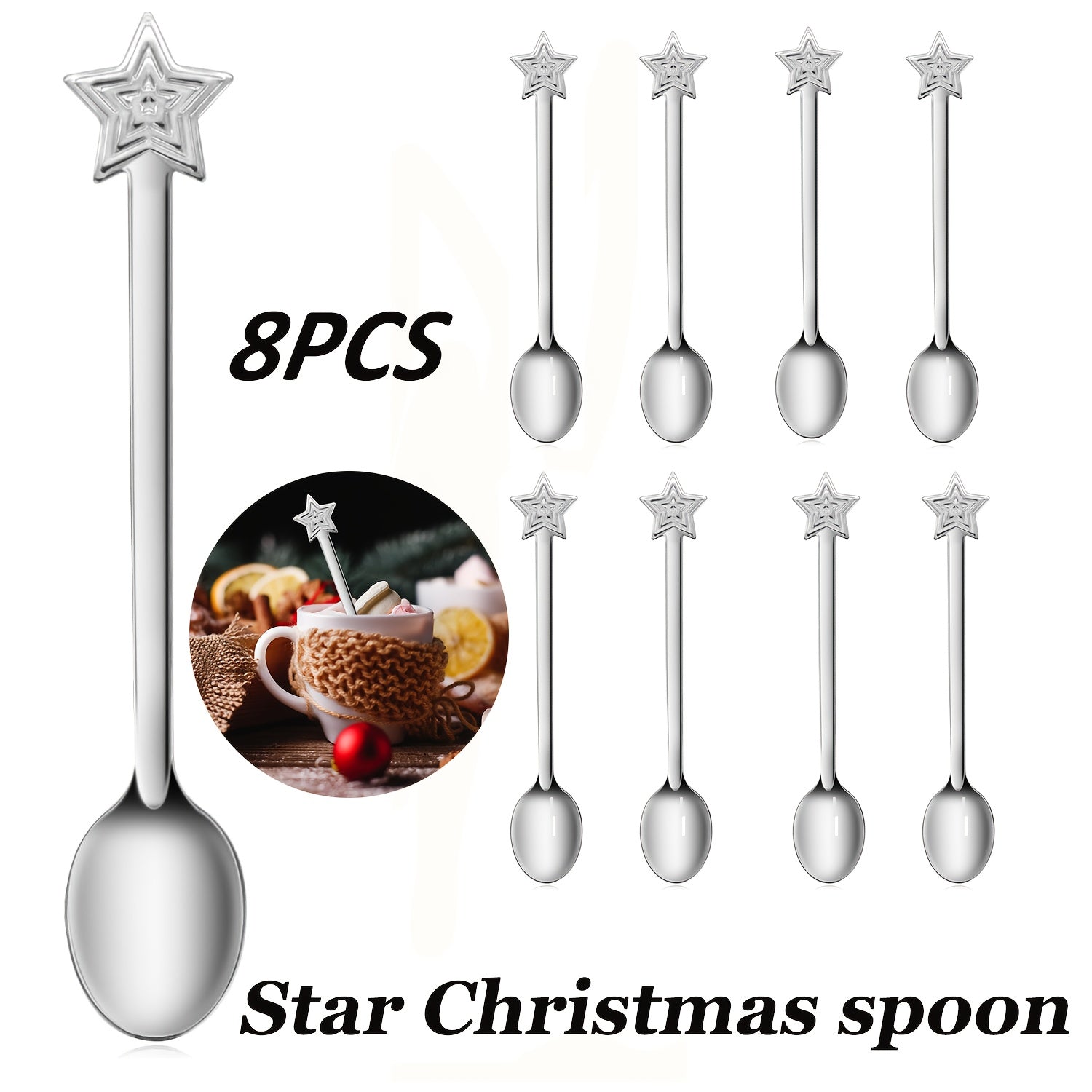 Набор из 8 рождественских ложек из нержавеющей стали с рисунком в виде звезд — идеально подходит для подачи кофе, чая, супа и десертов в праздничный сезон.