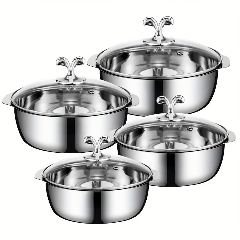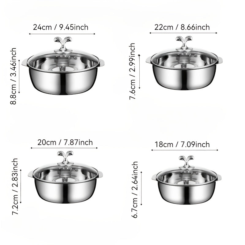 Набор из 8 кастрюль из нержавеющей стали с крышками, безопасных для микроволновки и плиты
