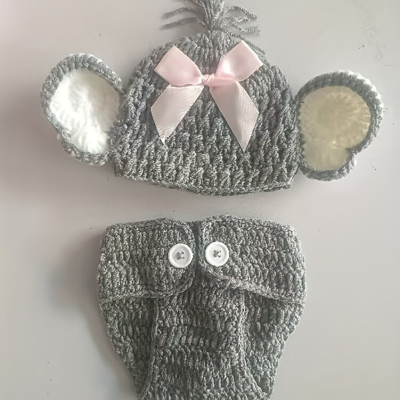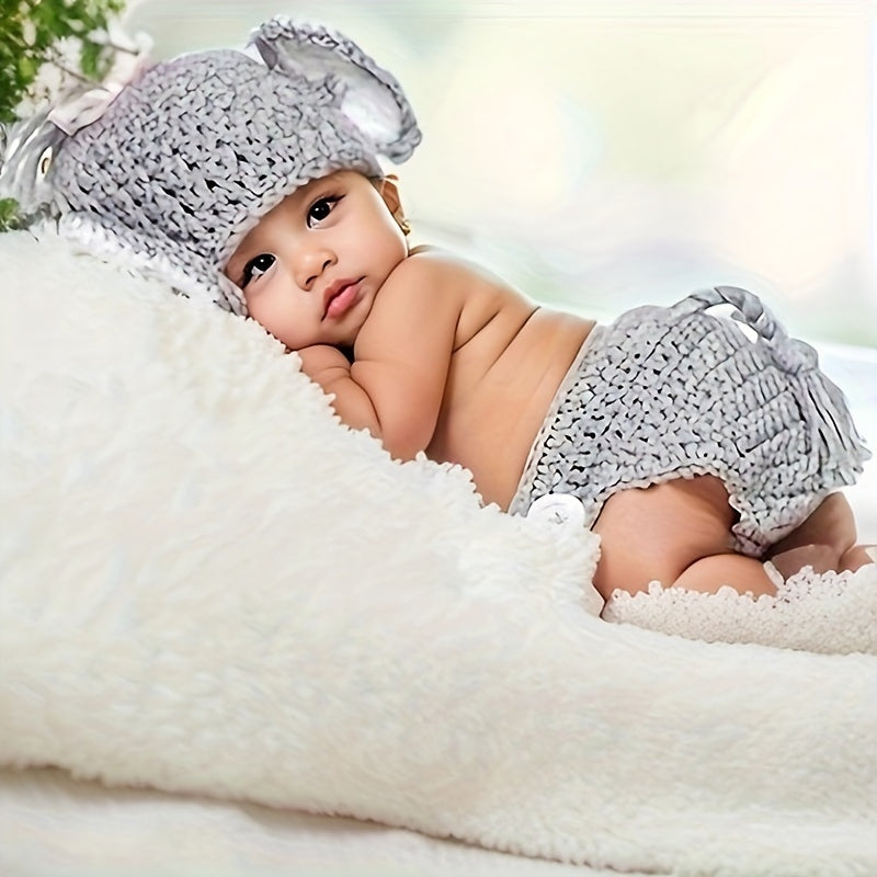 Комплект вязаной крючком шапки и шорт для новорожденного слоненка, идеально подходит для костюмной фотосъемки и фотопринадлежностей для младенцев и детей.