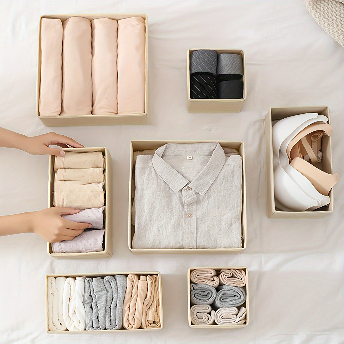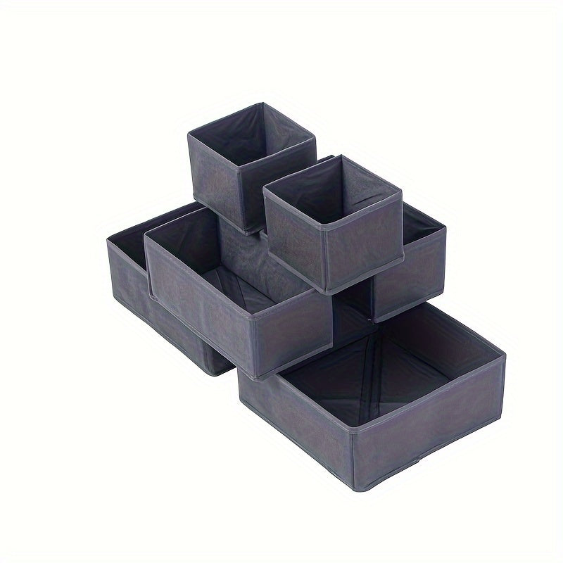 Набор из шести складных контейнеров из нетканого материала, идеально подходящих для организации одежды в шкафах и ящиках. Эти квадратные органайзеры без крышки идеально подходят для хранения необходимых вещей в детской и спальне.