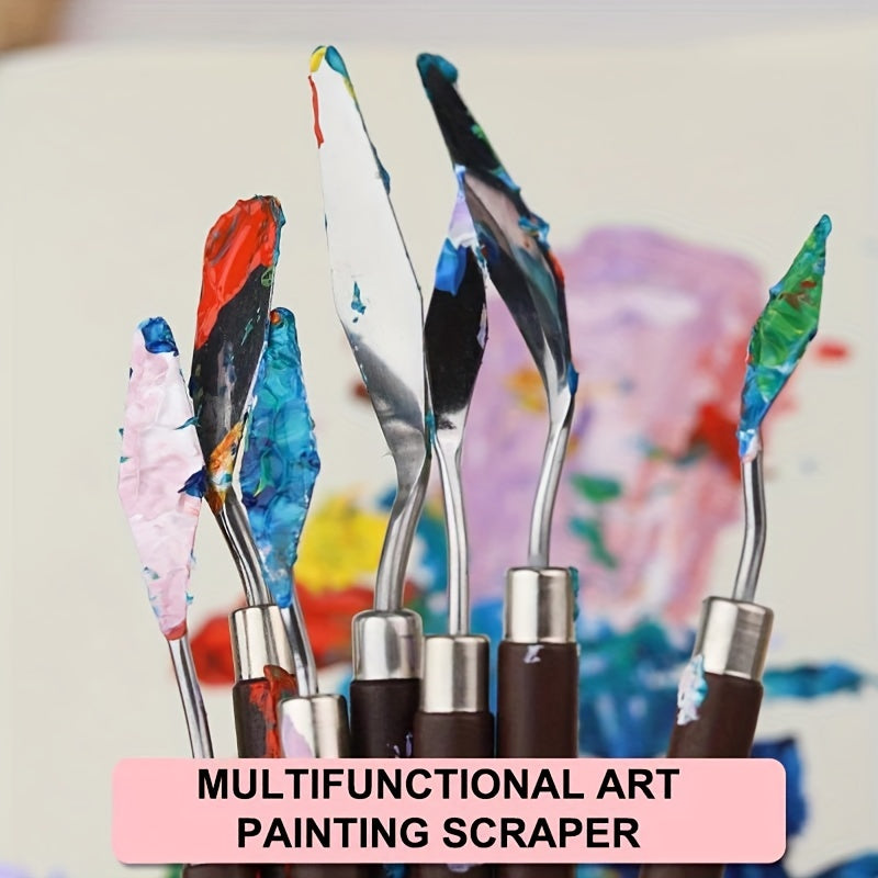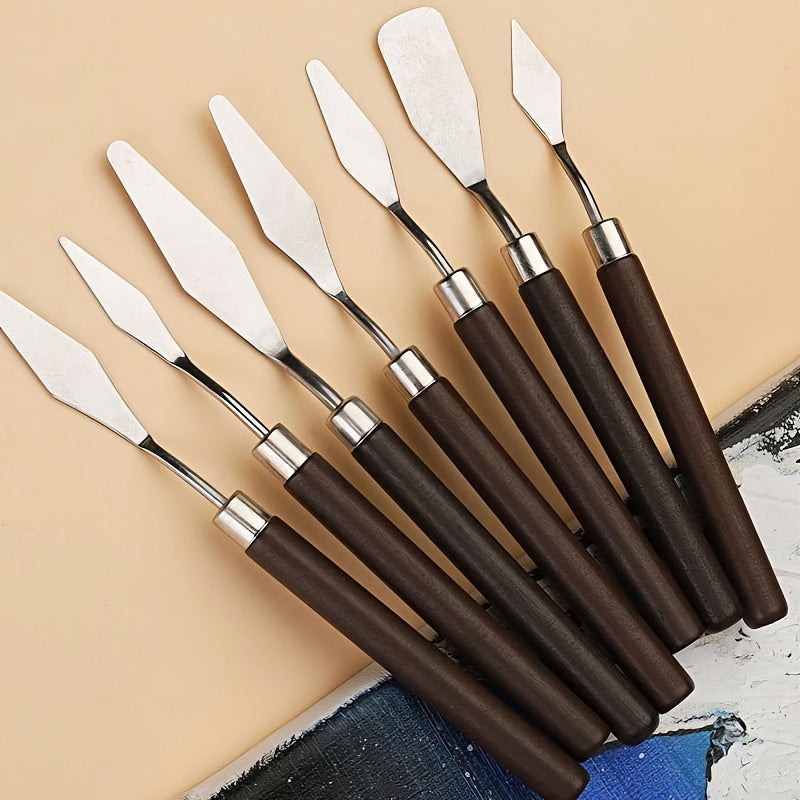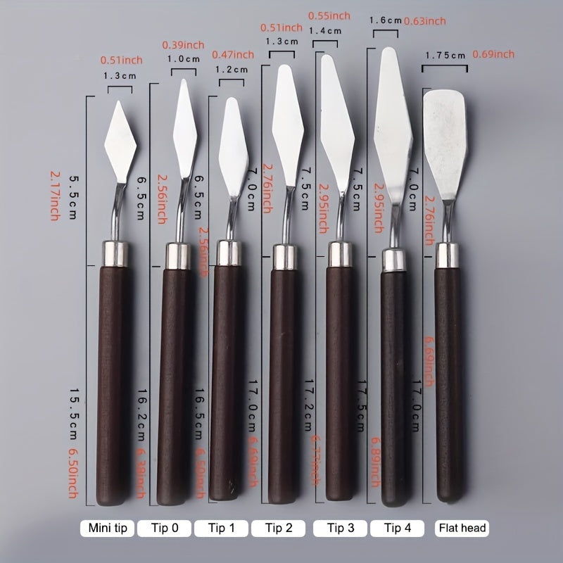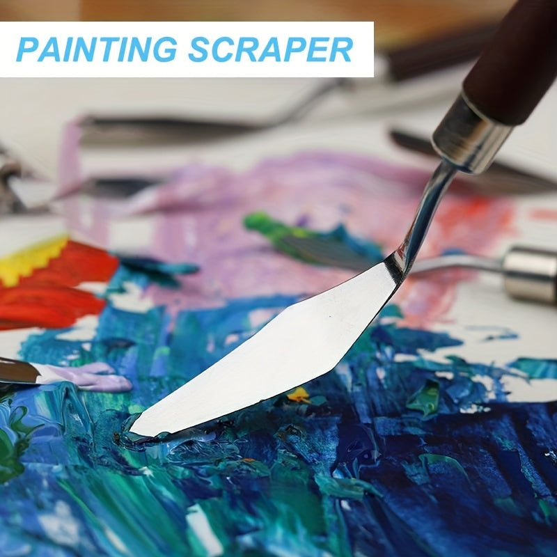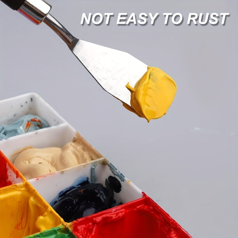 Набор ножей для палитры из нержавеющей стали для масляной живописи, доступный в различных размерах и формах.