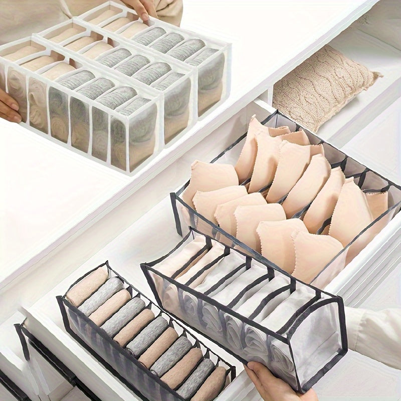 Набор из трех органайзеров для одежды из полиэстерового волокна с 7 ячейками, идеально подходит для нижнего белья, носок, галстуков - отличное решение для хранения в ящиках для подростков и взрослых