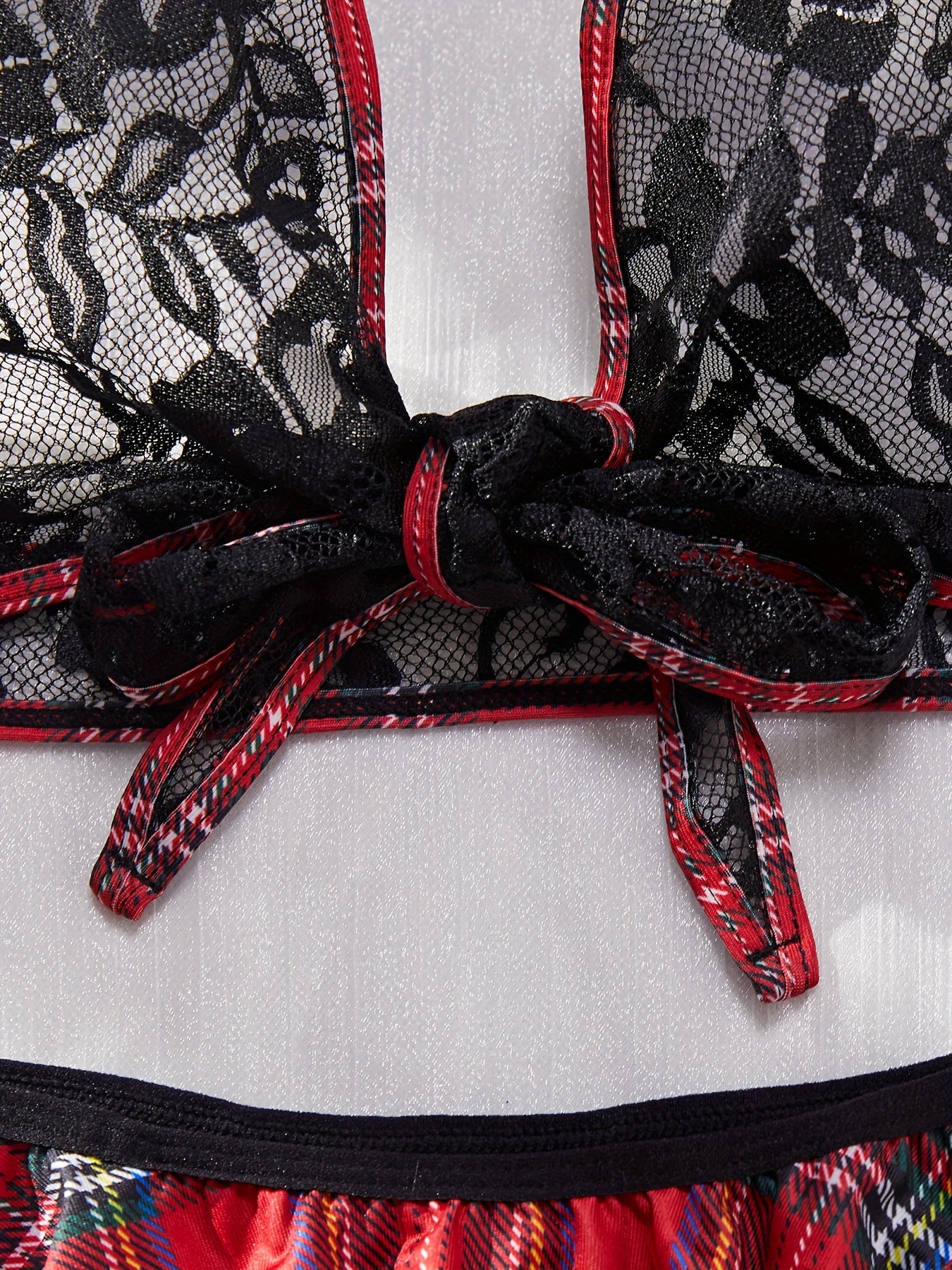 Сексуальный костюм для косплея с цветным клетчатым принтом, халтер-верх и многослойные стринги, идеально подходящий для музыкального фестиваля.
