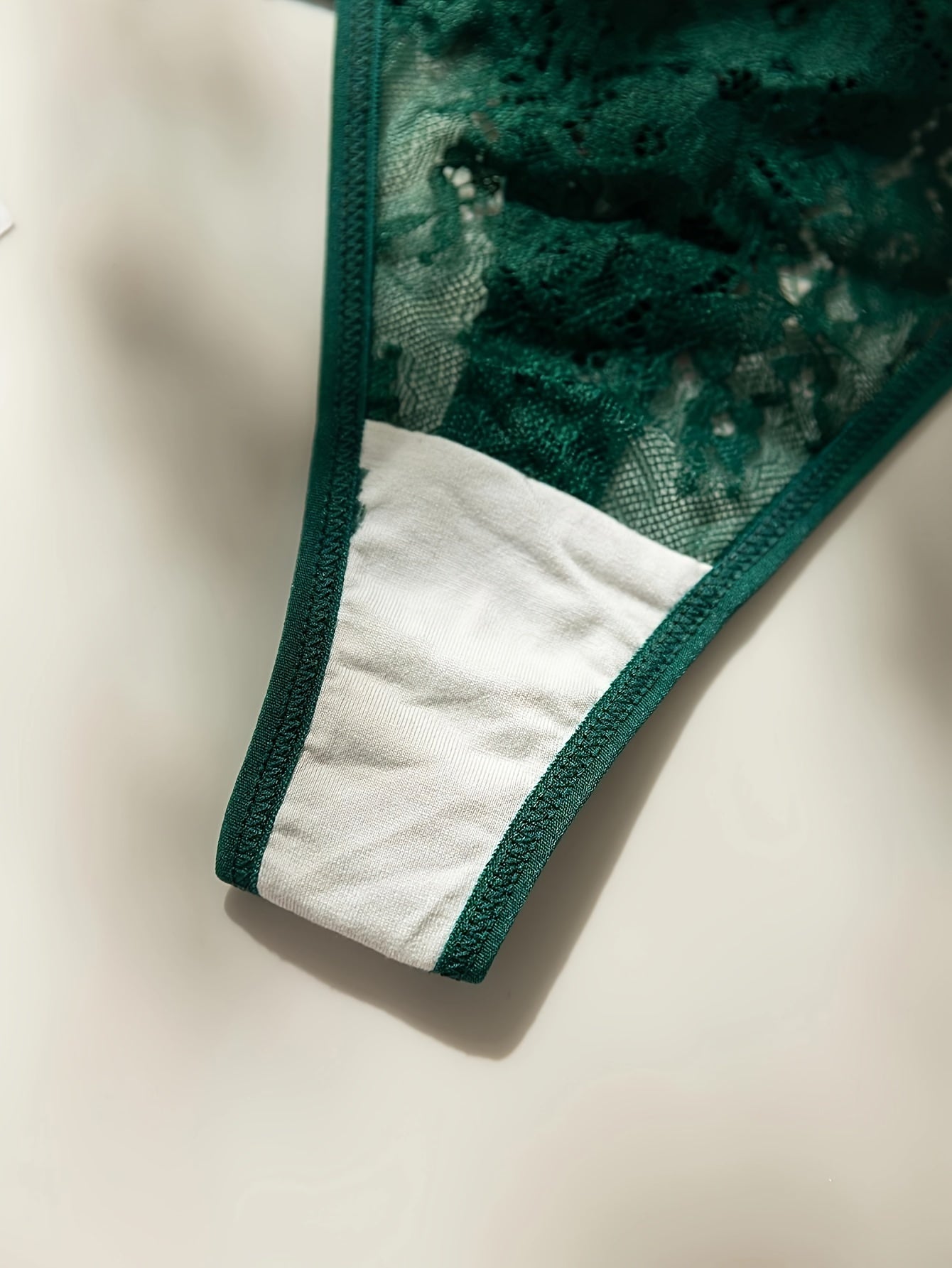 Сексуальный женский комплект нижнего белья с двухцветным кружевом и полупрозрачным дизайном.