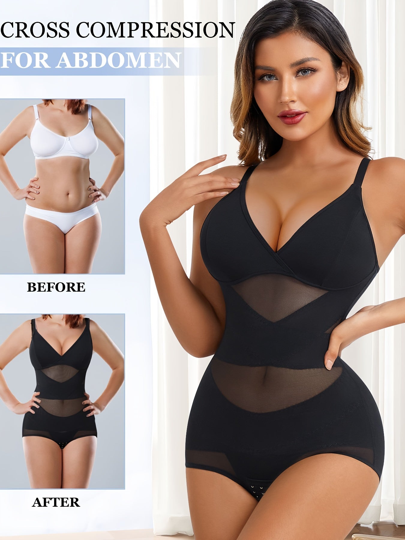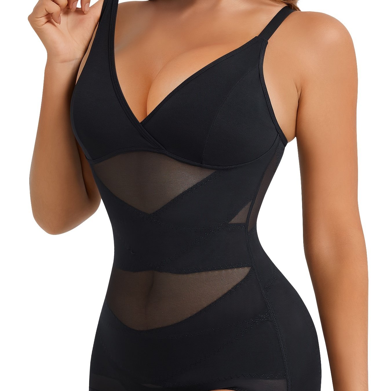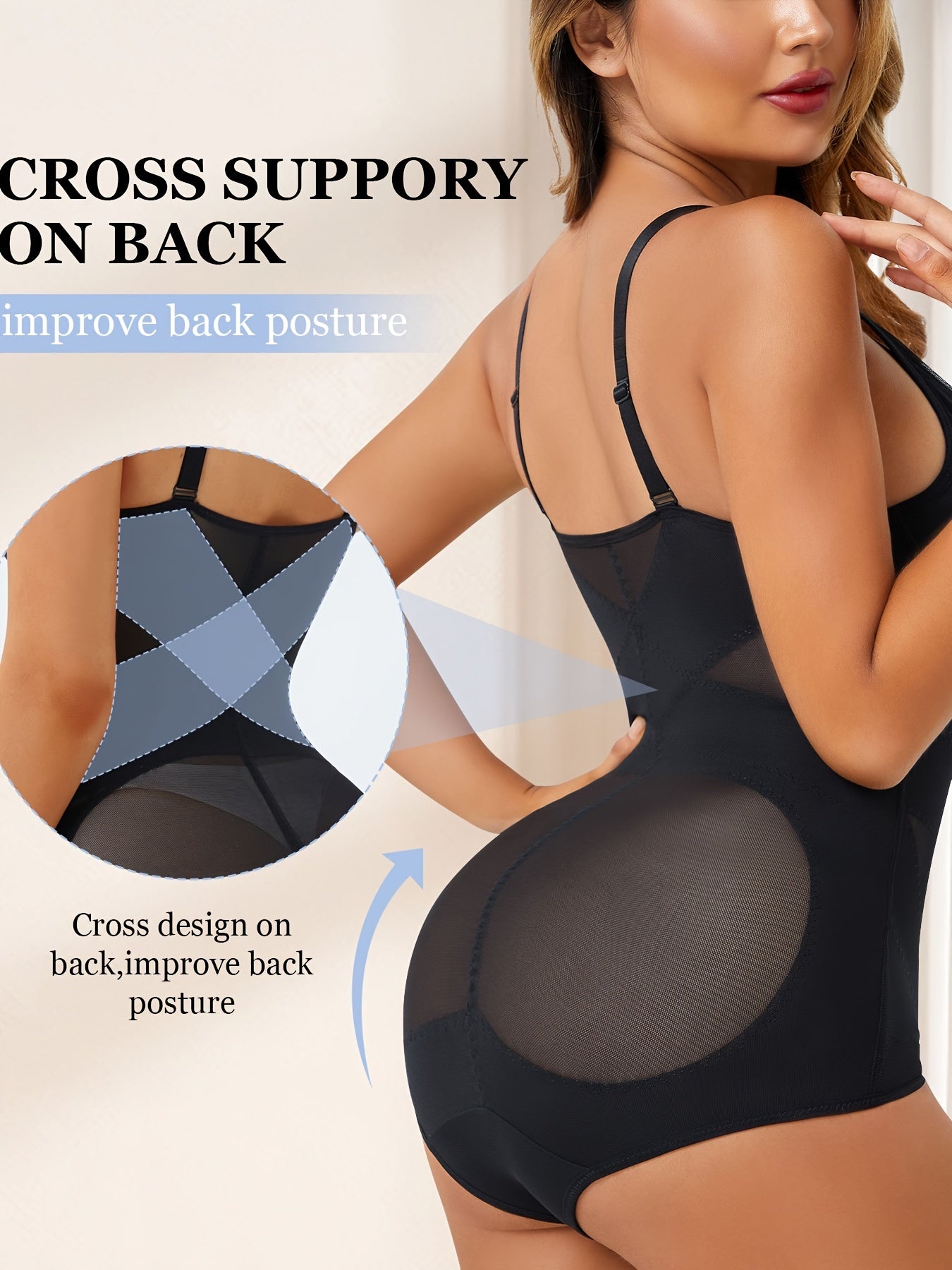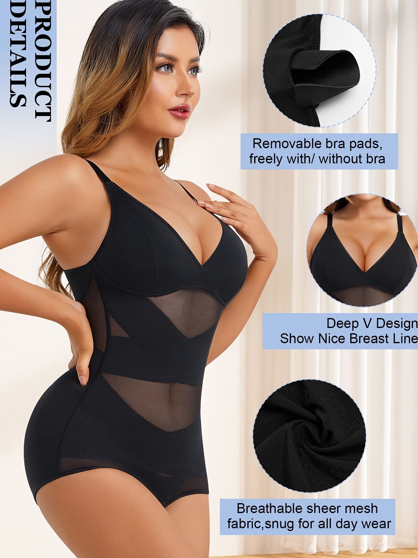 Корректирующий боди для женщин с съемными подушечками, глубоким V-образным вырезом, надежной поддержкой живота, дышащей сеткой, подъемником для ягодиц, для ношения в течение всего дня.