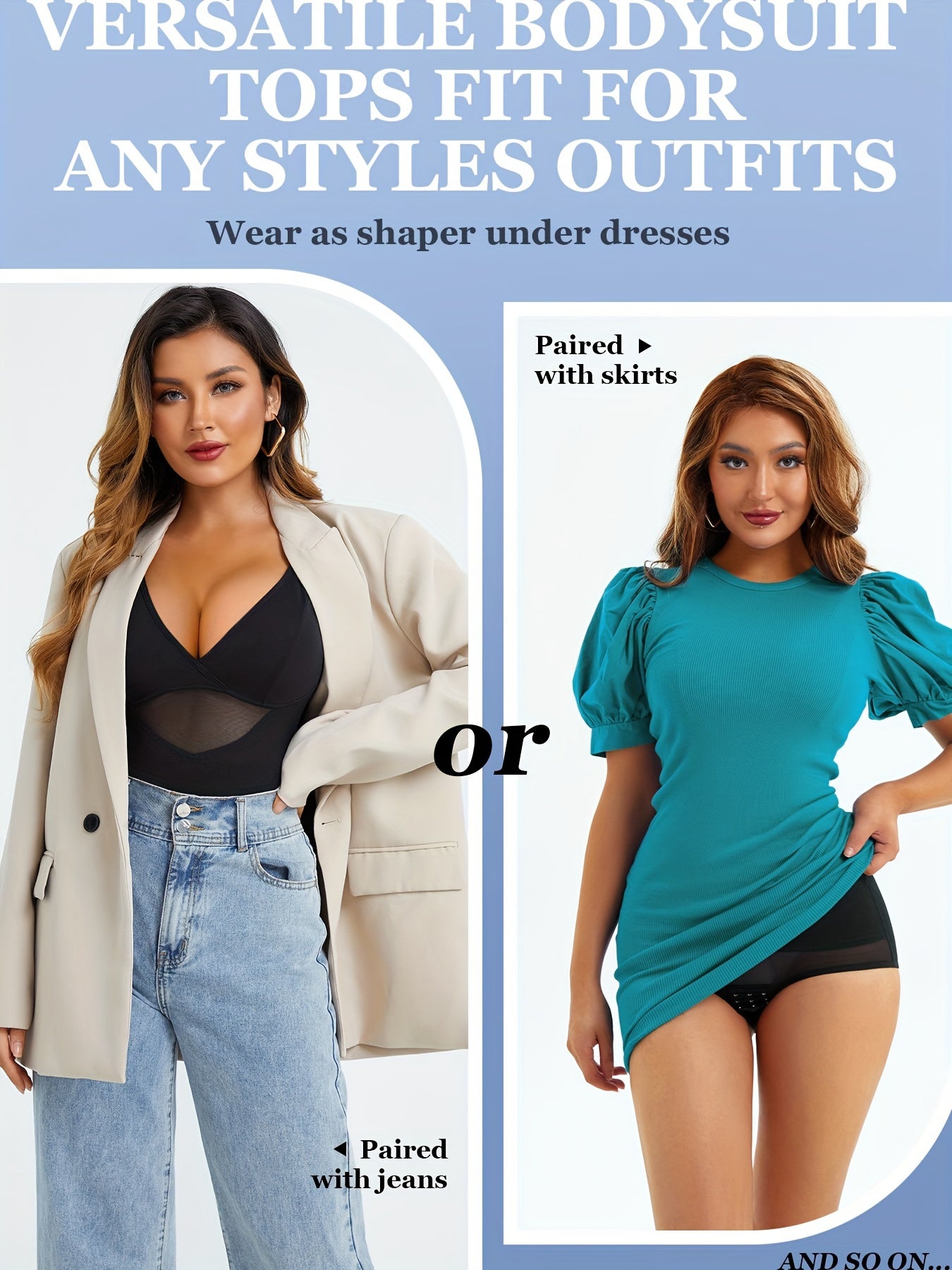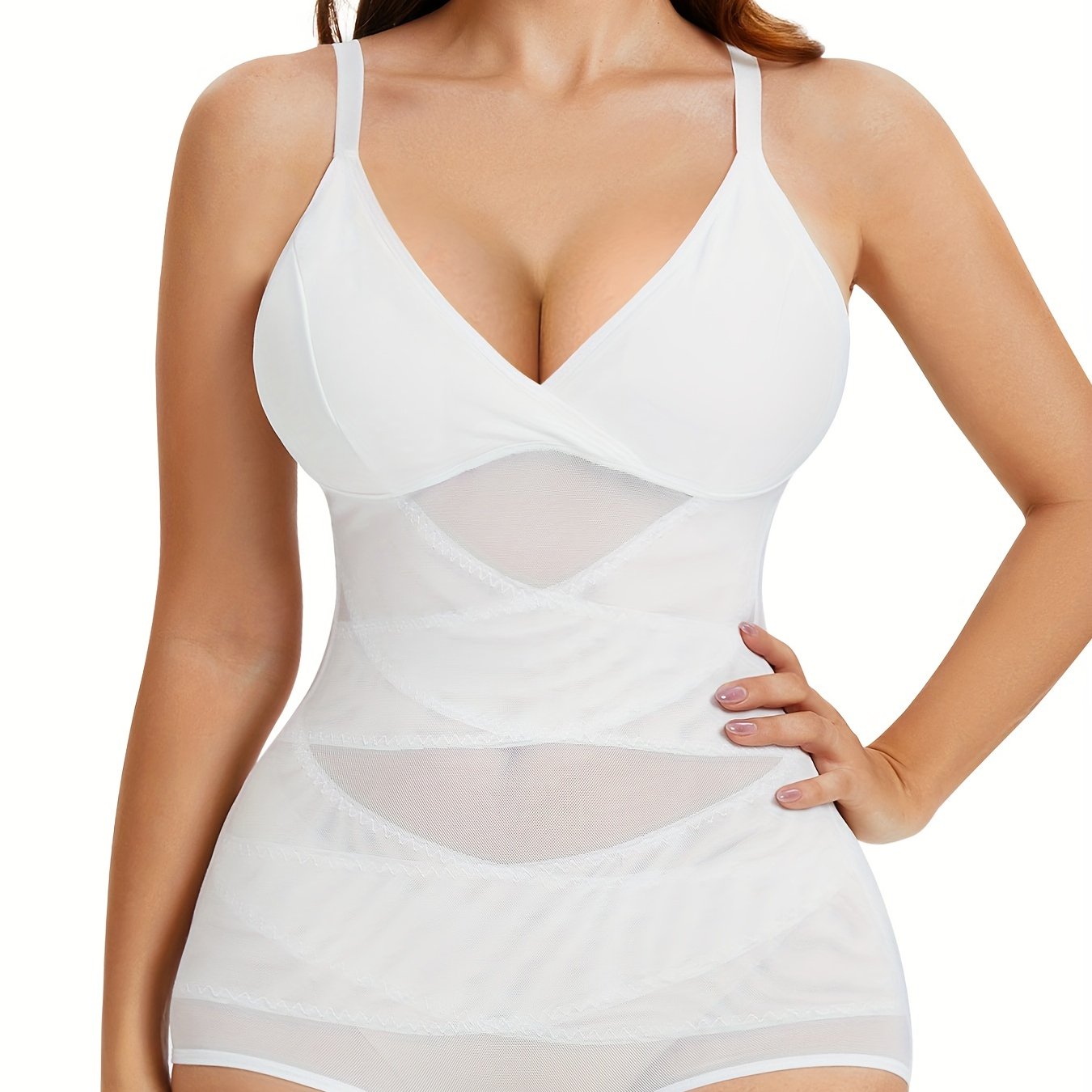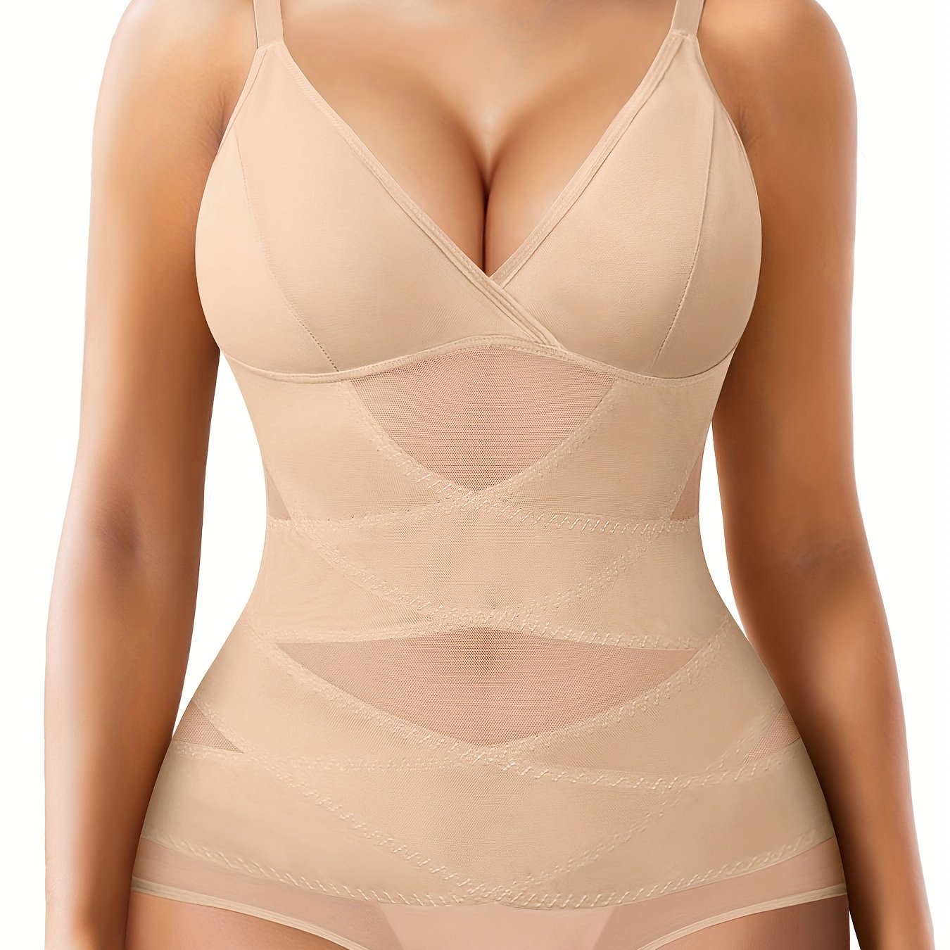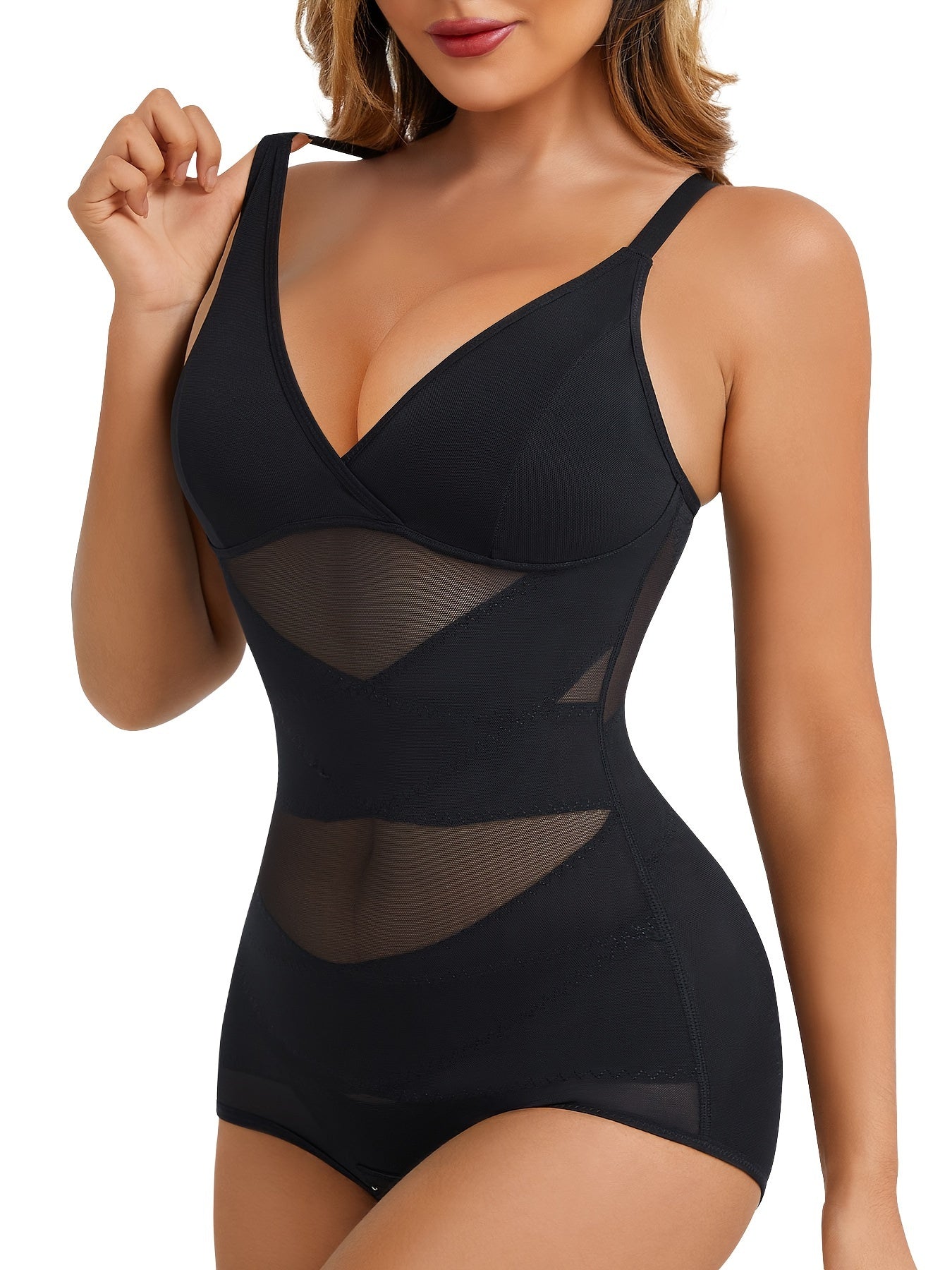 Корректирующий боди для женщин с съемными подушечками, глубоким V-образным вырезом, надежной поддержкой живота, дышащей сеткой, подъемником для ягодиц, для ношения в течение всего дня.