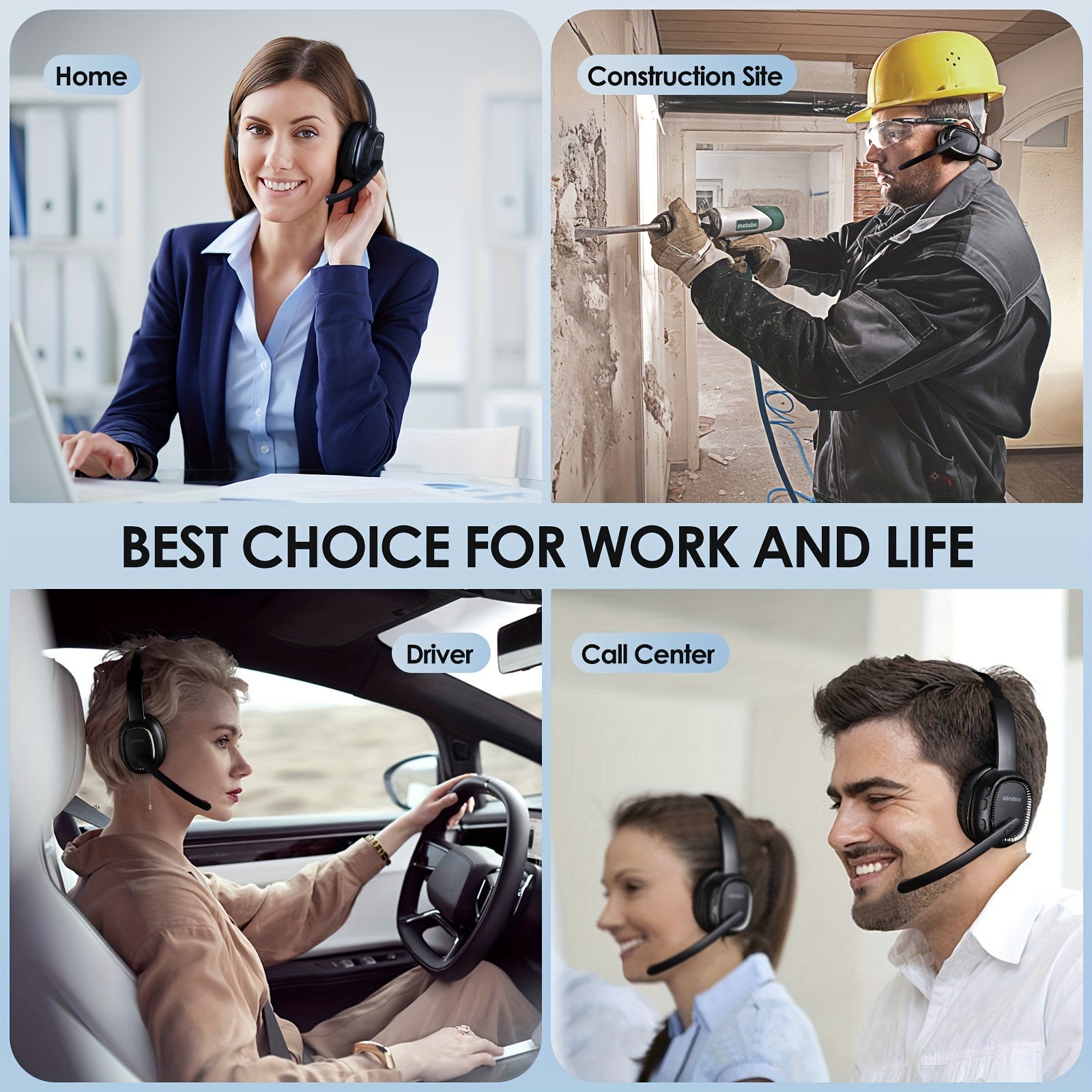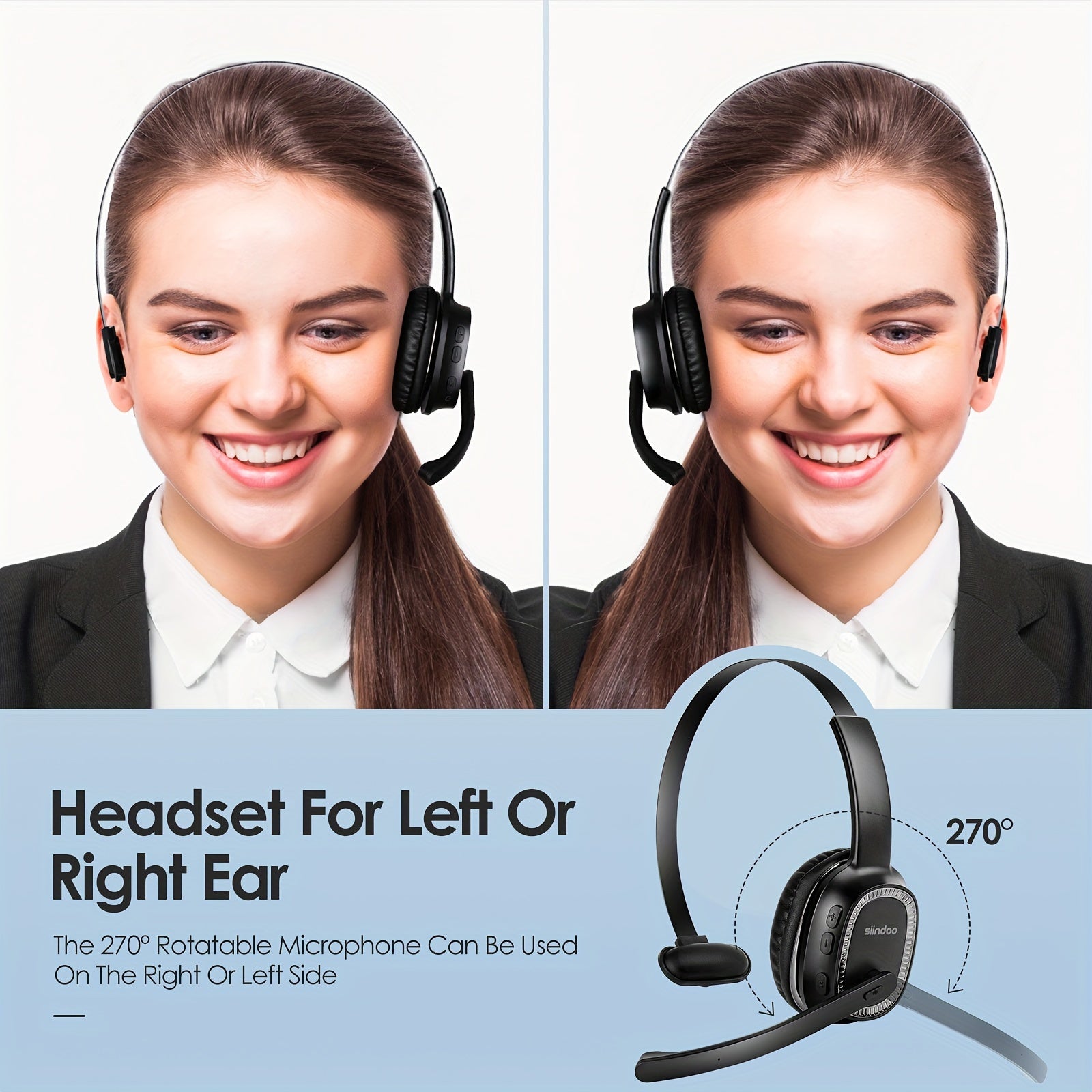 SIINDOO Беспроводные наушники с шумоподавлением черного цвета, с микрофоном, перезаряжаемая батарея 400mAh, зарядка через USB-C, идеально подходят для офиса, бизнеса, водителей грузовиков. Отлично подходят для офисной коммуникации.