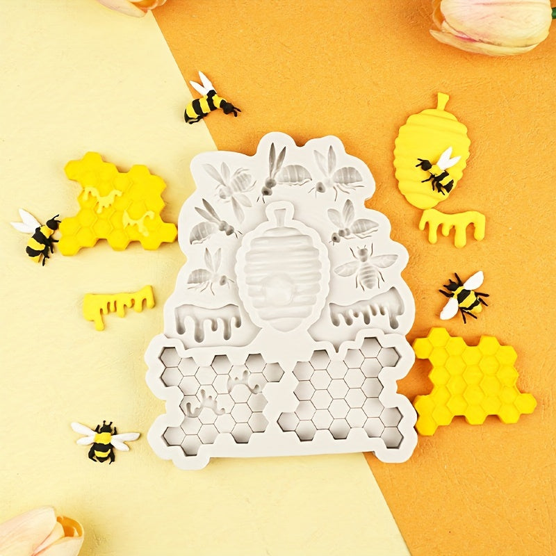 Силиконовая форма для выпечки с рисунком пчелы и сот — идеально подходит для самостоятельного изготовления шоколада, помадки и конфет, а также для креативного украшения тортов замысловатыми узорами в виде пчел.