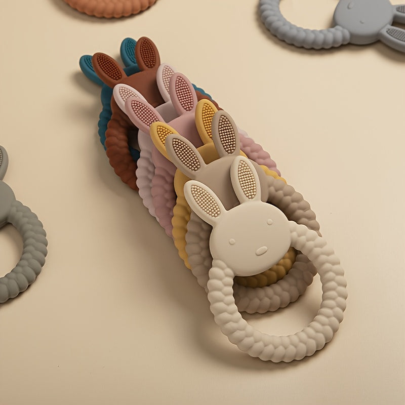 Силиконовая игрушка для прорезывания зубов для младенцев - милый дизайн кролика, безопасна для жевания и успокаивания десен, идеально подходит для новорожденных
