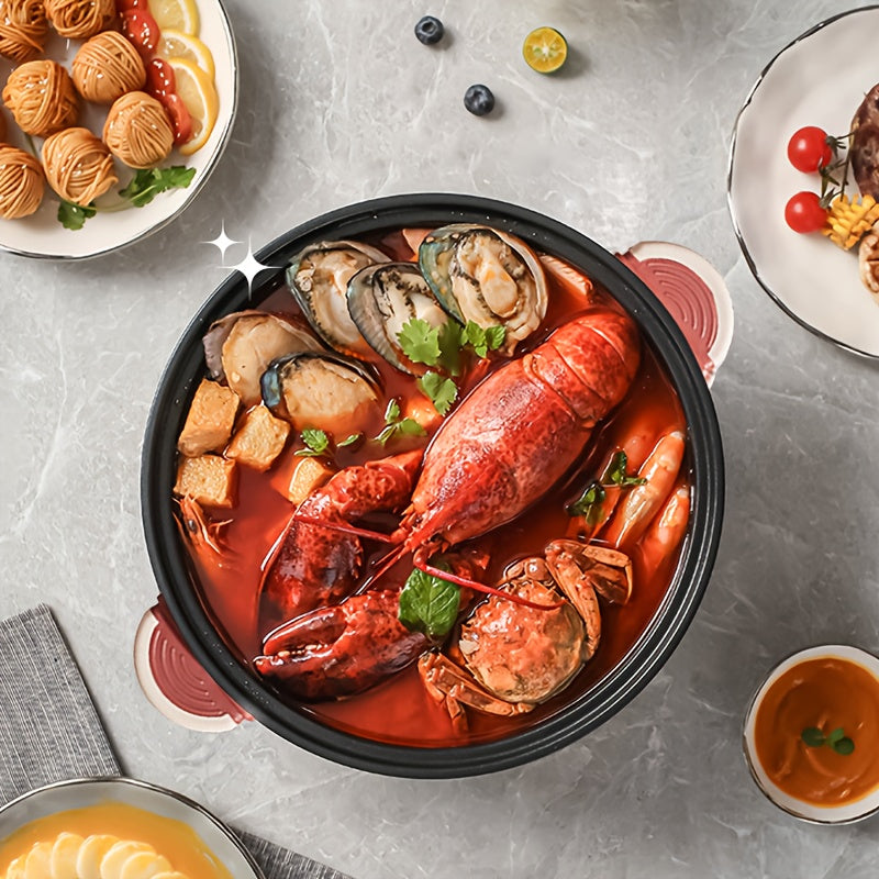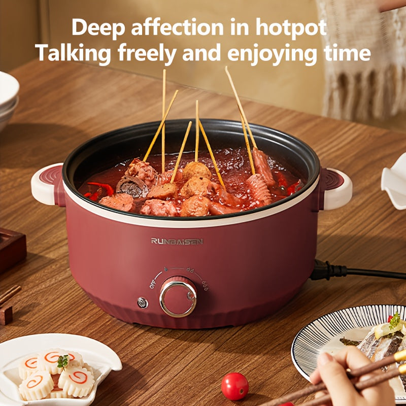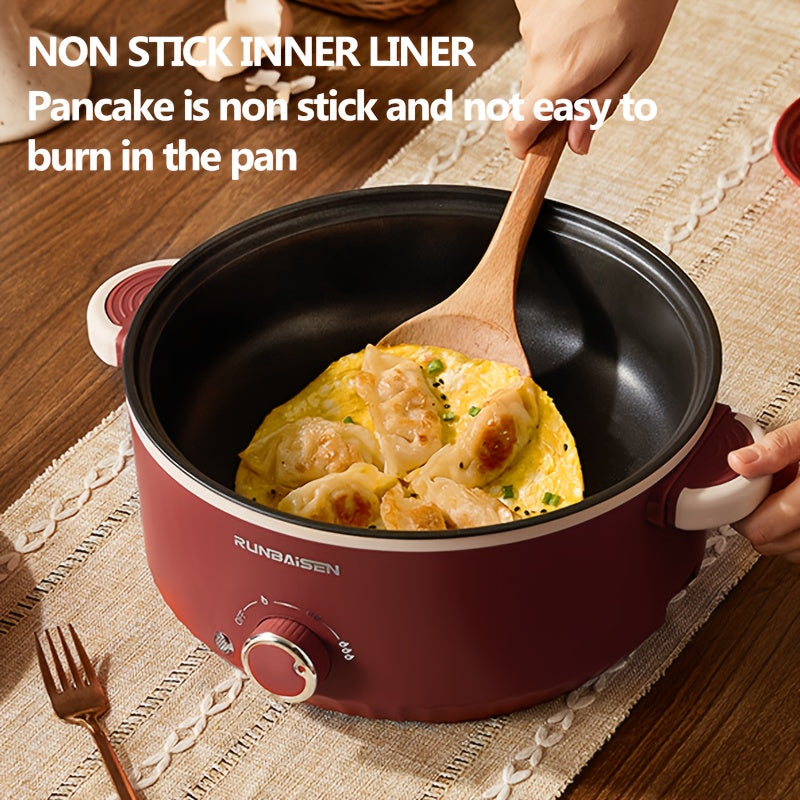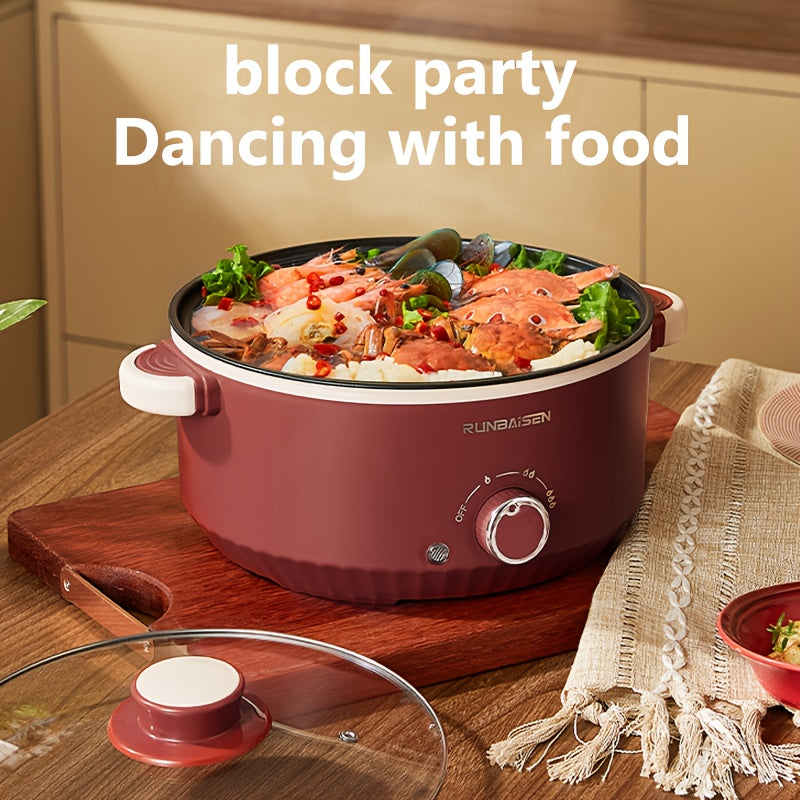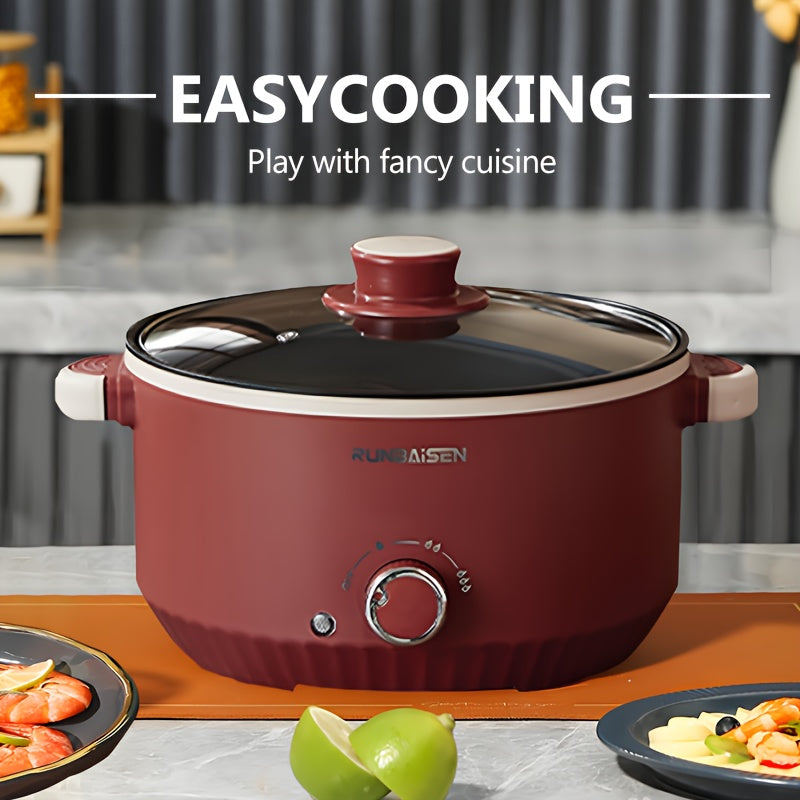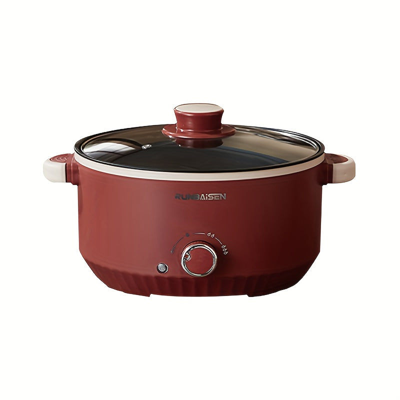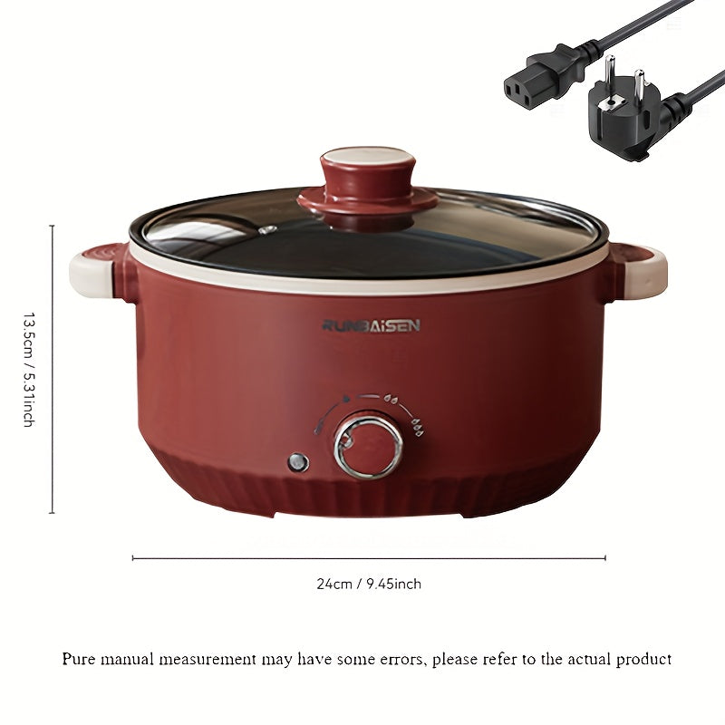 Однослойный красный электрический кастрюля для 1-2 человек, идеально подходит для домашних кухонь, общежитий и автодомов. Европейская стандартная вилка, батареи не входят в комплект.
