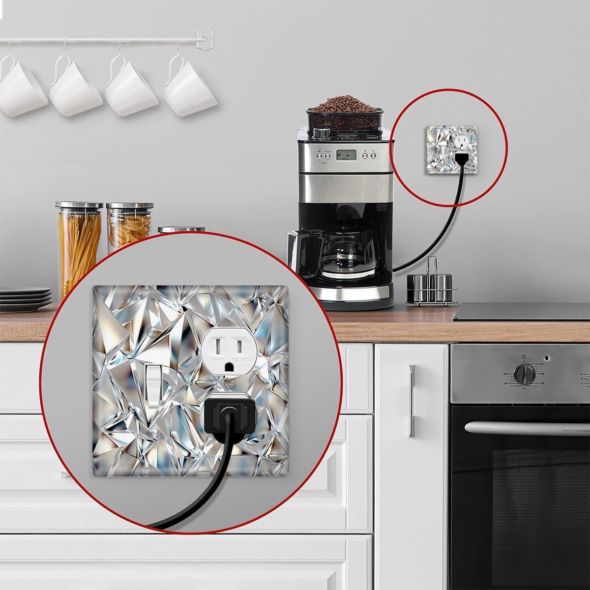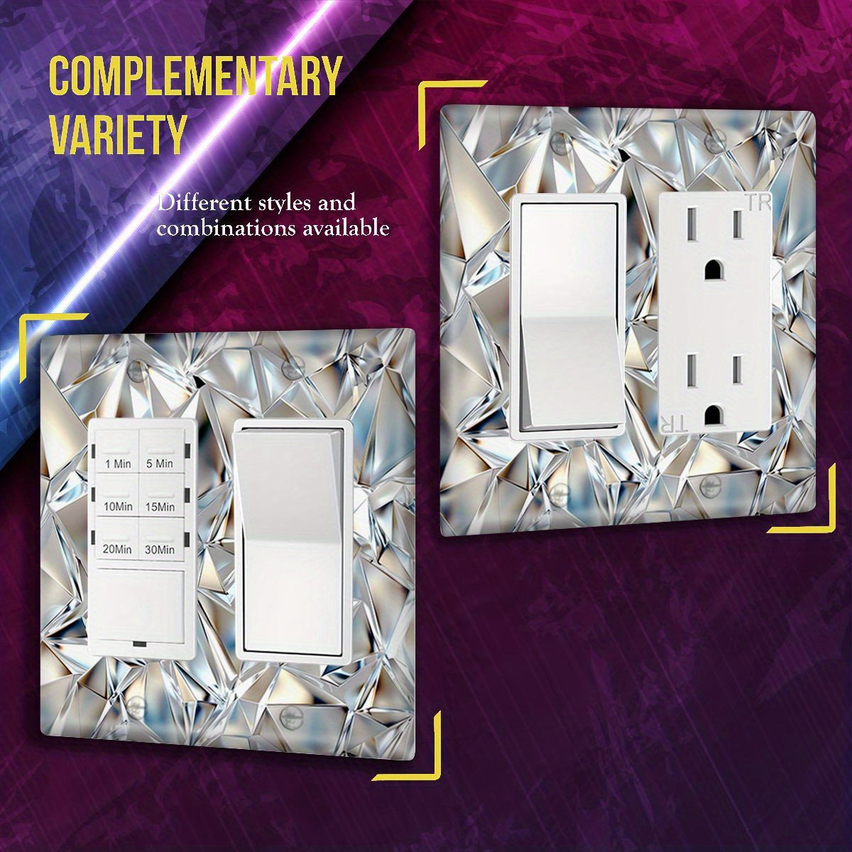 Одно- или двойное гнездо алмазной световой панели для кухни, ванной, спальни, гостиной — без необходимости в проводке.