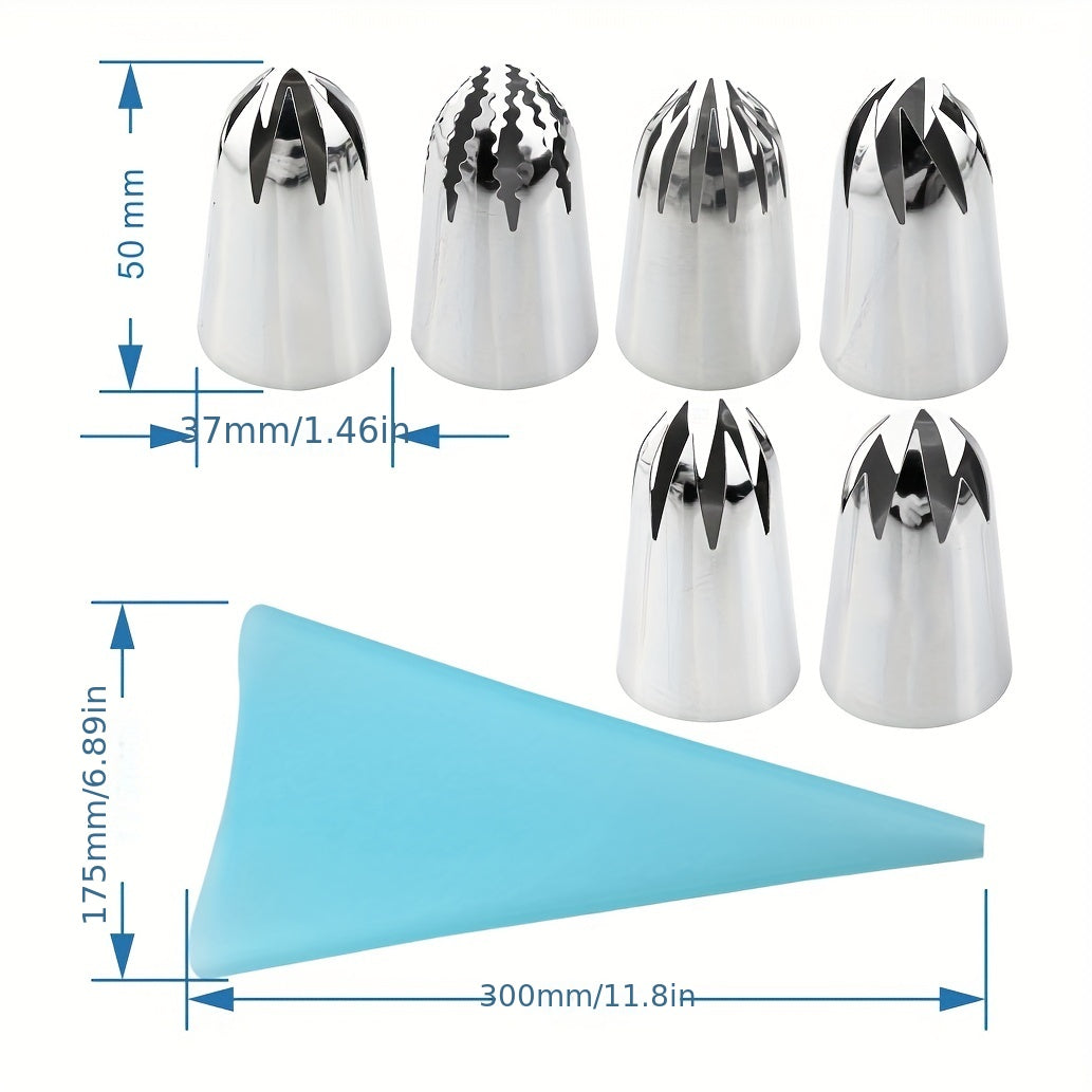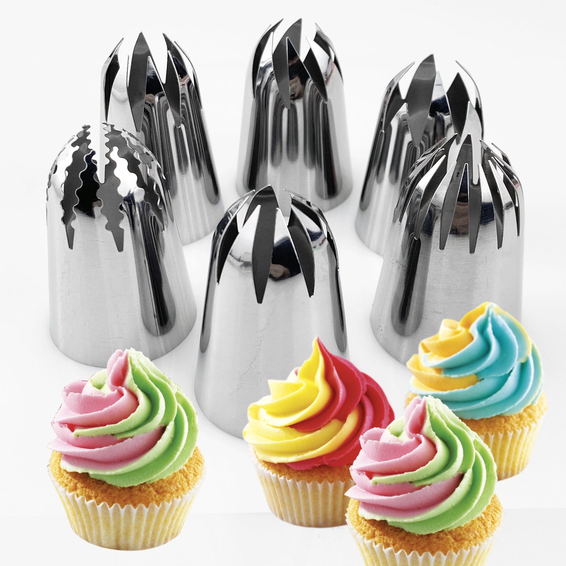 Шесть штук больших насадок для отбивки (3,68 см) из нержавеющей стали для украшения тортов, кексов, печенья и пирожных. Включает бесплатный кондитерский мешок. Идеально подходит для выпечки и удобных кухонных принадлежностей.