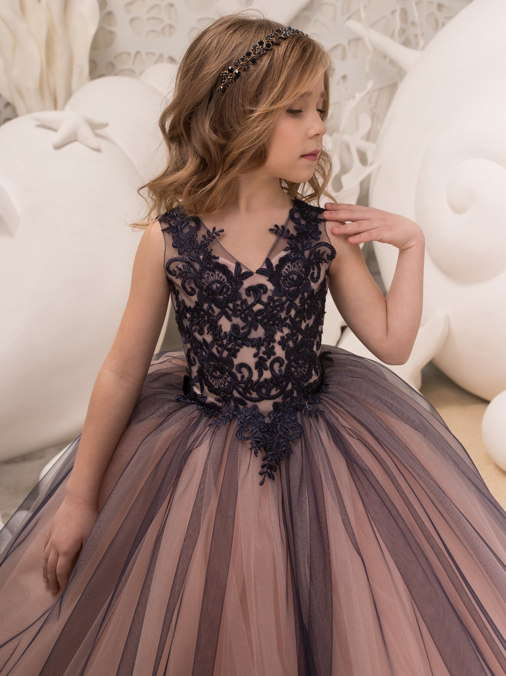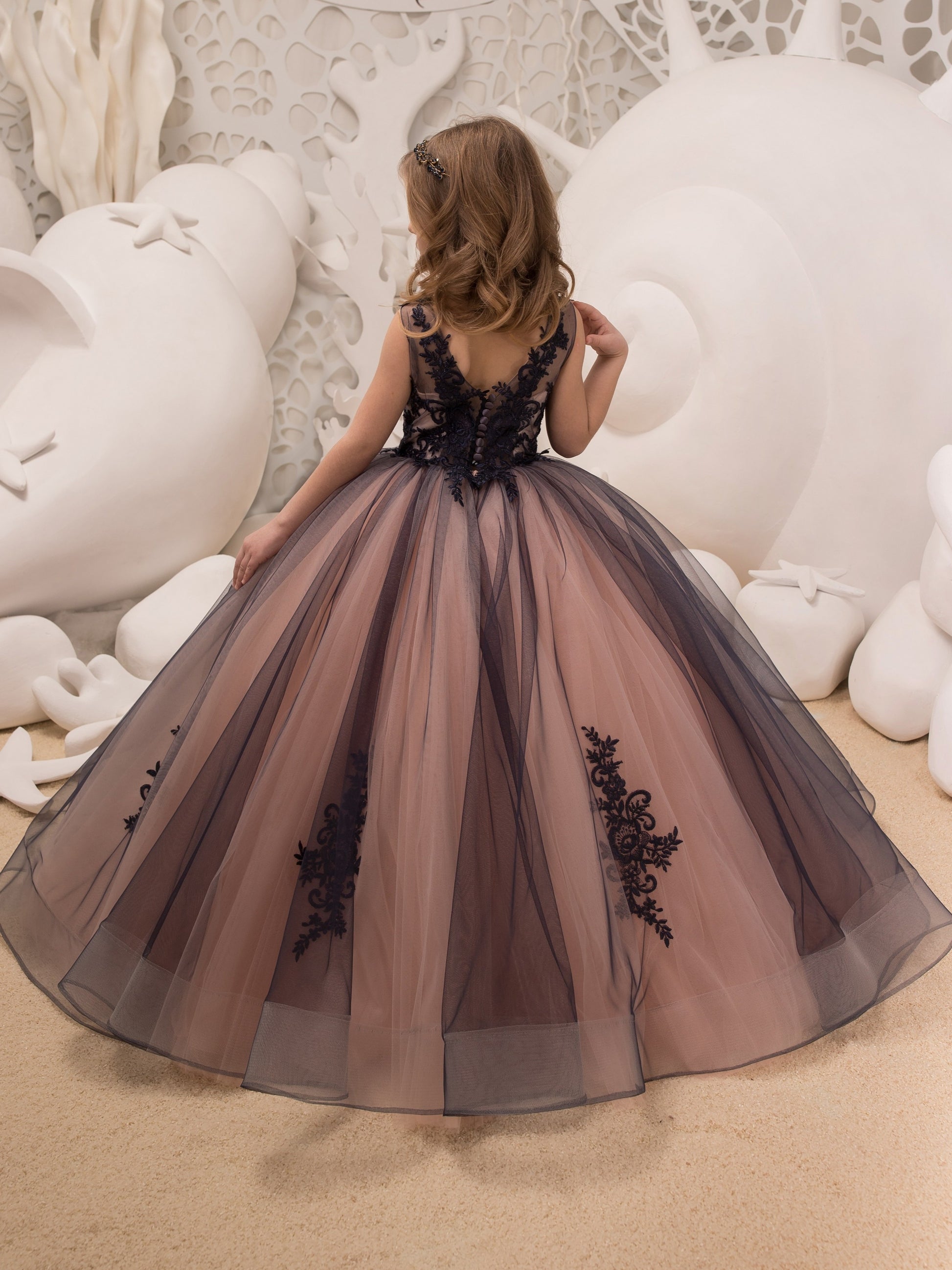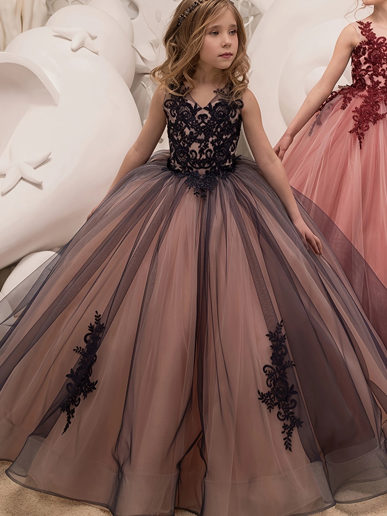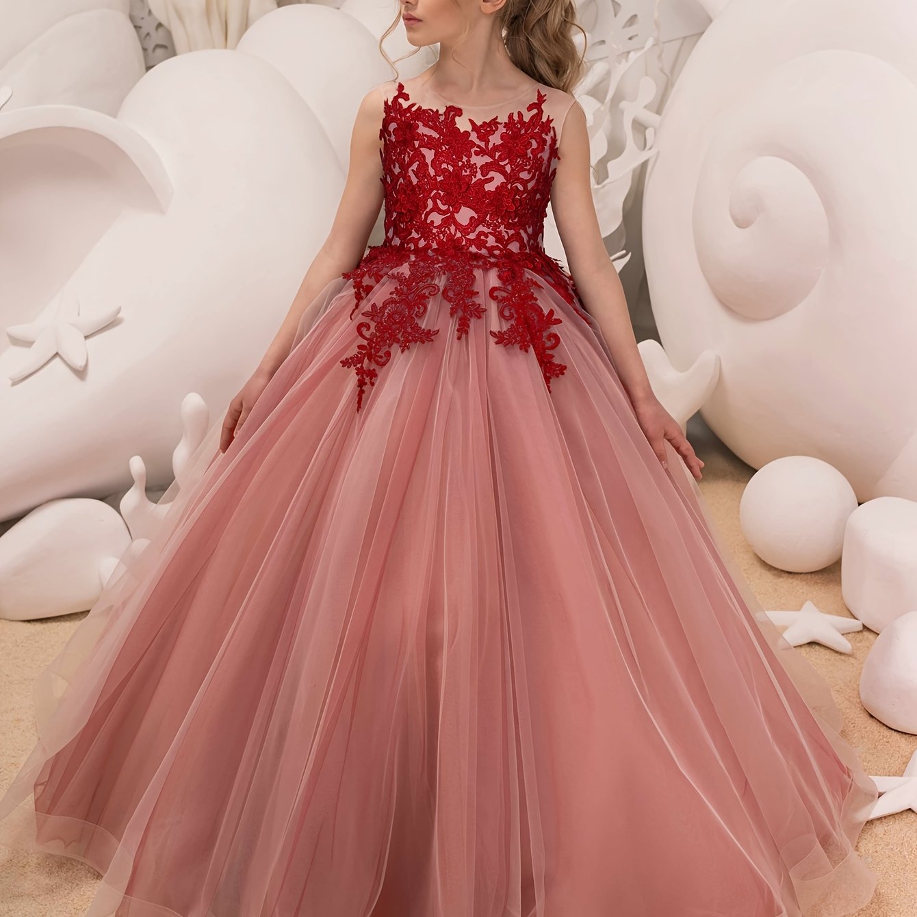 Девочки безрукавное платье с цветочной аппликацией для выступлений и концертов