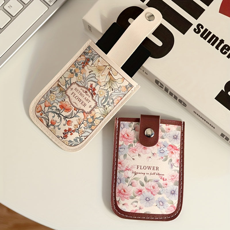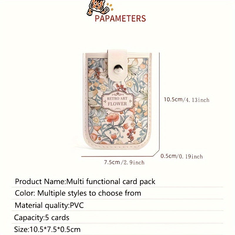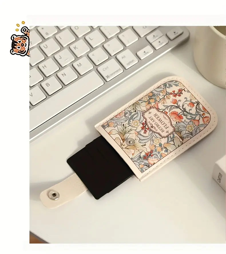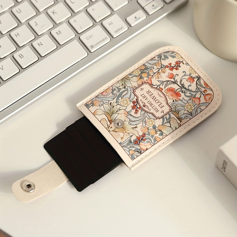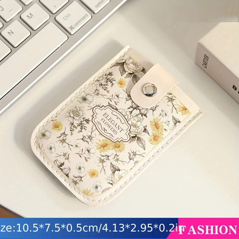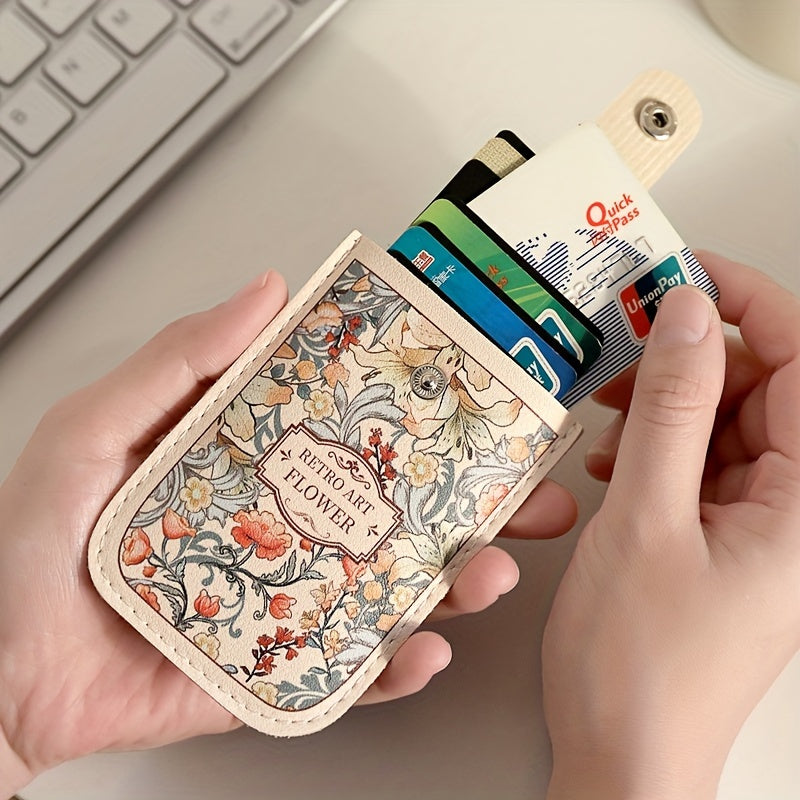 Тонкий синтетический кожаный футляр для карт с цветочным узором, несколькими карманами для карт, держателем для удостоверения личности и кнопкой-застежкой.