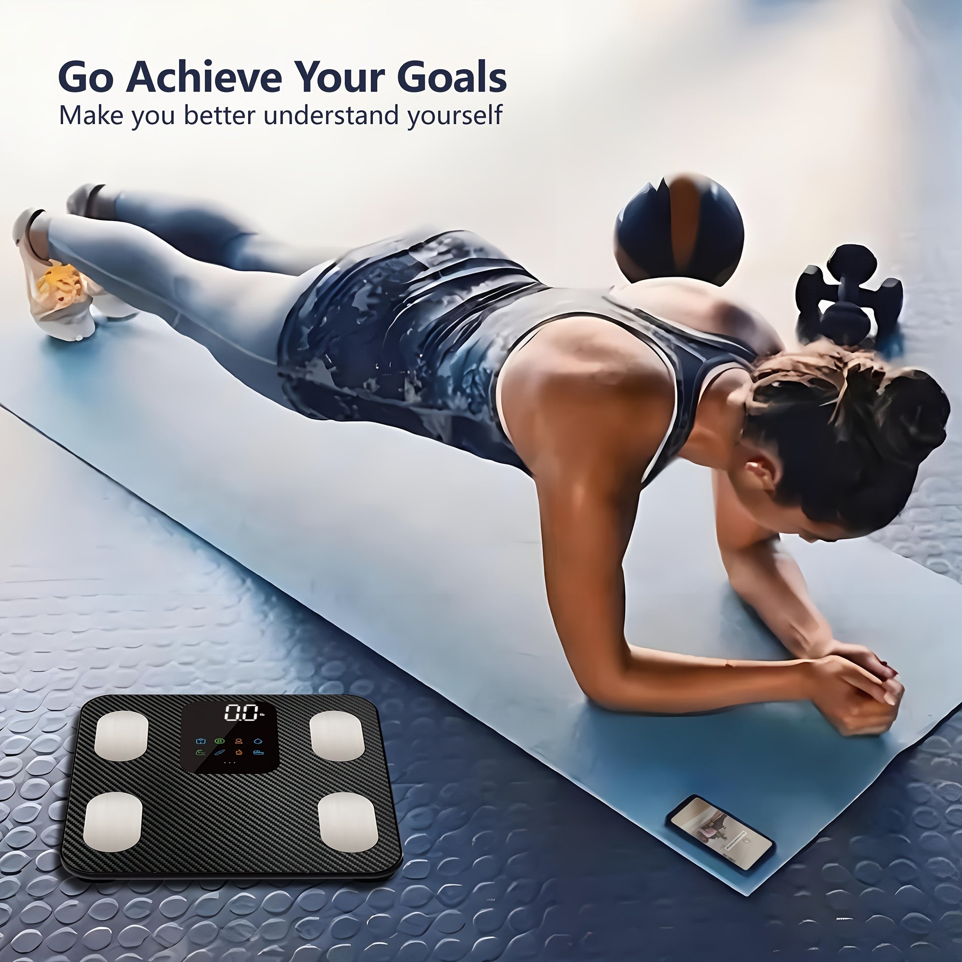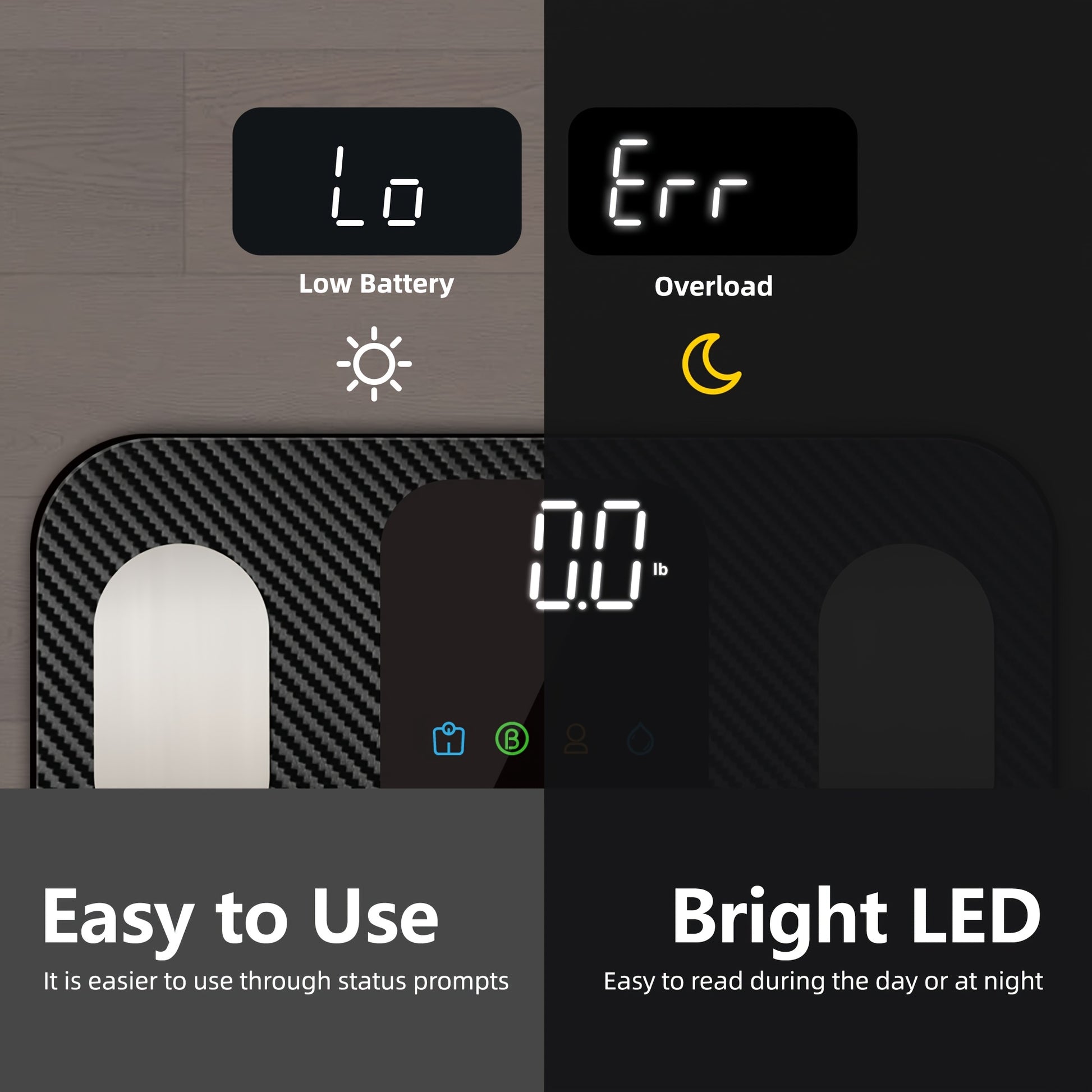 Цифровые напольные весы для тела с грузоподъемностью 181,44 кг, отслеживание ИМТ и гидратации, дизайн из углеродного волокна