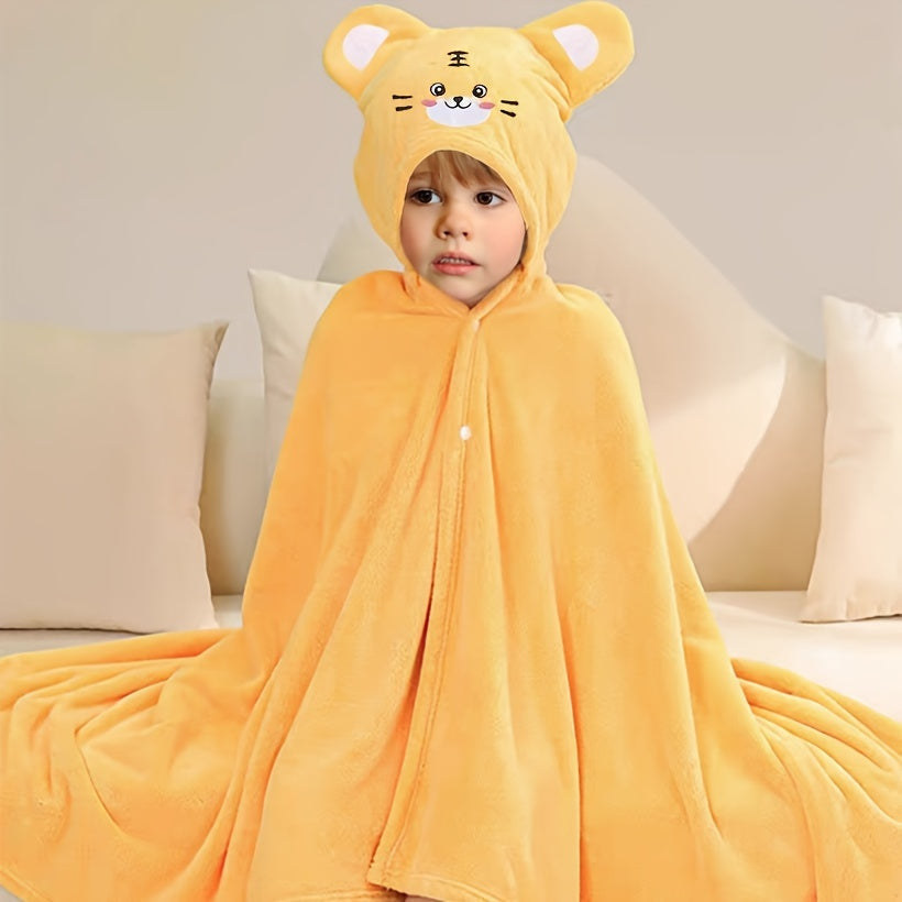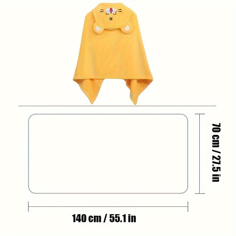 Мягкое и уютное полотенце для ванной с капюшоном в виде тигра с милым дизайном для детей. Идеально подходит для малышей, обладает высокой впитываемостью и теплотой, без запаха и машинной стирки. Доступно в желтом цвете, размеры 69,85x139,95 см.