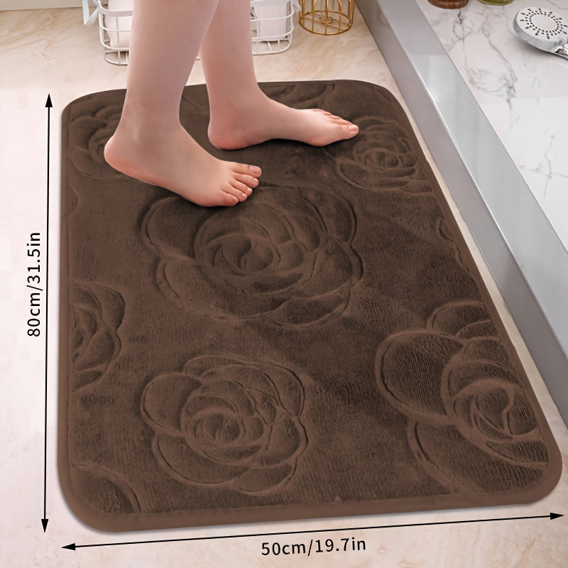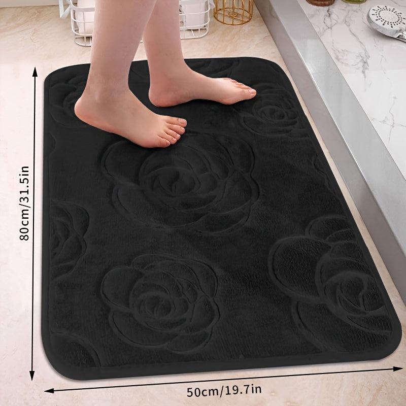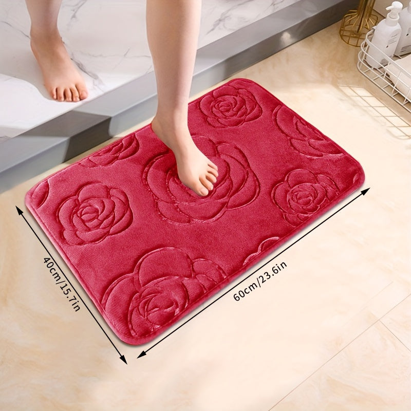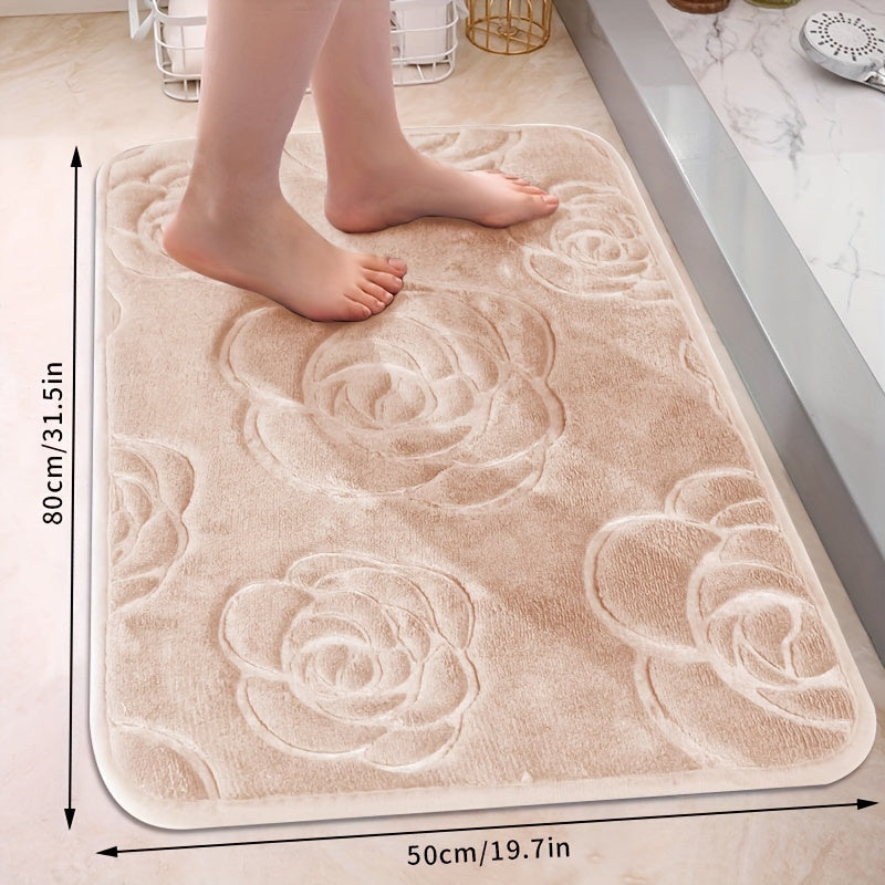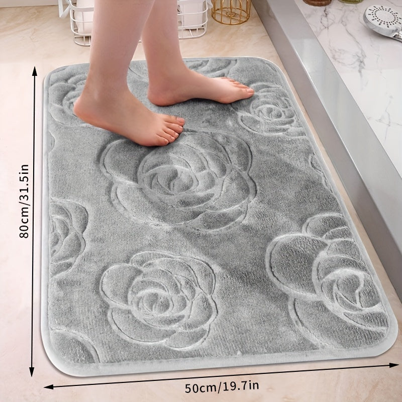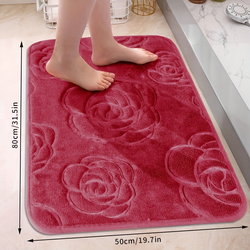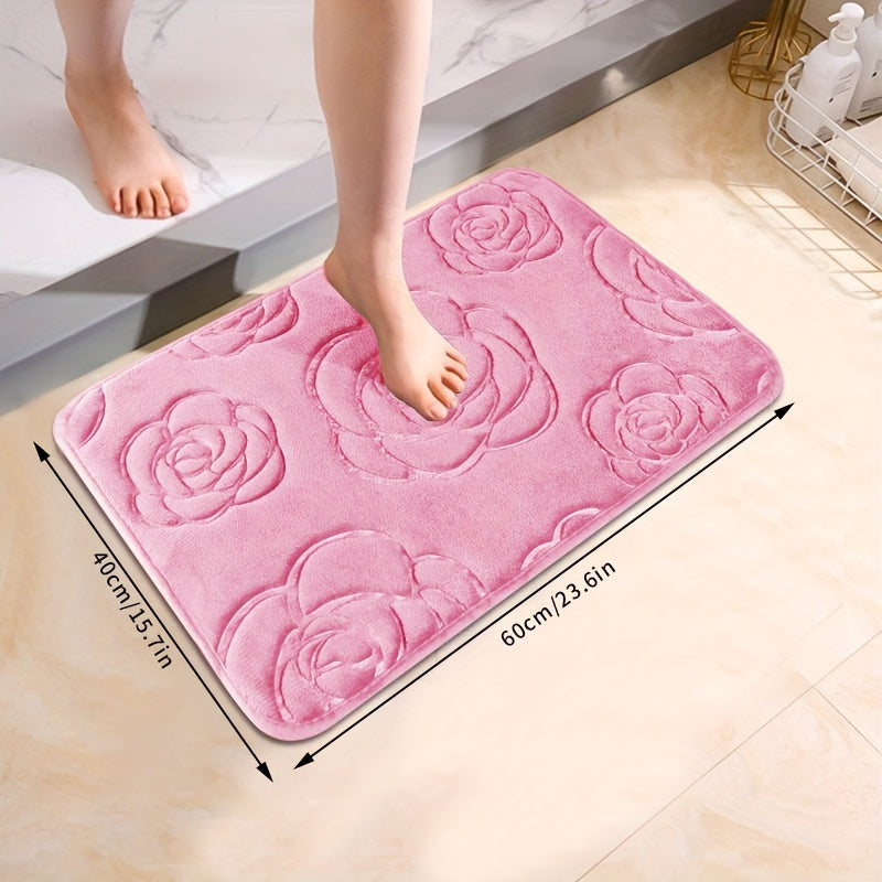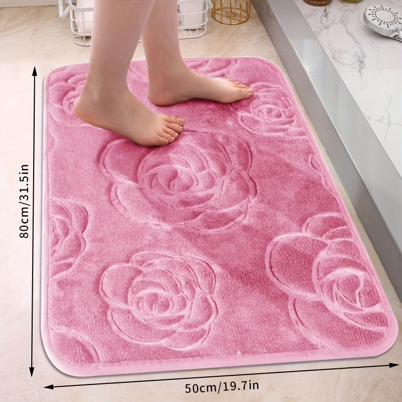 Роскошный коврик для ванной с рельефным розовым узором, нескользящий, мягкий из полиэстера, впитывающий