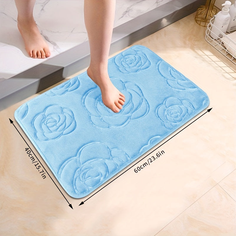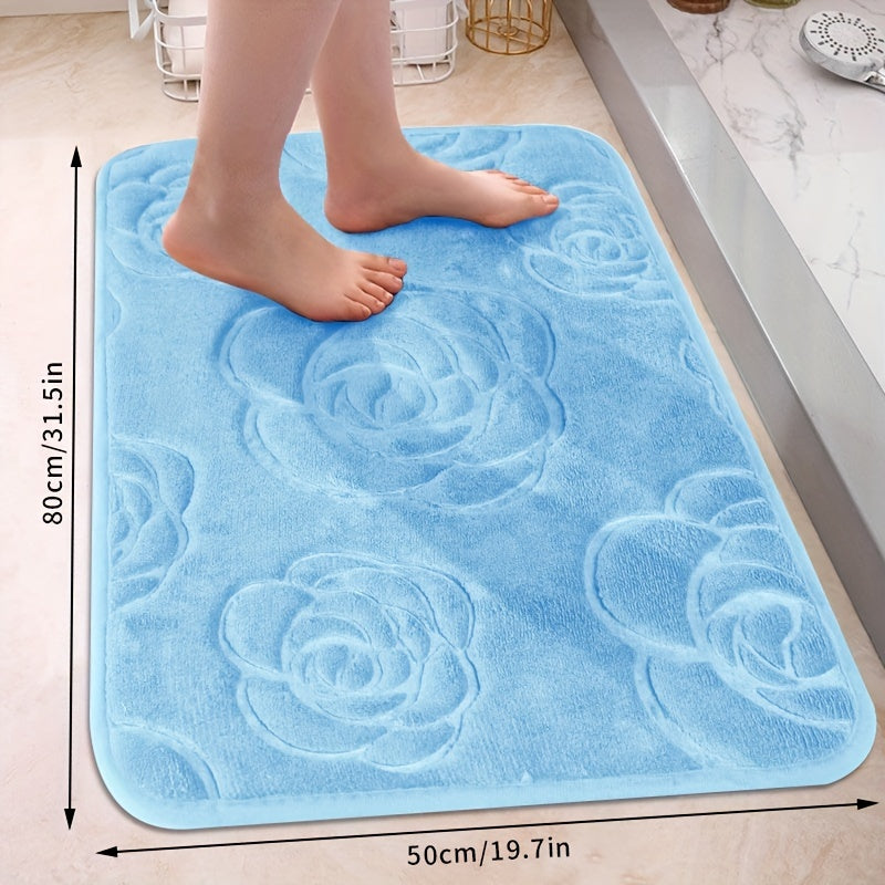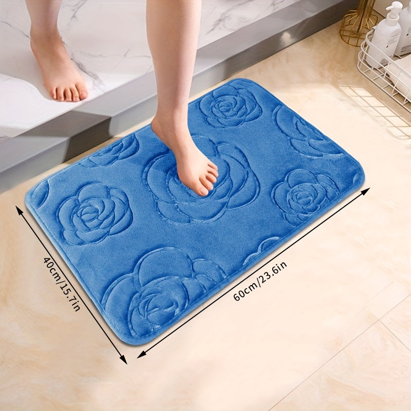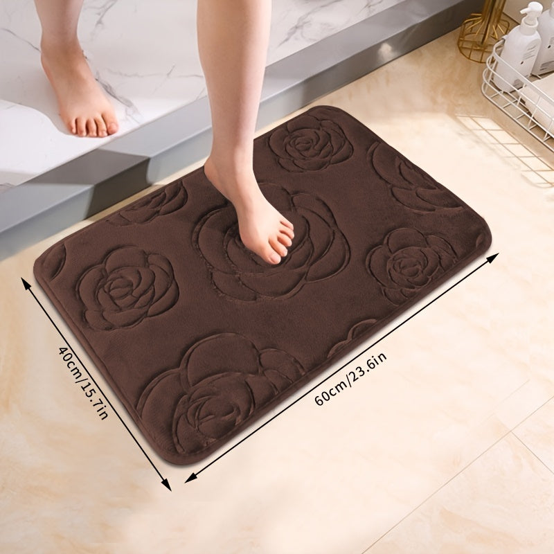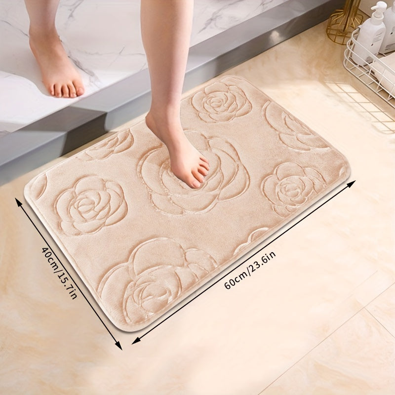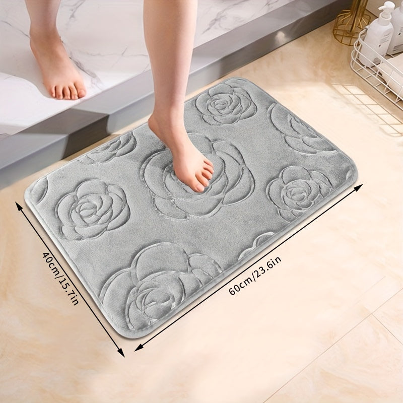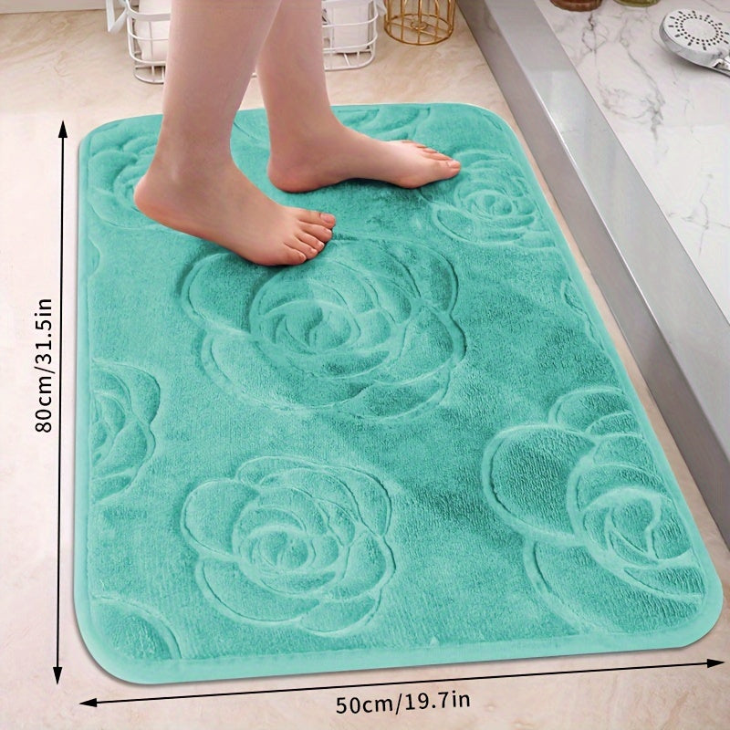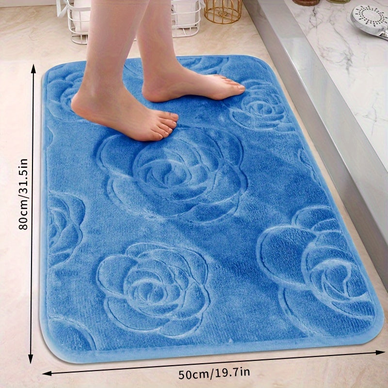 Роскошный коврик для ванной с рельефным розовым узором, нескользящий, мягкий из полиэстера, впитывающий