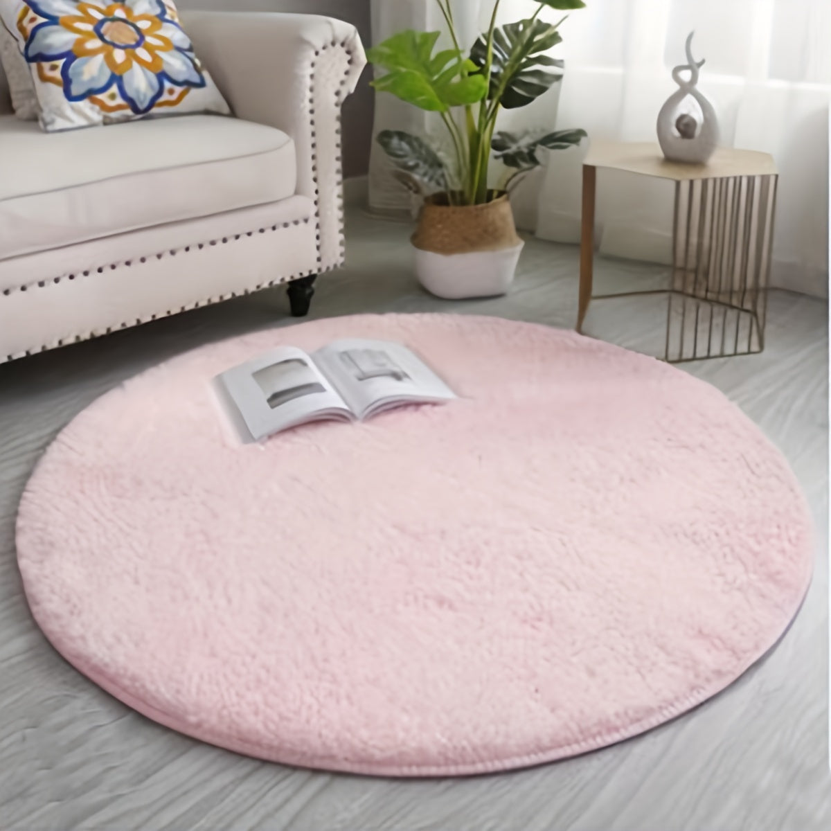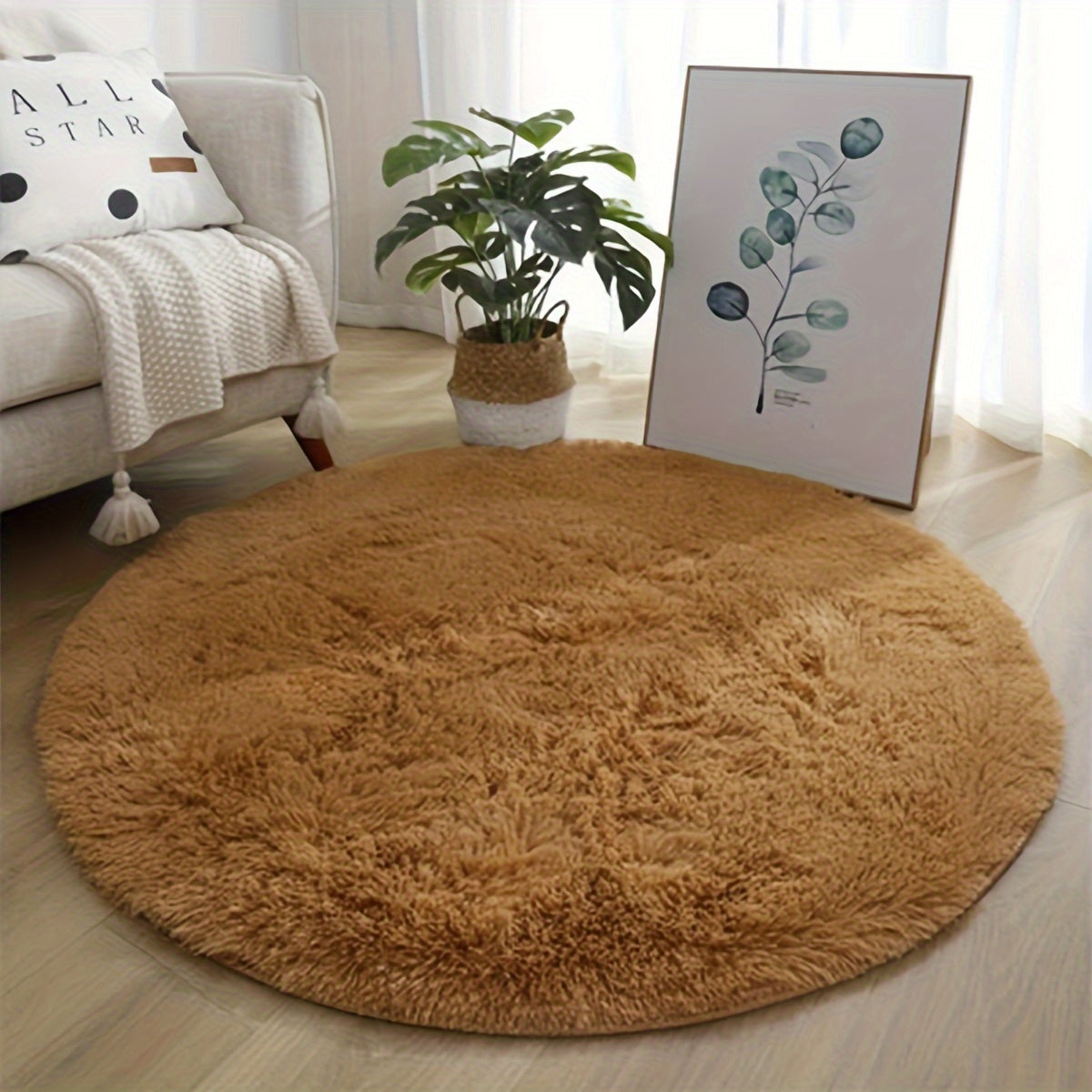 Мягкий и плюшевый коврик, создающий ощущение роскоши — нескользящий, легко чистящийся и устойчивый к выцветанию круглый коврик из полиэстера для гостиной, спальни и домашнего декора.