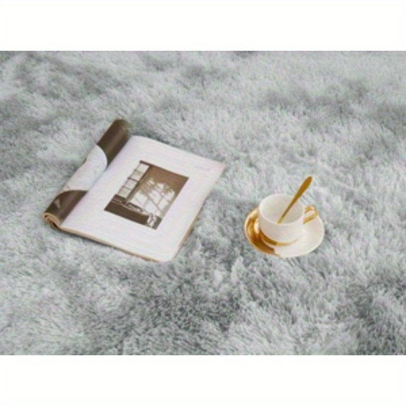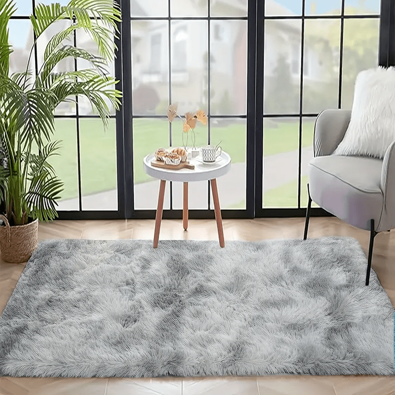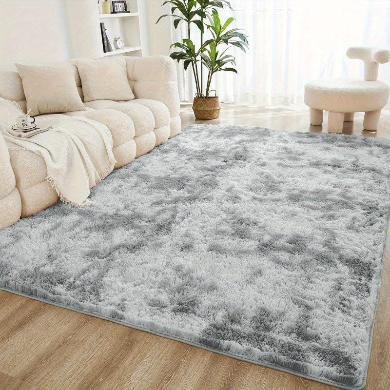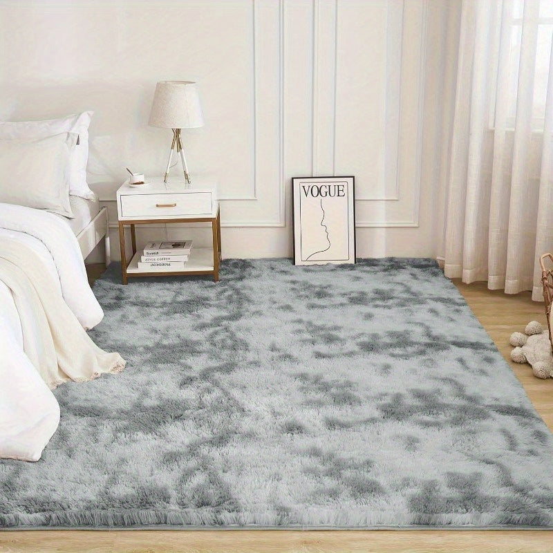 Мягкий светло-серый ворсистый ковер с узором тай-дай идеально подходит для гостиной и спальни. Нескользящий, устойчивый к линьке искусственный мех из плюшевого полиэстера для простого ухода и идеального декора дома.