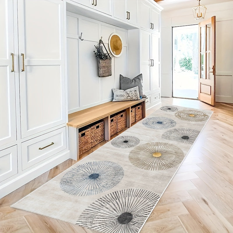 Мягкий утолщённый кухонный коврик, обладающий противоскользящими и маслостойкими свойствами. Этот водонепроницаемый коврик также устойчив к грязи, что облегчает его стирку в стиральной машине. Идеально подходит для входа, кухни, гостиной, прачечной или