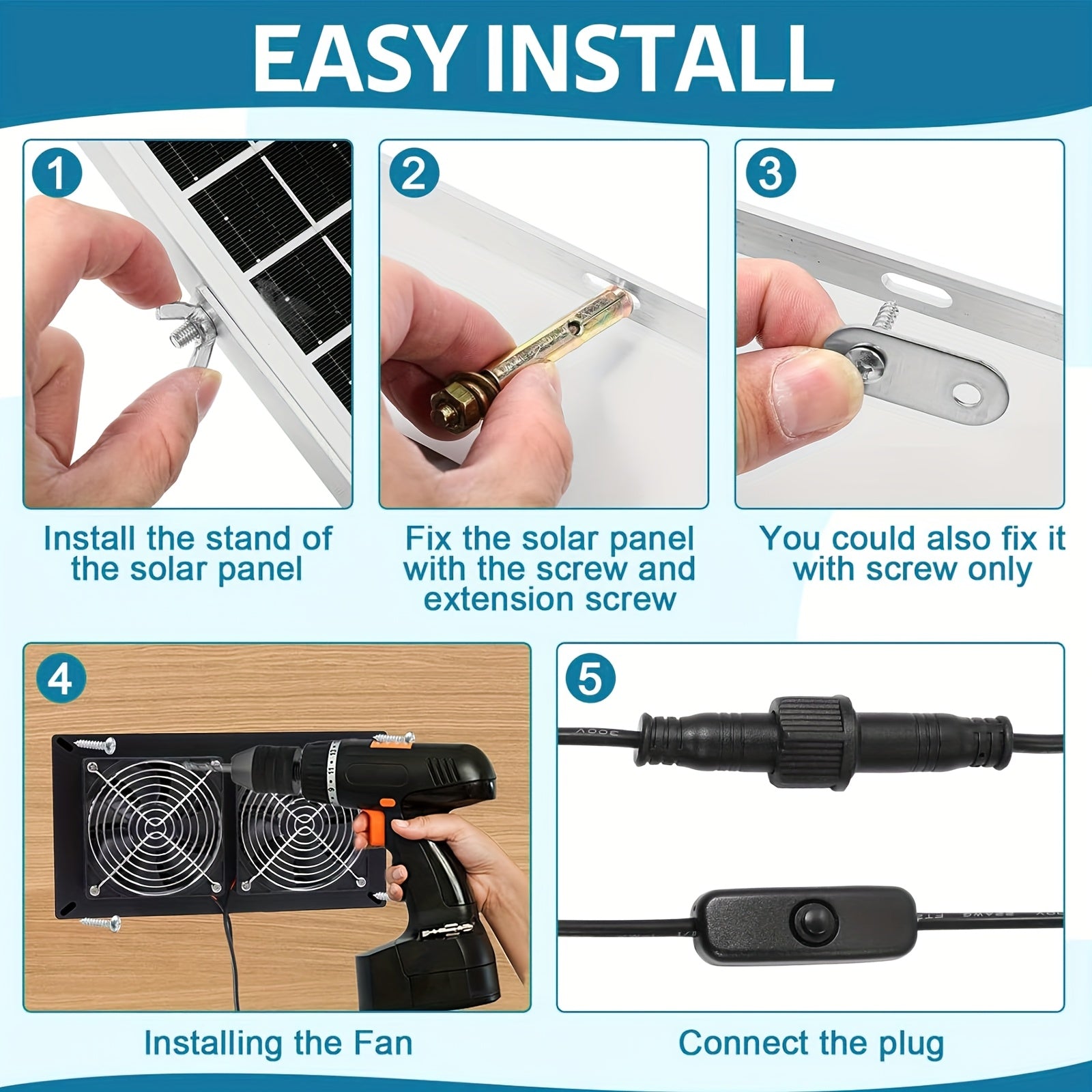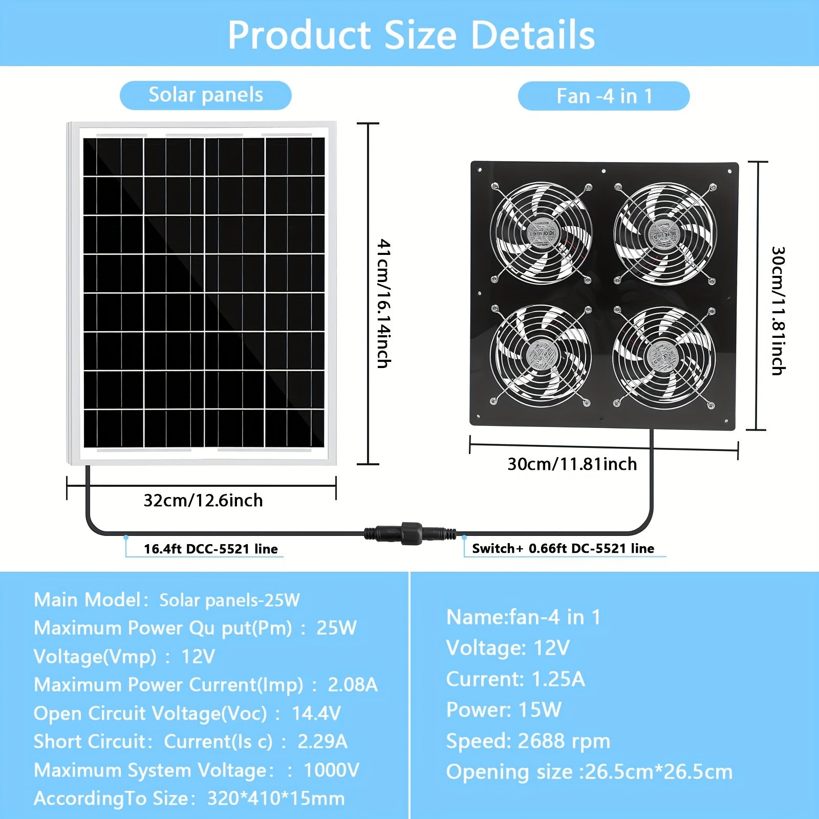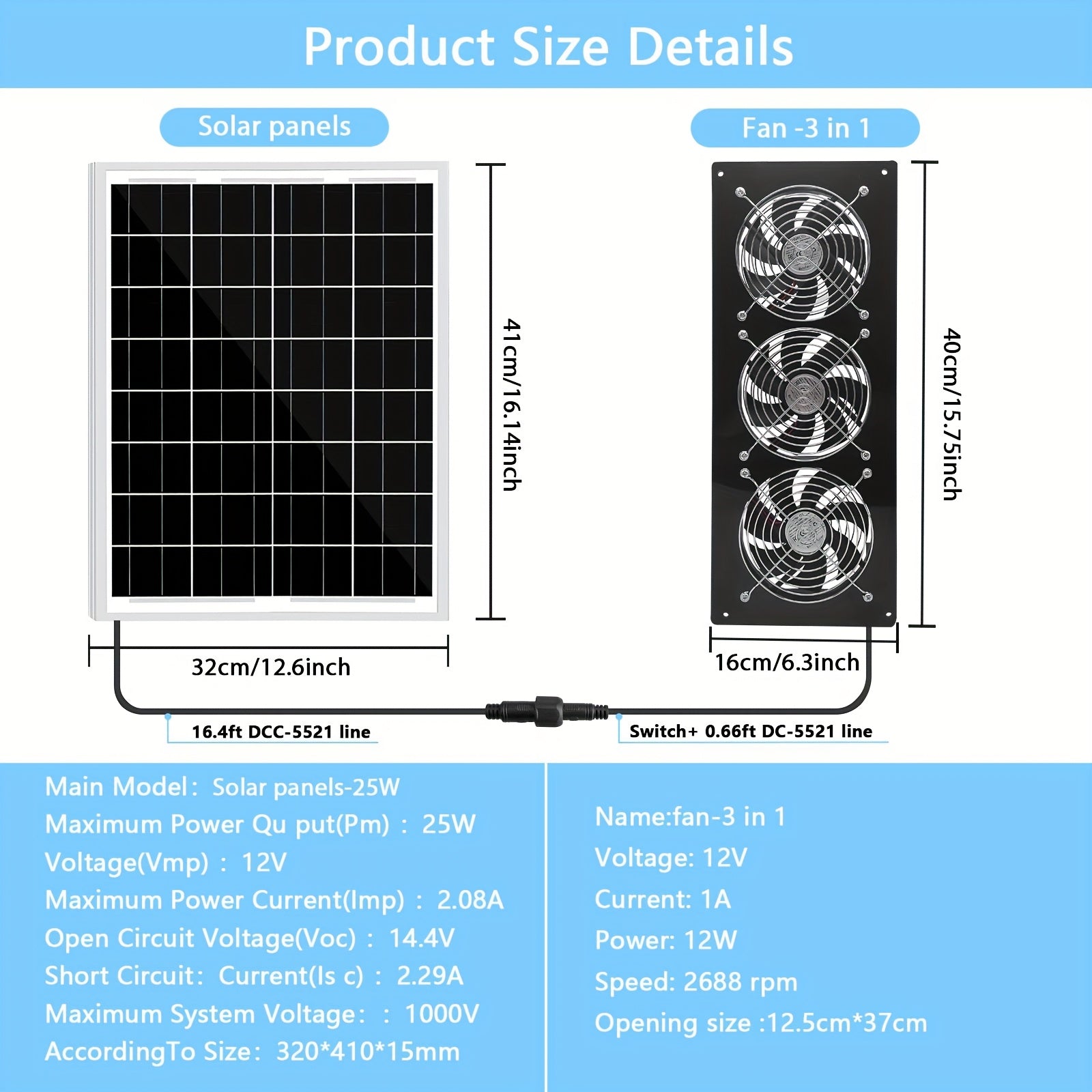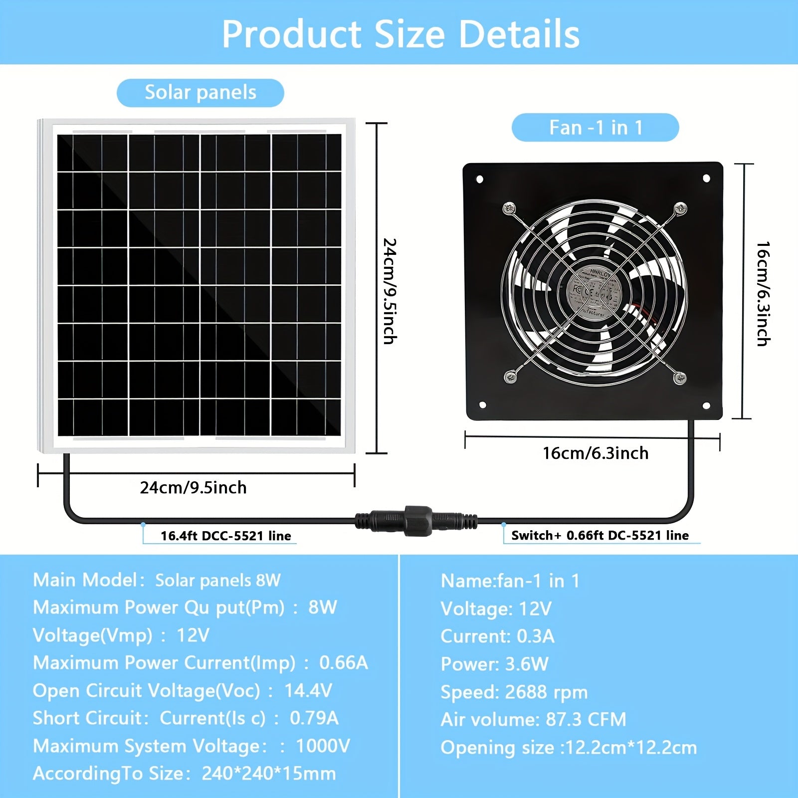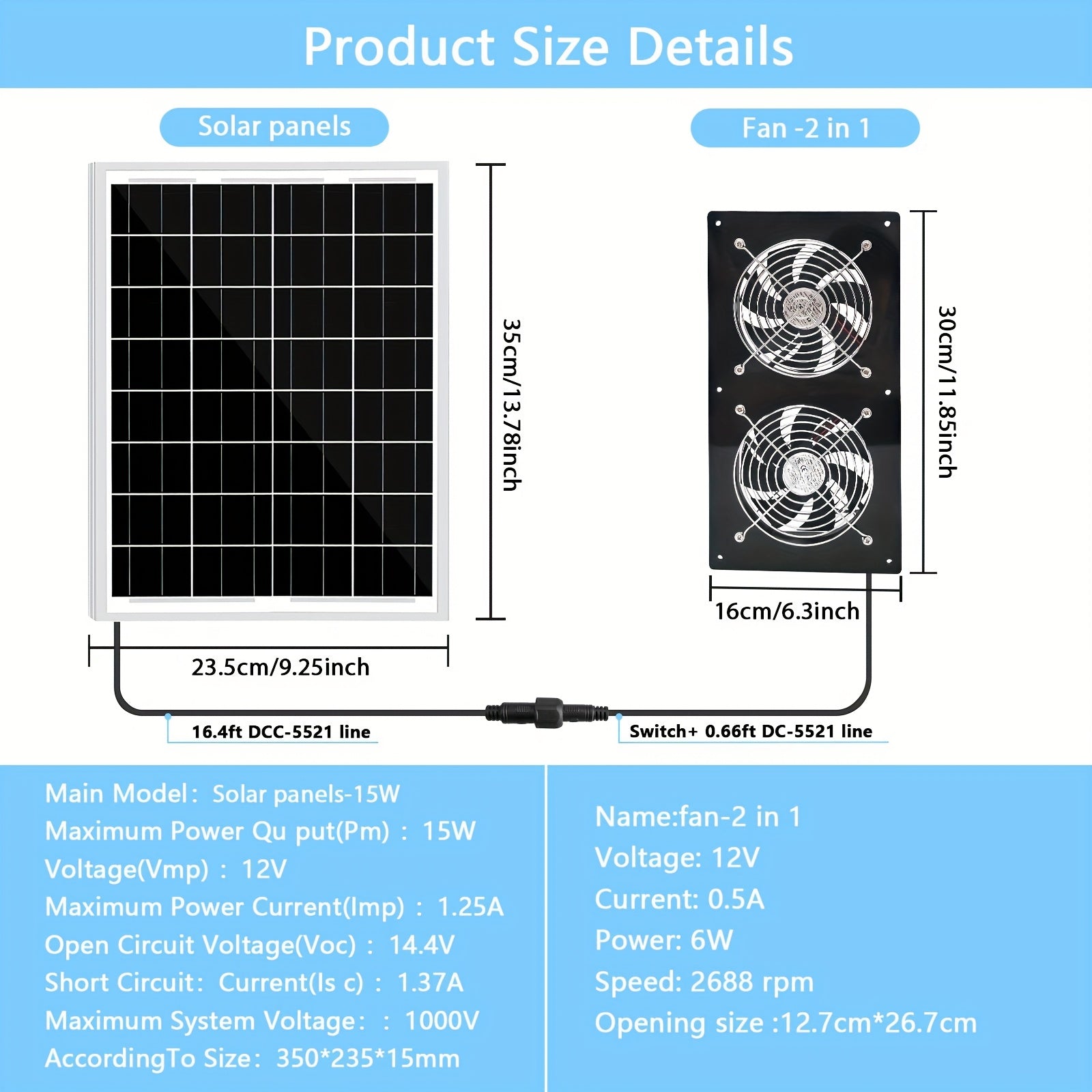 Набор солнечных электровентиляторов для вытяжки, солнечная панель 15 Вт, два высокоскоростных вентилятора для теплиц и сараев