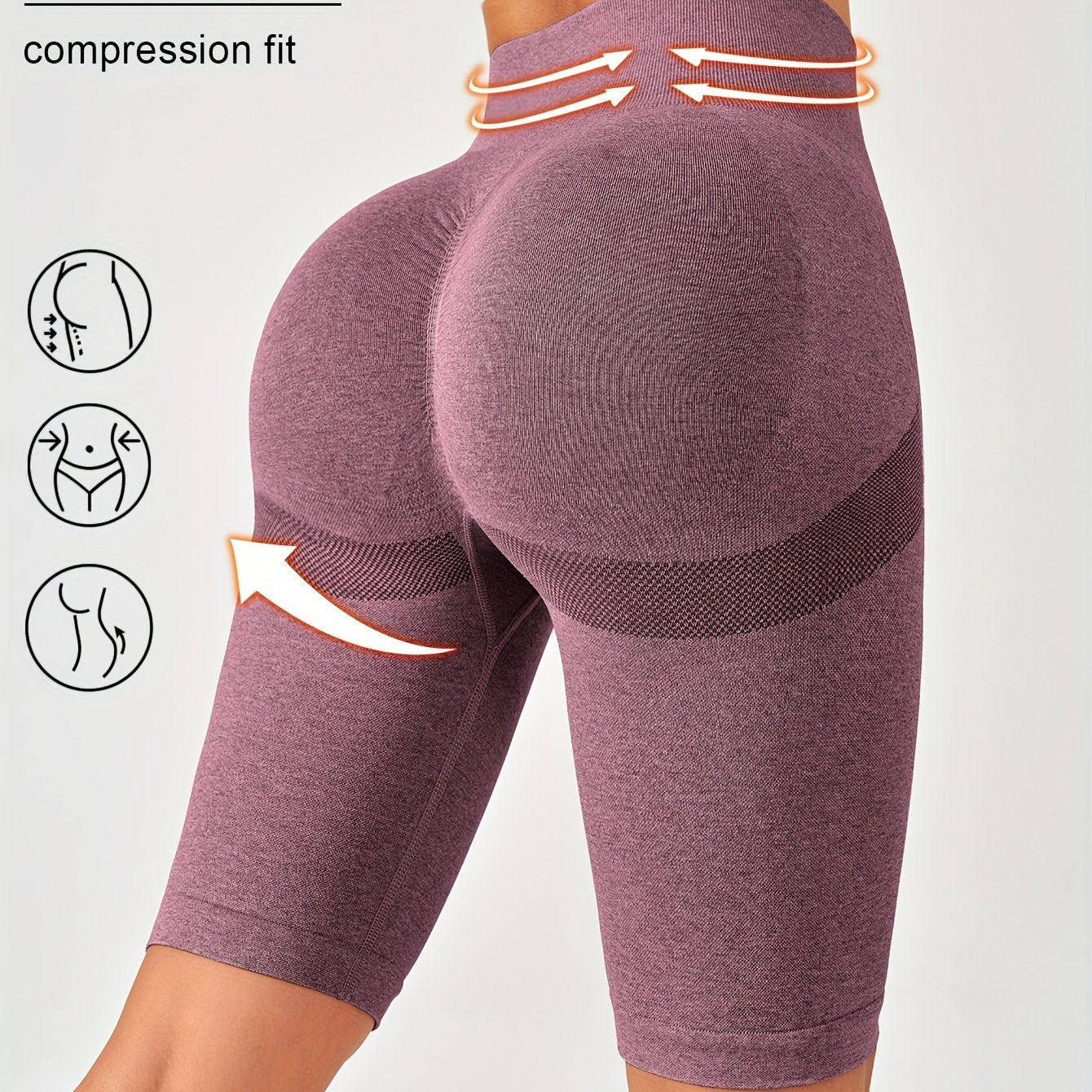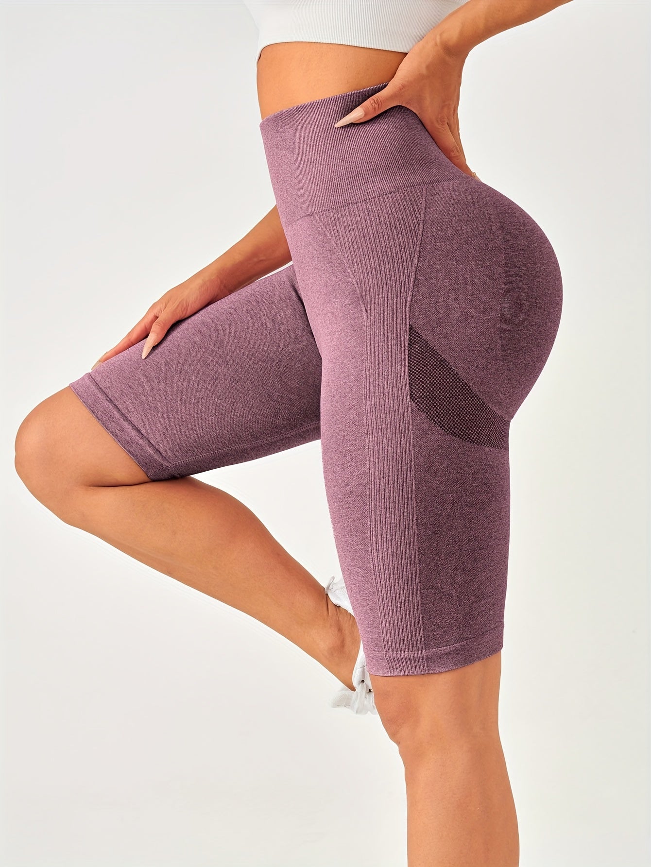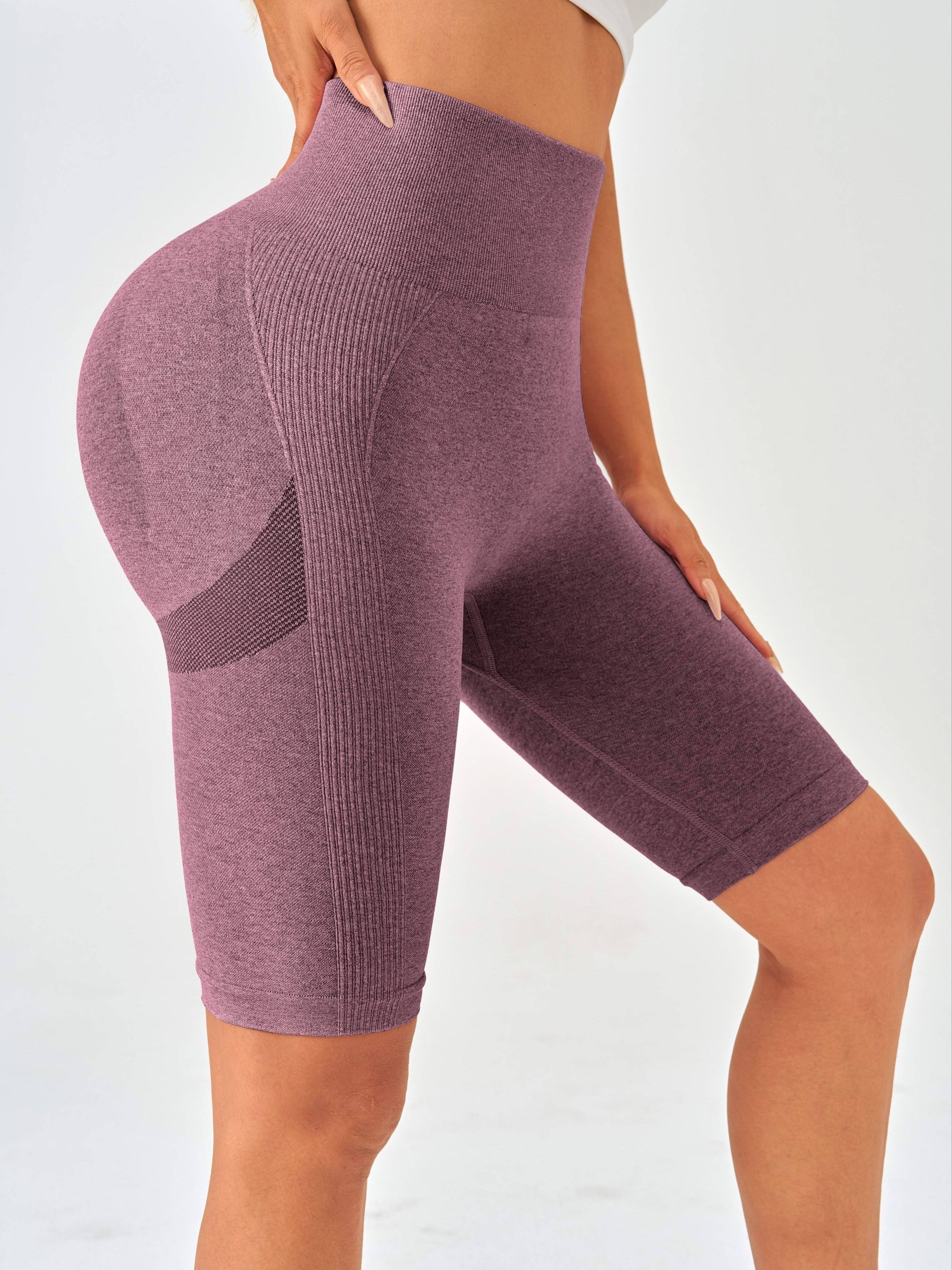Однотонные вязаные йога-штаны для женщин с высоким поясом, подъемом бедер и облегающим животом.