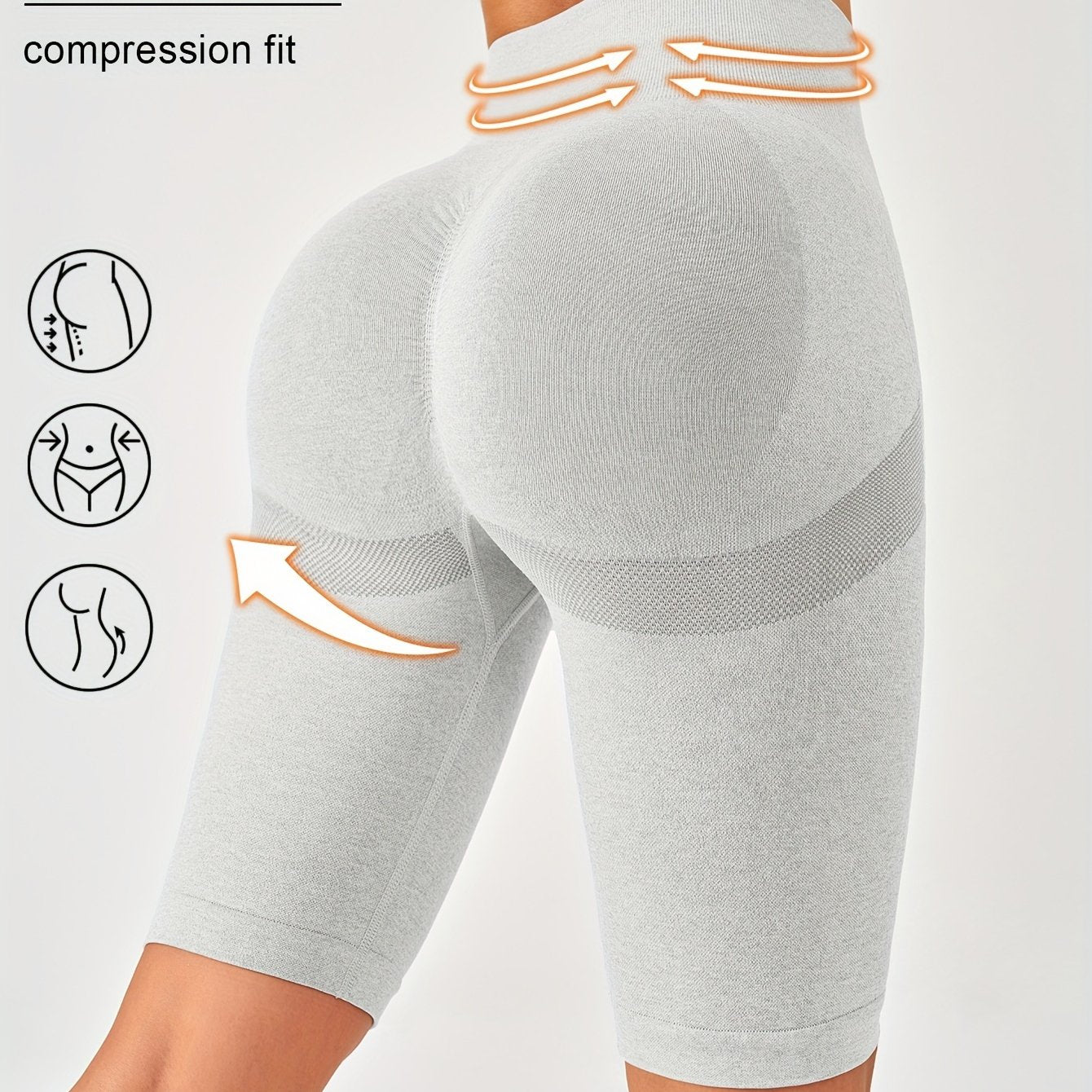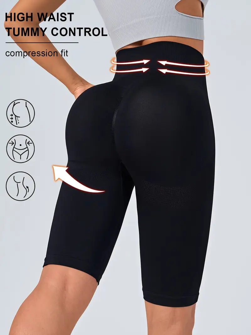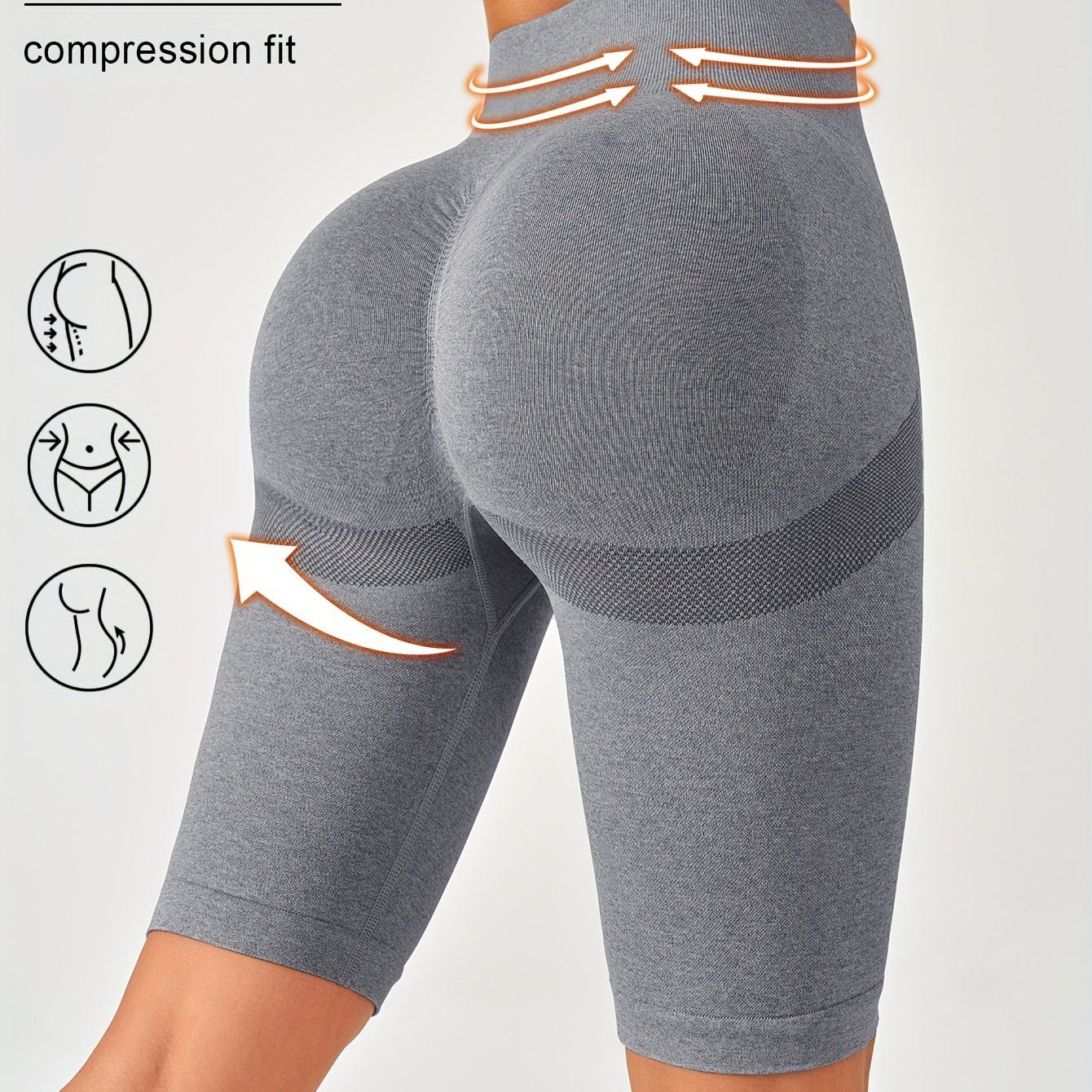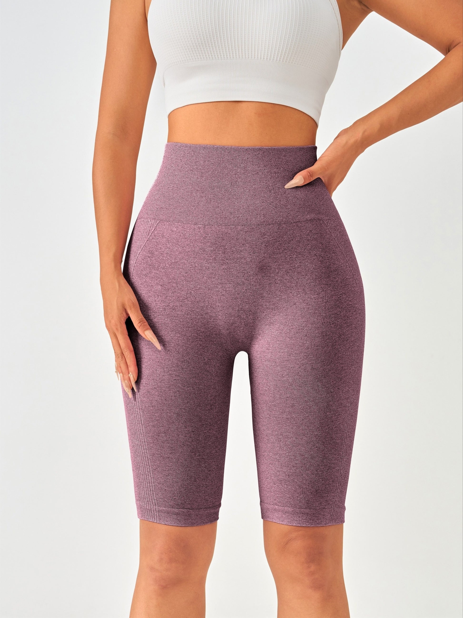 Однотонные вязаные йога-штаны для женщин с высоким поясом, подъемом бедер и облегающим животом.