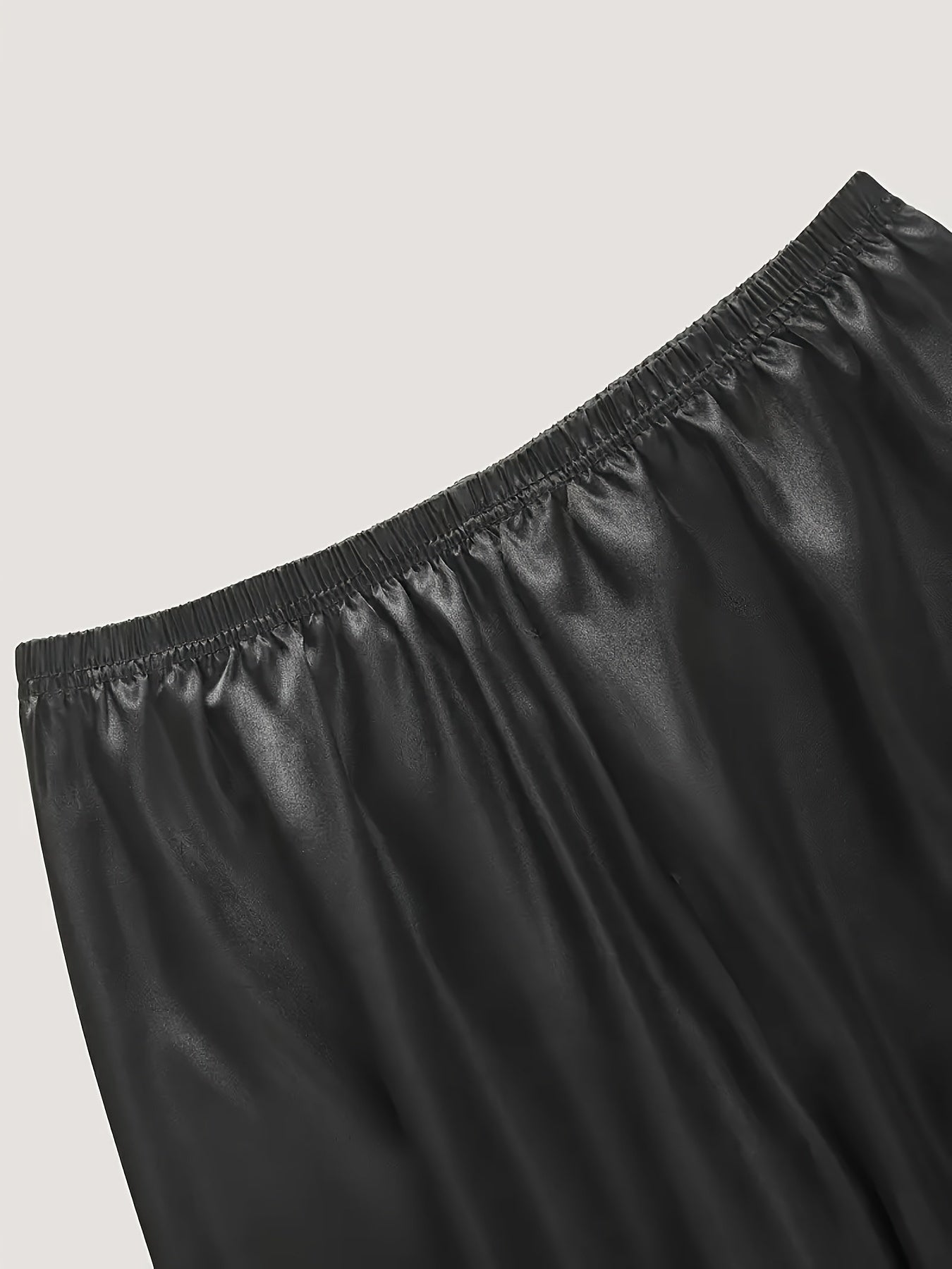 Комплект из сатина с длинным рукавом и пуговицами сверху и эластичными брюками для женской домашней одежды.