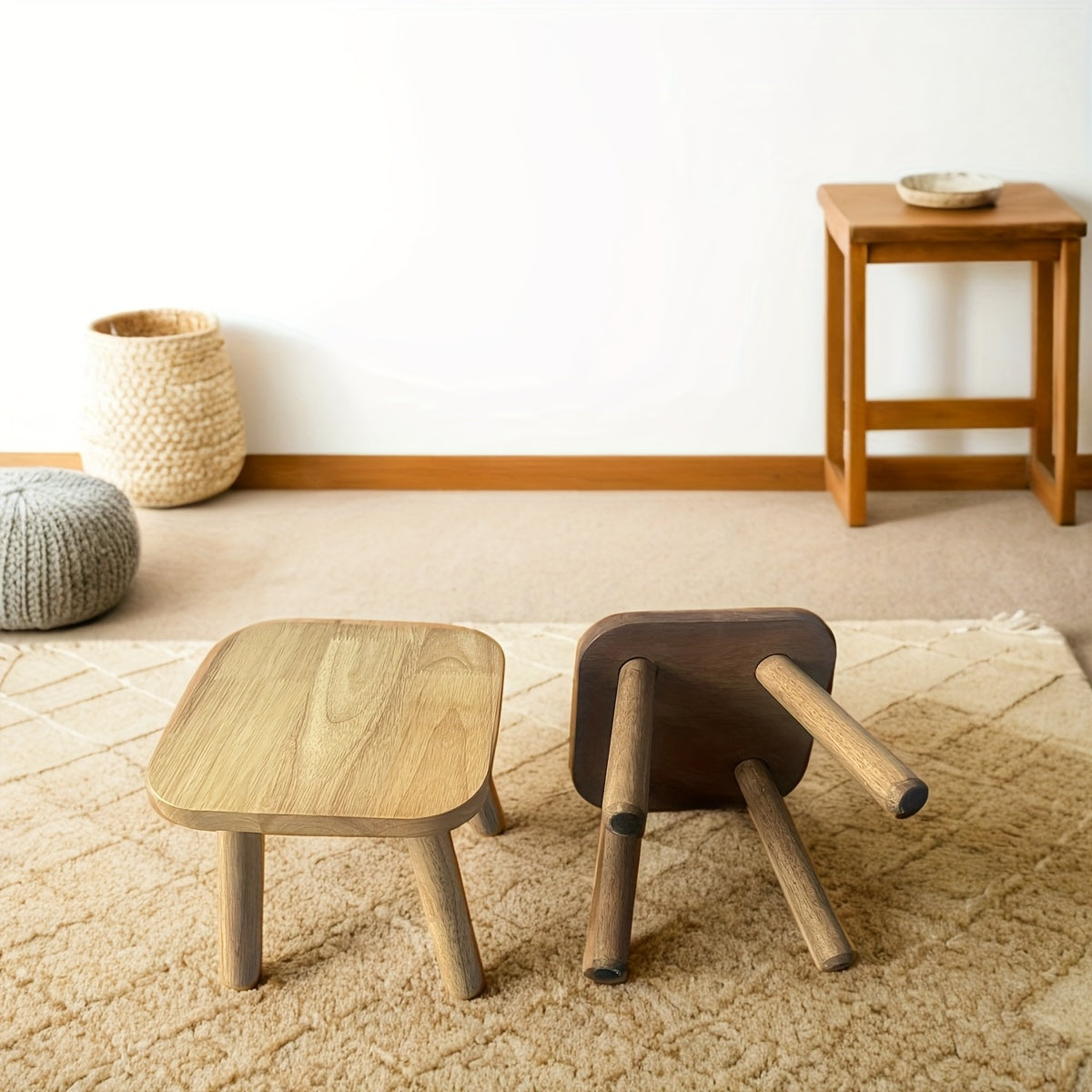 Круглый табурет из массива дерева, идеальный для смены обуви дома или в офисе.