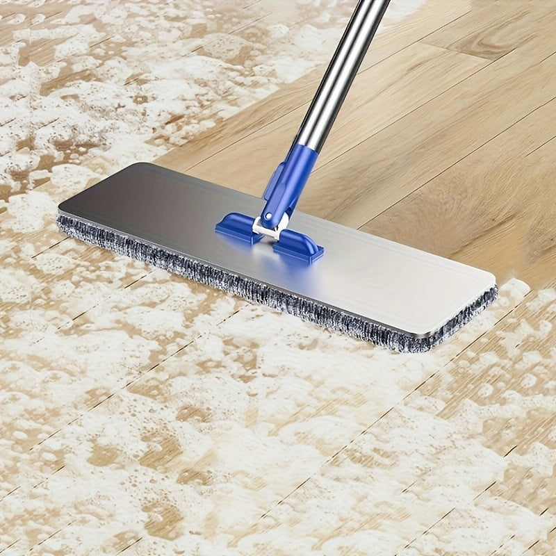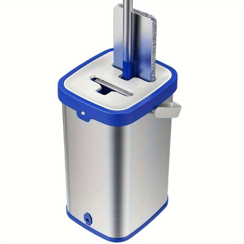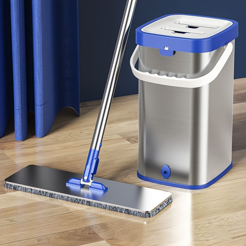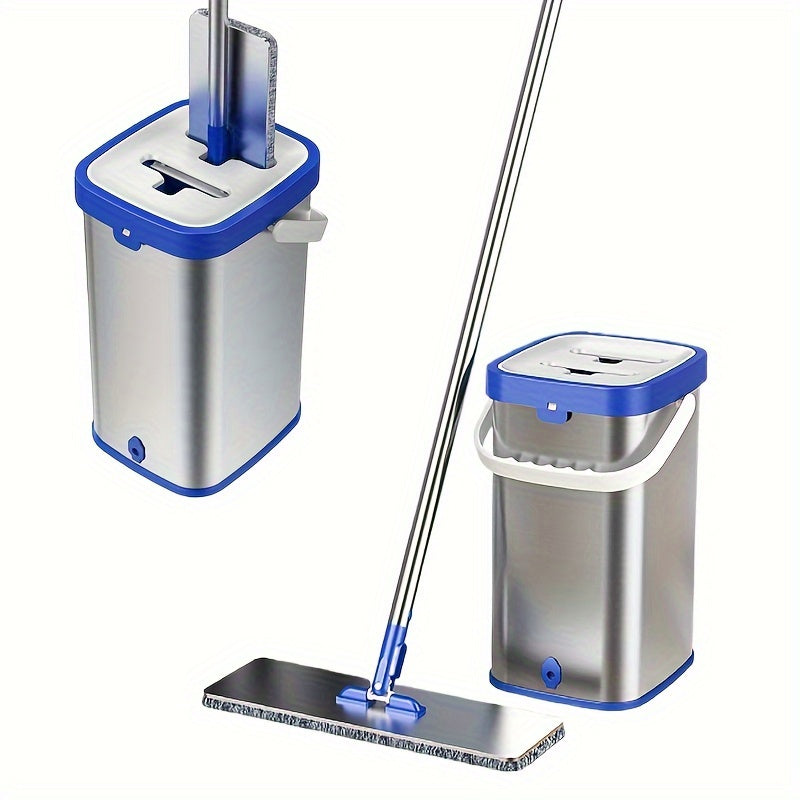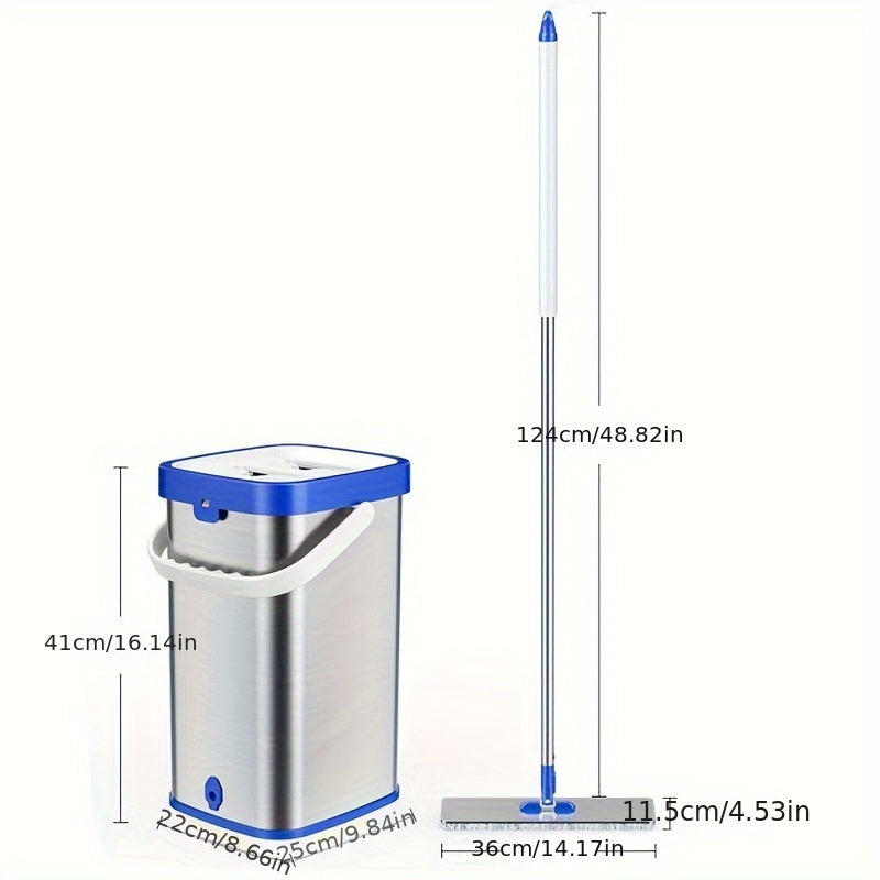 Набор для уборки из нержавеющей стали с ведром - включает в себя швабру с плоской насадкой для мытья без рук, швабру для удаления пыли, влажную и сухую уборку для плитки, мрамора и деревянных полов - полный комплект средств и инструментов для уборки