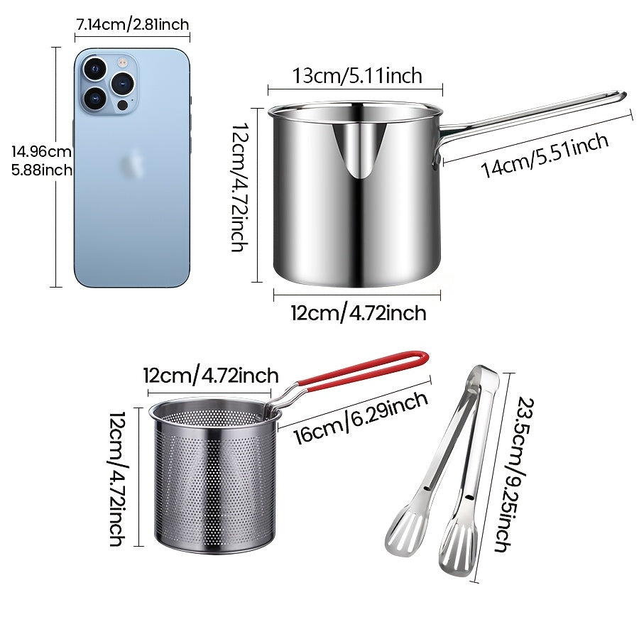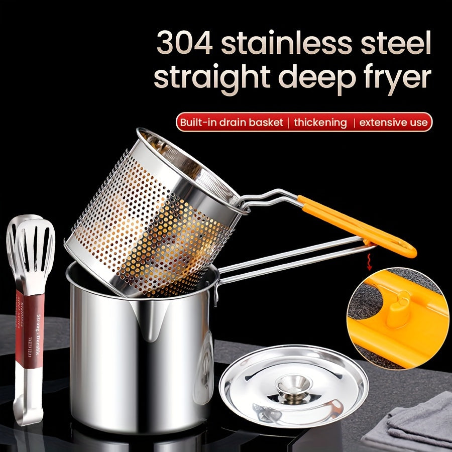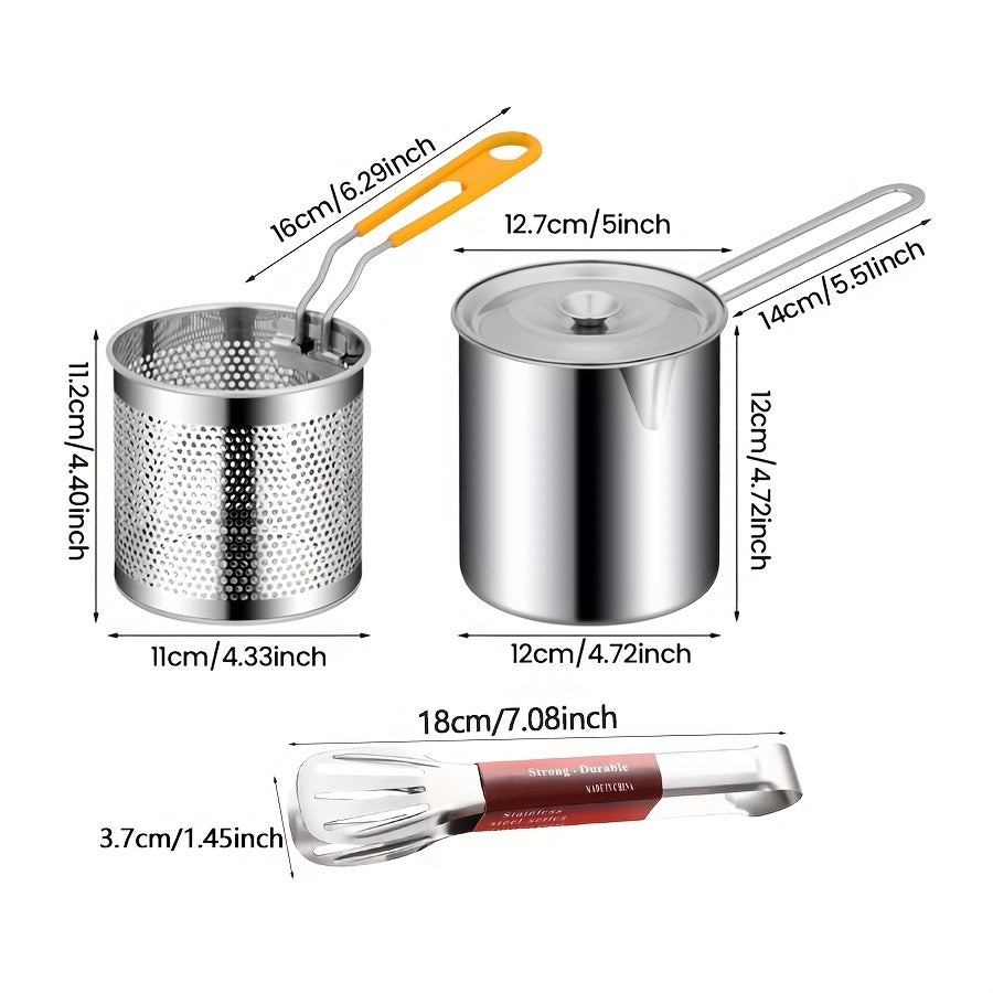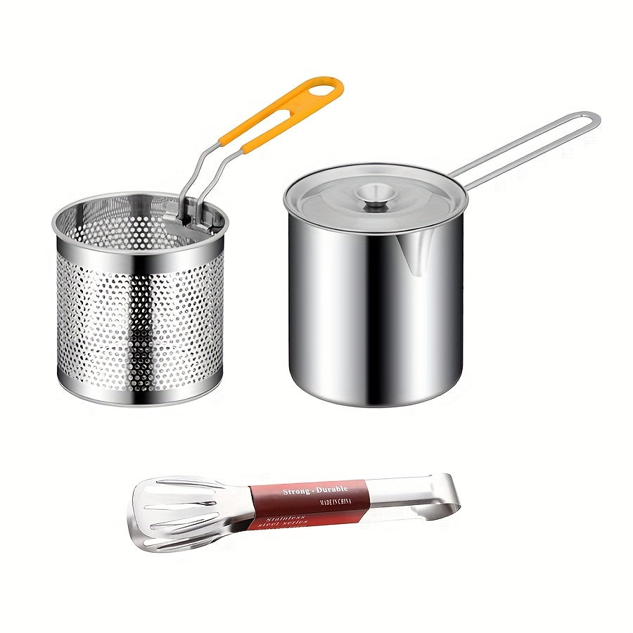 Глубокая фритюрница из нержавеющей стали 1,2 л с крышкой-решеткой, щипцами для домашнего кемпинга