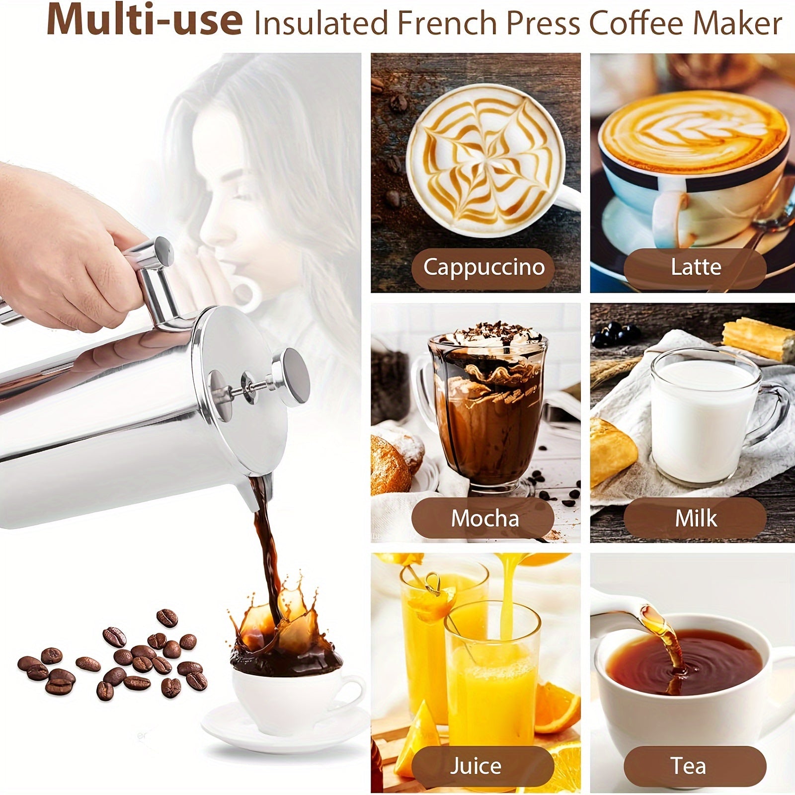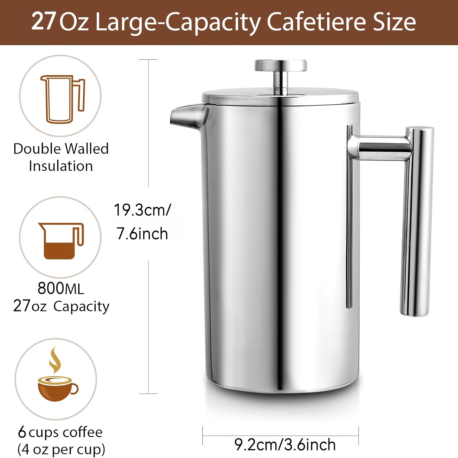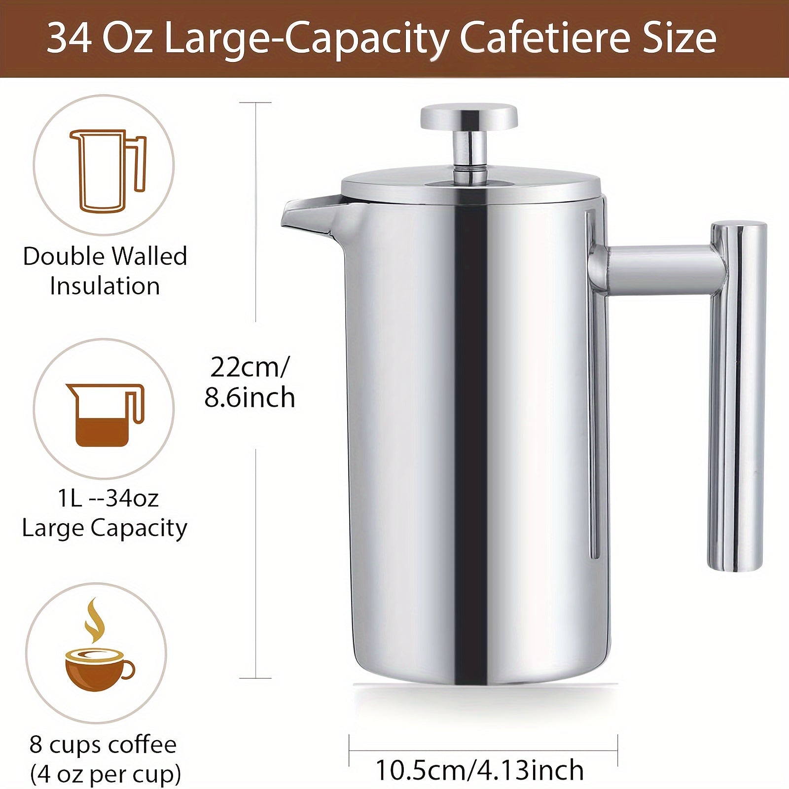 Кофейник френч-пресс из нержавеющей стали долговечен и идеально подходит для приготовления вкусного кофе в комфортной домашней обстановке.