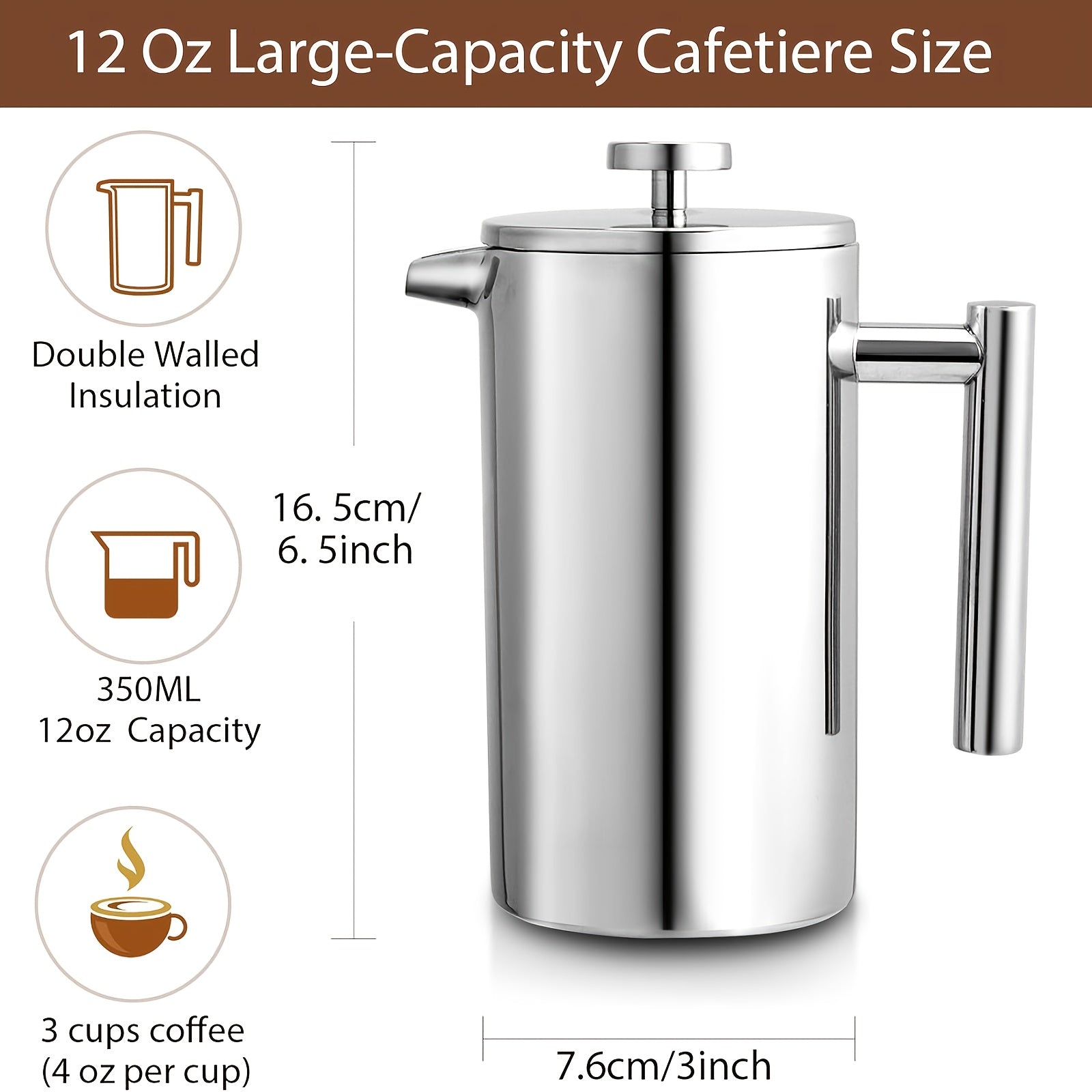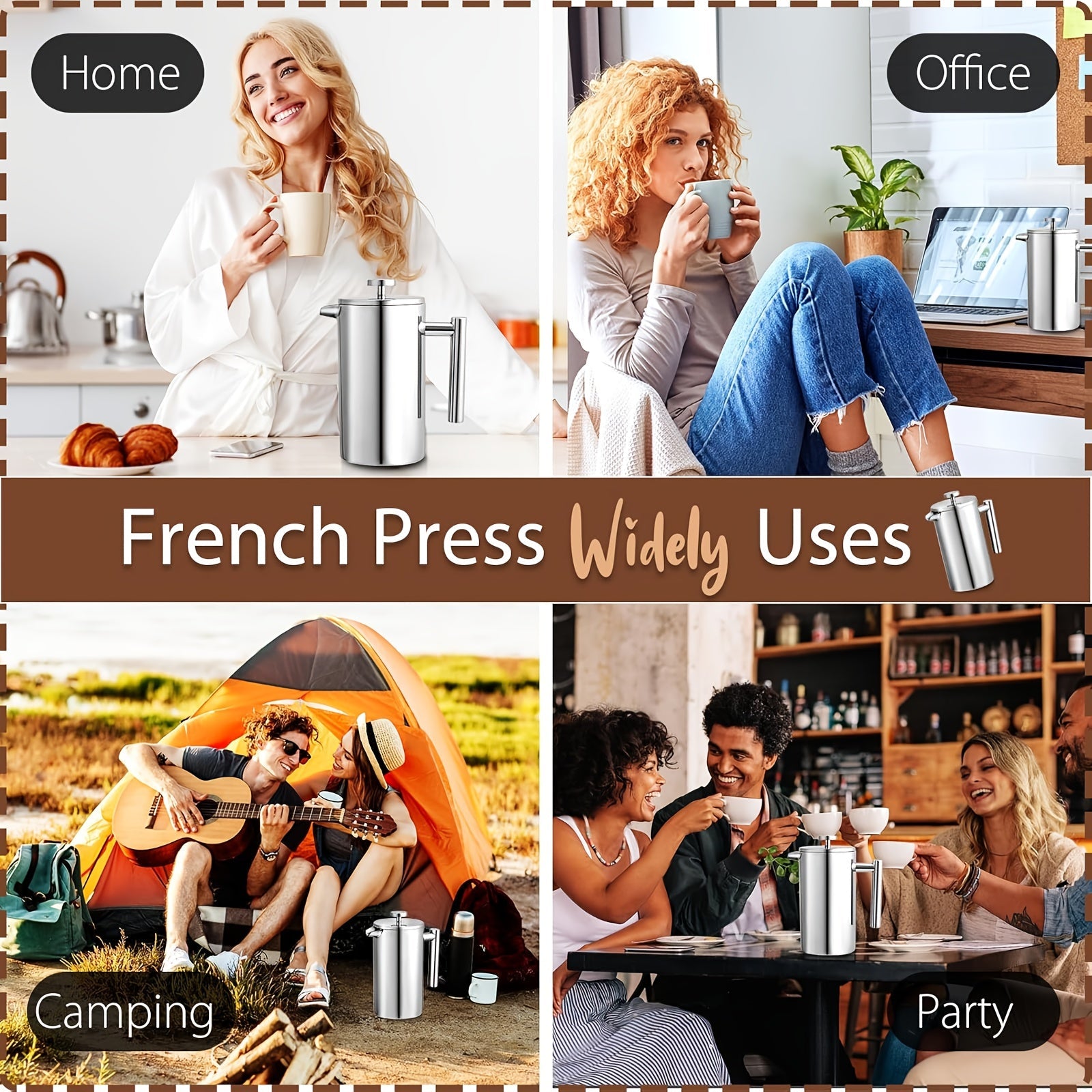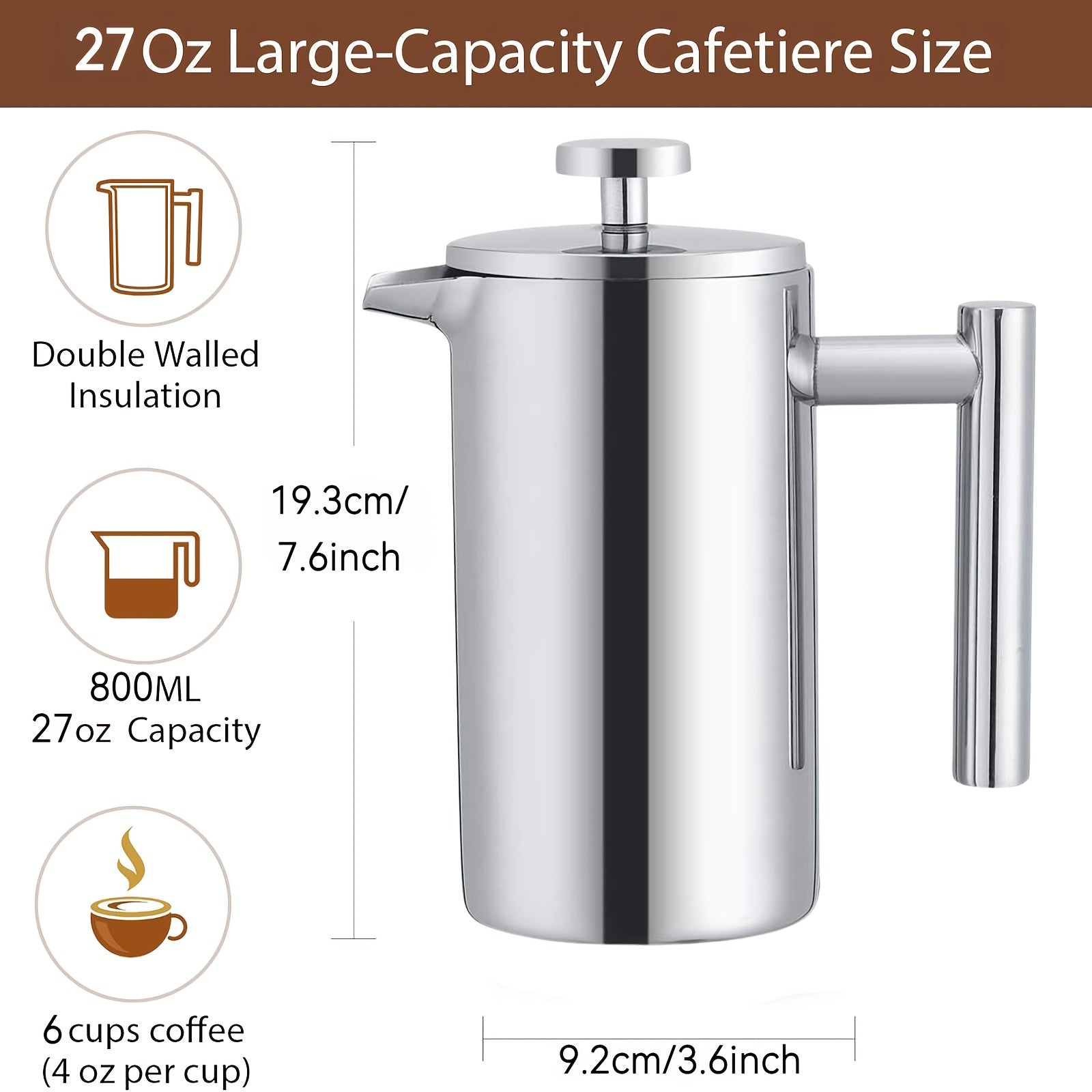 Кофейник френч-пресс из нержавеющей стали долговечен и идеально подходит для приготовления вкусного кофе в комфортной домашней обстановке.
