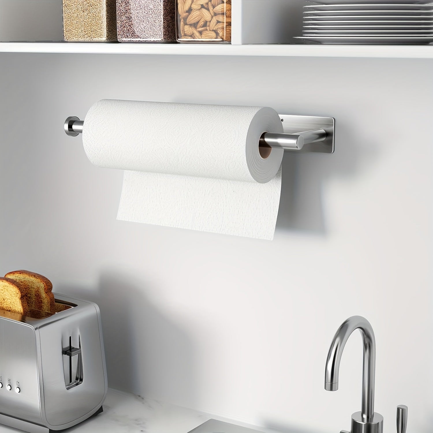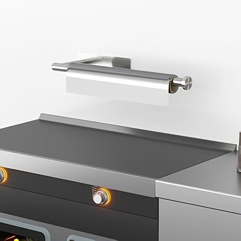 Держатель для бумажных полотенец из нержавеющей стали для установки под шкафом или на стене на кухне, может быть самоклеящимся или с креплением на винты.