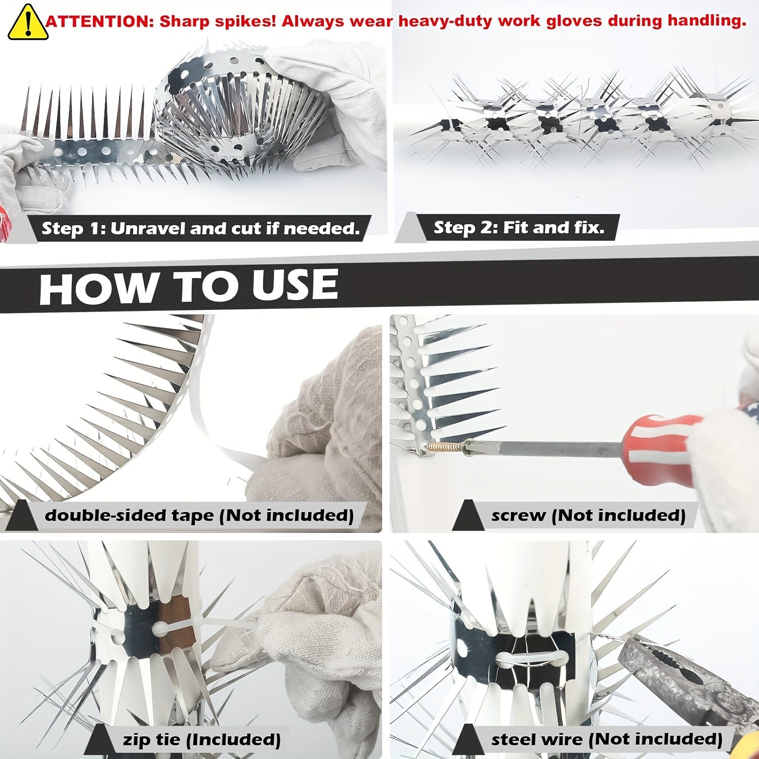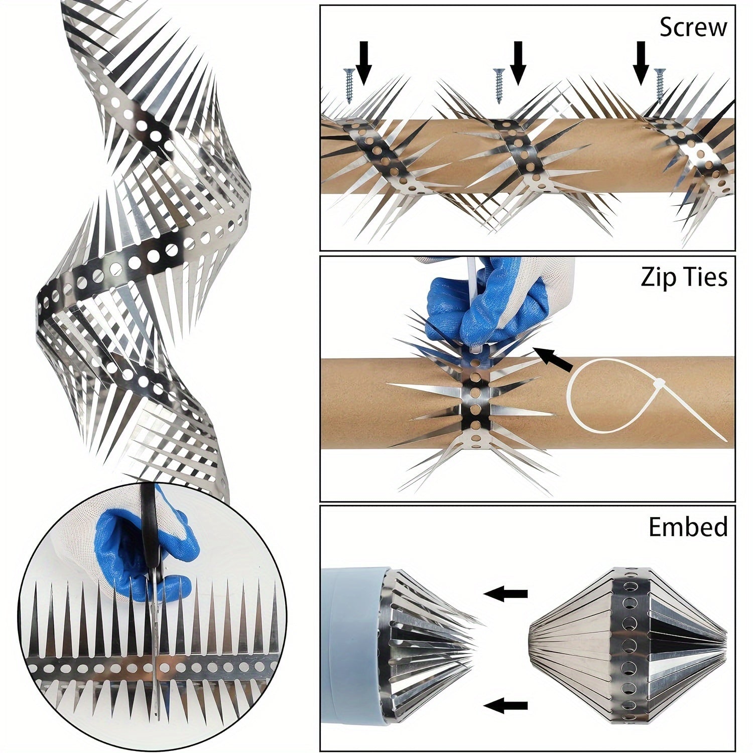 Нержавеющие стальные шипы для защиты на улице: 100,0 см для заборов, садов и скворечников.