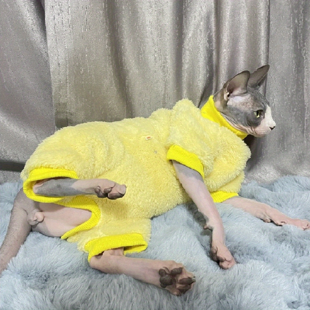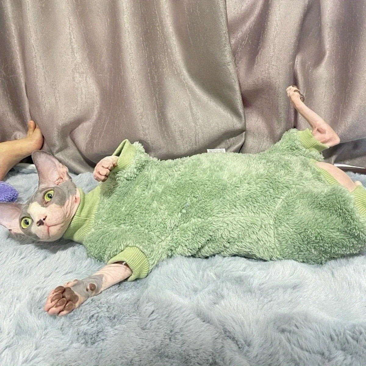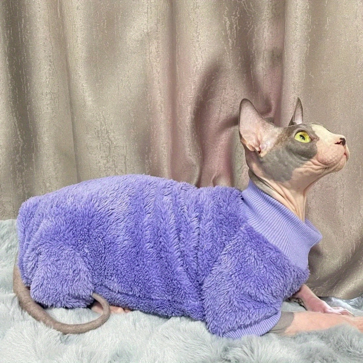 Вязаный свитер из стрейчевого велюра, разработанный для кошек породы Девон-рекс без шерсти.