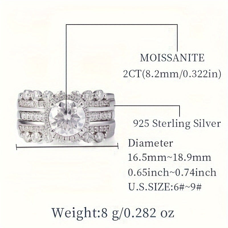 Потрясающее обручальное кольцо с муассанитом 2 карата в серебре 925 пробы - символ элегантности и грации. Это кольцо для помолвки или свадьбы высокого качества поставляется с сертификатом и подарочной коробкой для дополнительной роскоши.