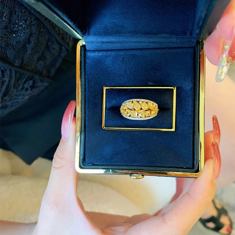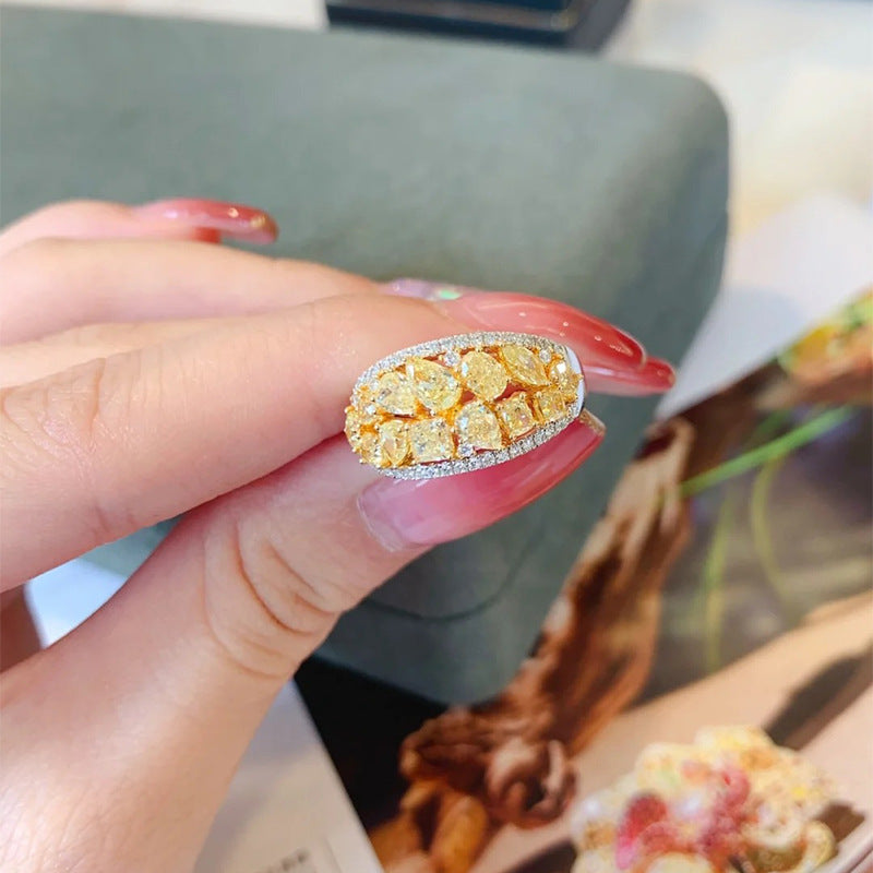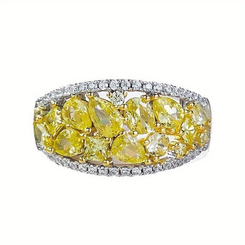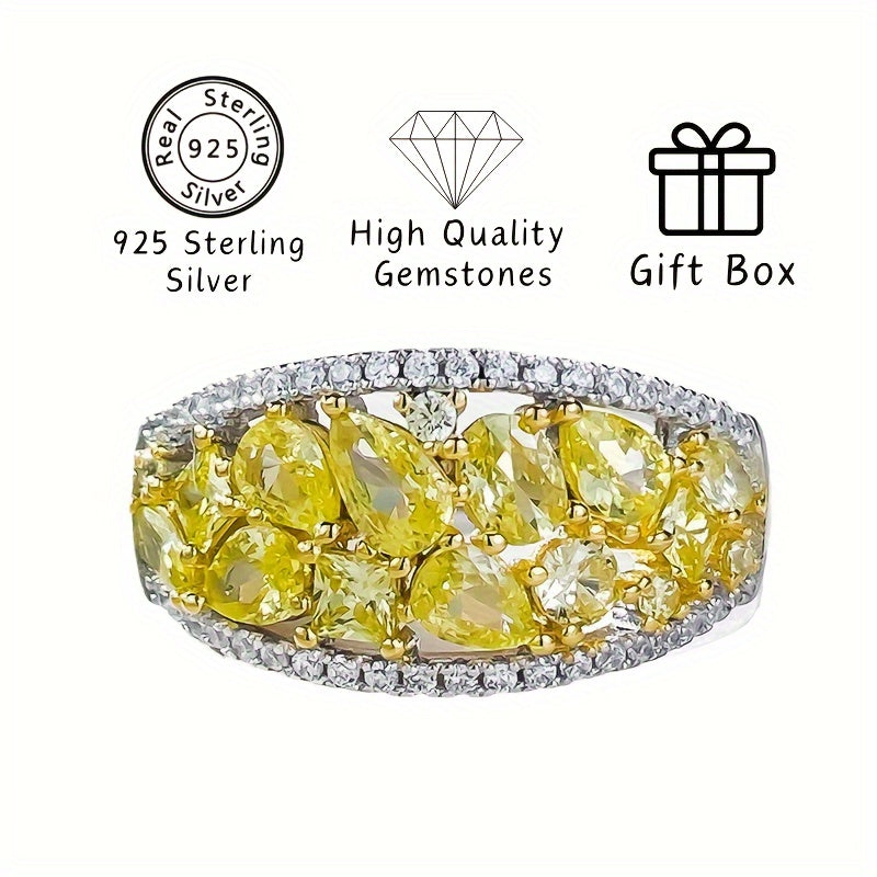 Сногсшибательное праздничное кольцо из 925-й стерлинговой серебра с желтыми бриллиантами и белым цирконием - идеально для праздничных мероприятий и торжеств - поставляется в подарочной коробке