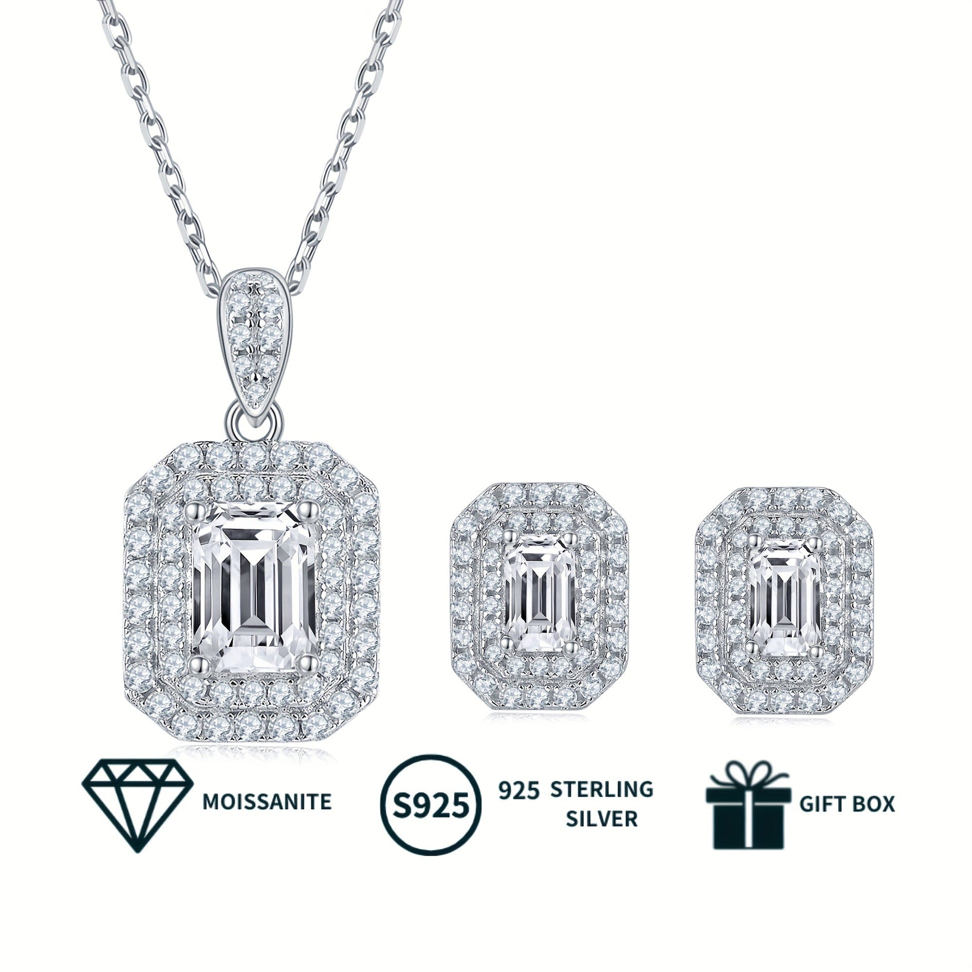 Серебряные серьги-стаканы с муассанитом и комплект украшений с кулоном 0,5ct основные камни, кулон 1ct