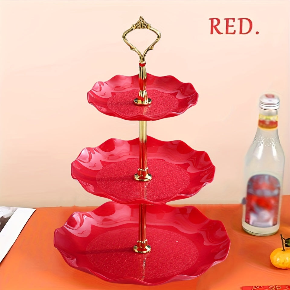 Стильная 3-уровневая европейская подставка для конфет и фруктов - Отлично подходит для праздников и вечеринок - Прочный, безопасный для пищи пластик