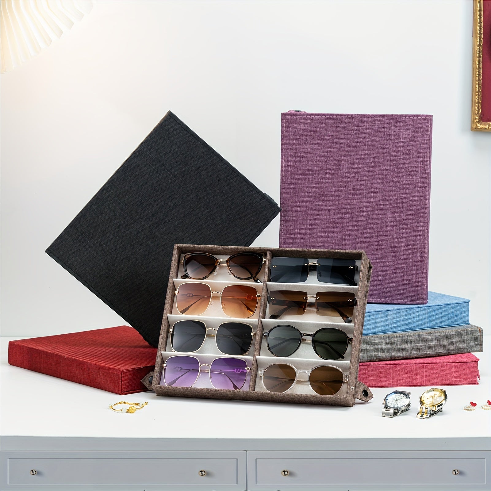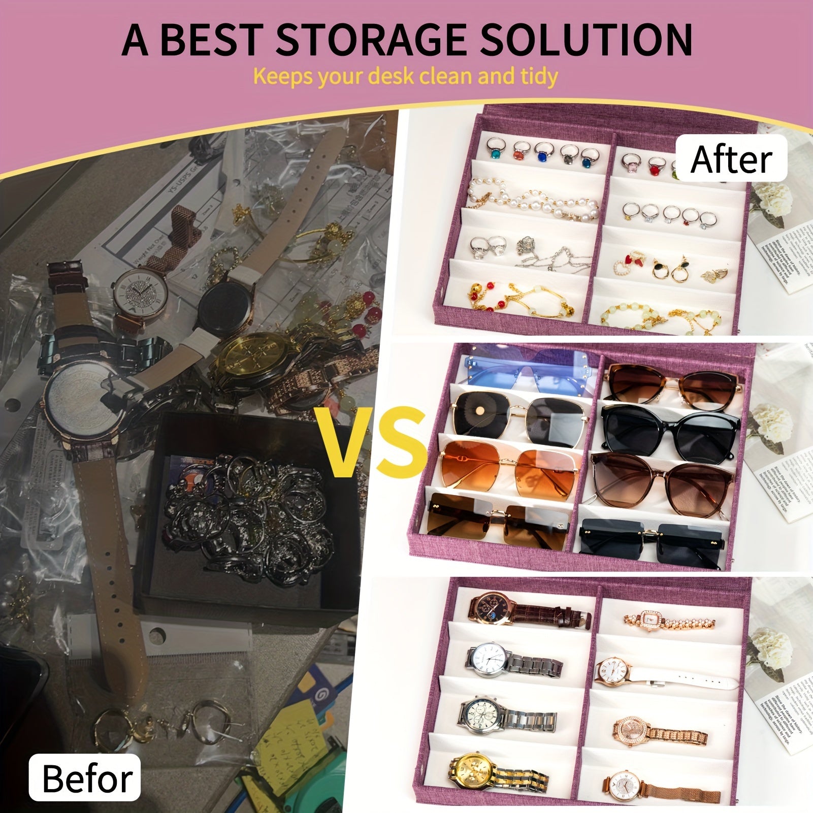 Стильный и элегантный органайзер на 8 отсеков для очков, ювелирных изделий и часов - Удобная коробка для хранения с двойным рядом и вязаным дизайном